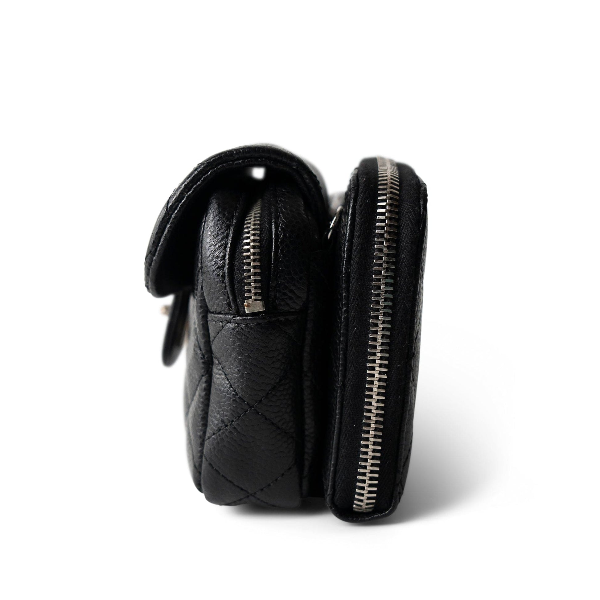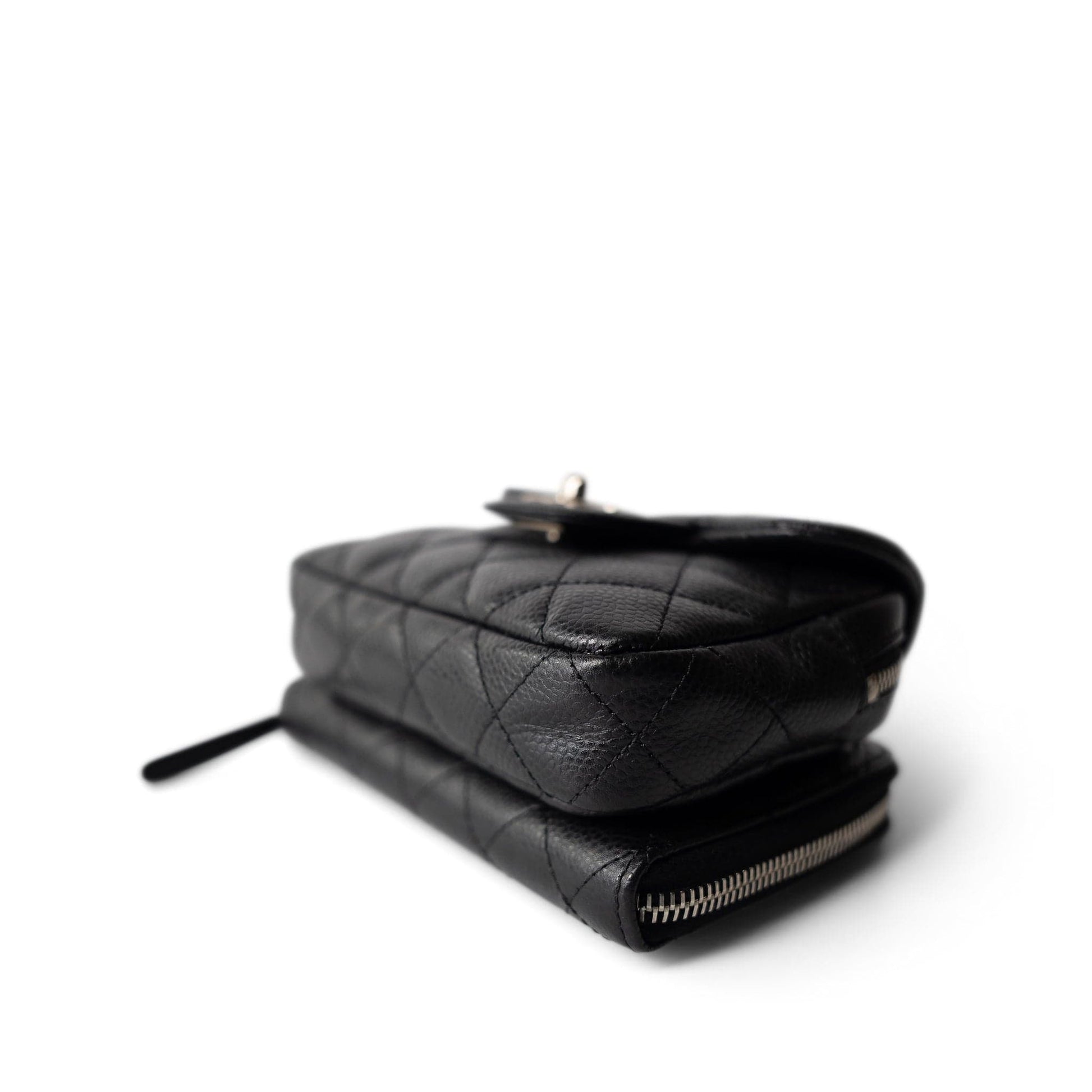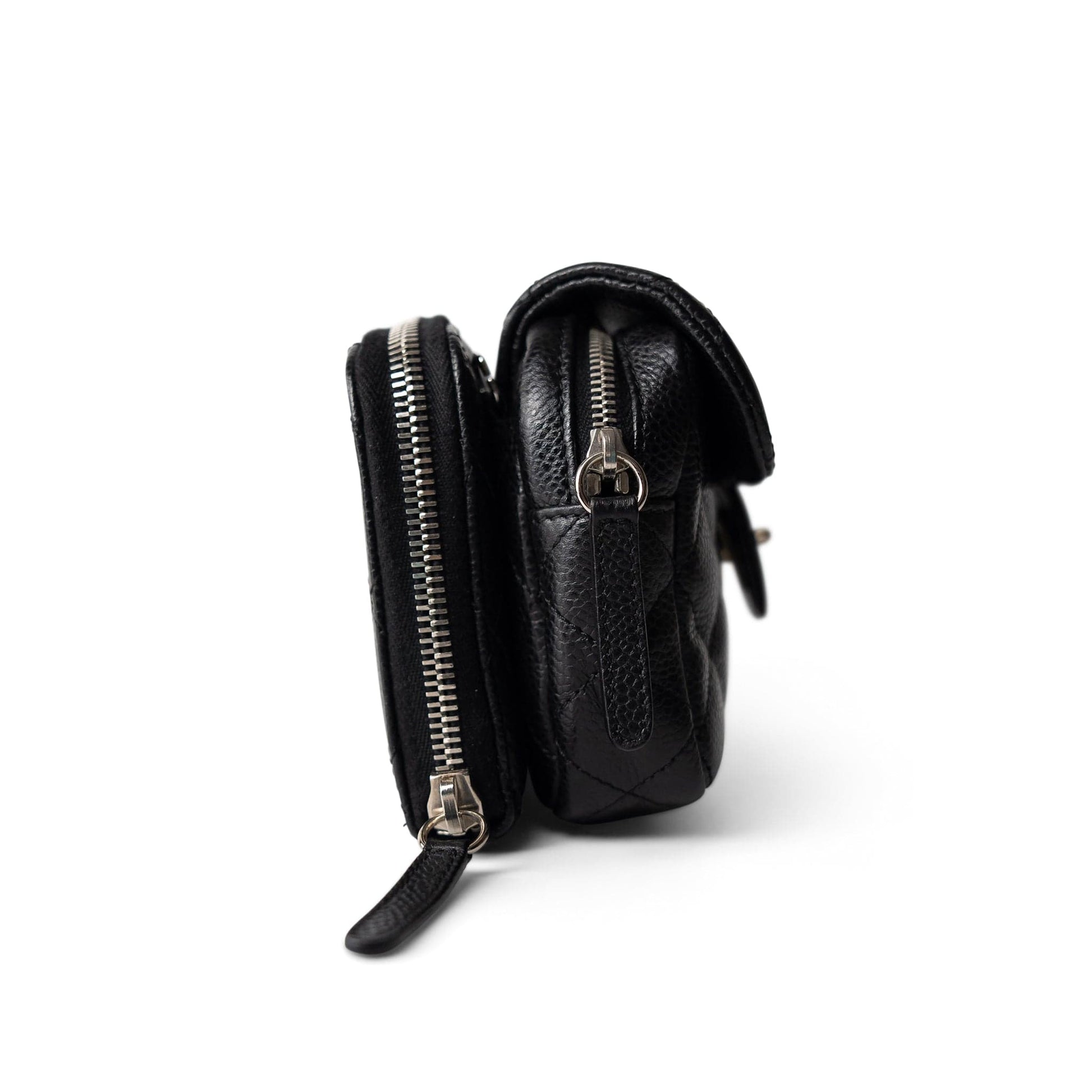 12C Black Caviar Quilted Mini Dual Zipper Case Silver Hardware