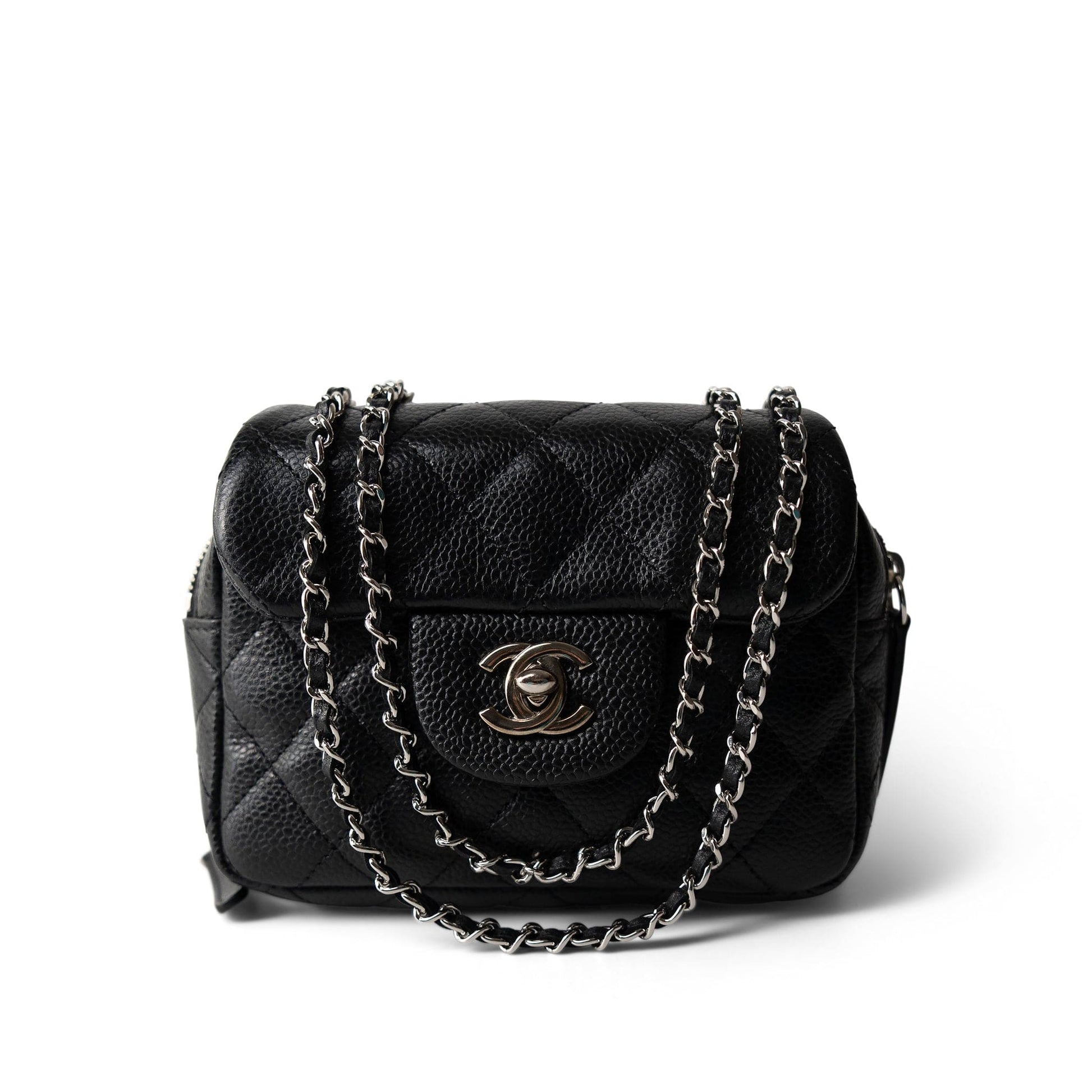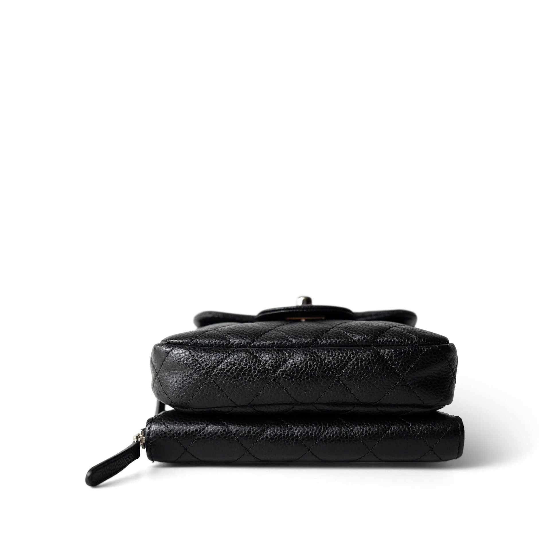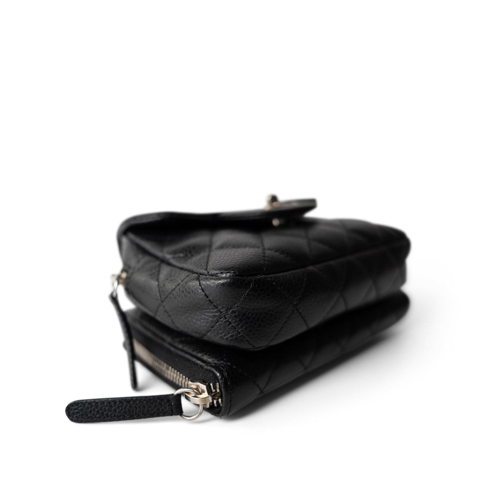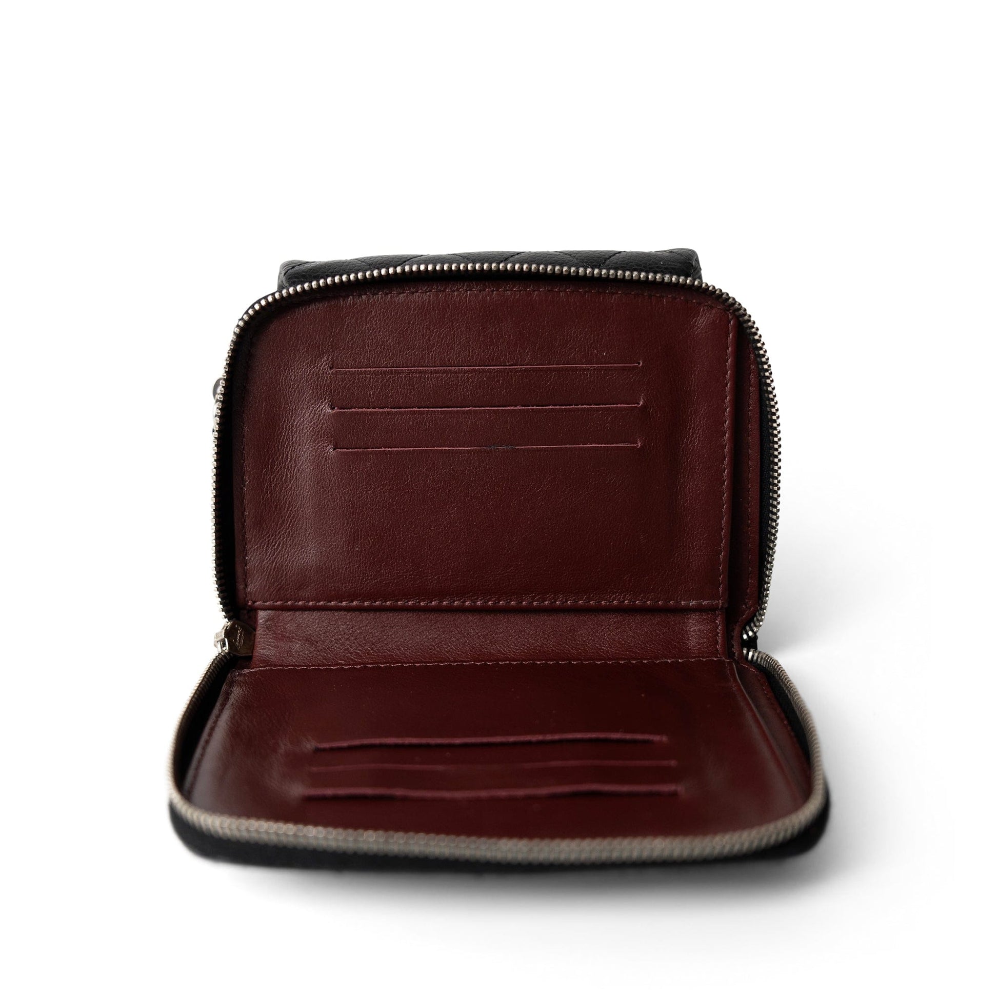 12C Black Caviar Quilted Mini Dual Zipper Case Silver Hardware