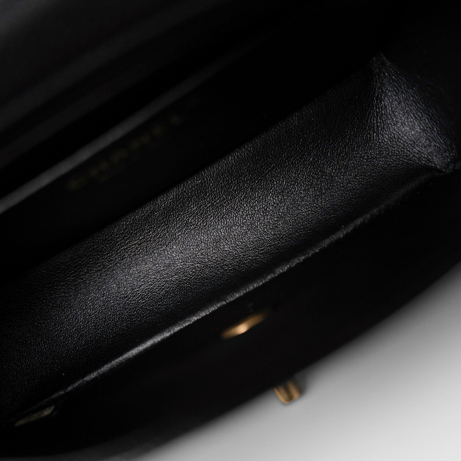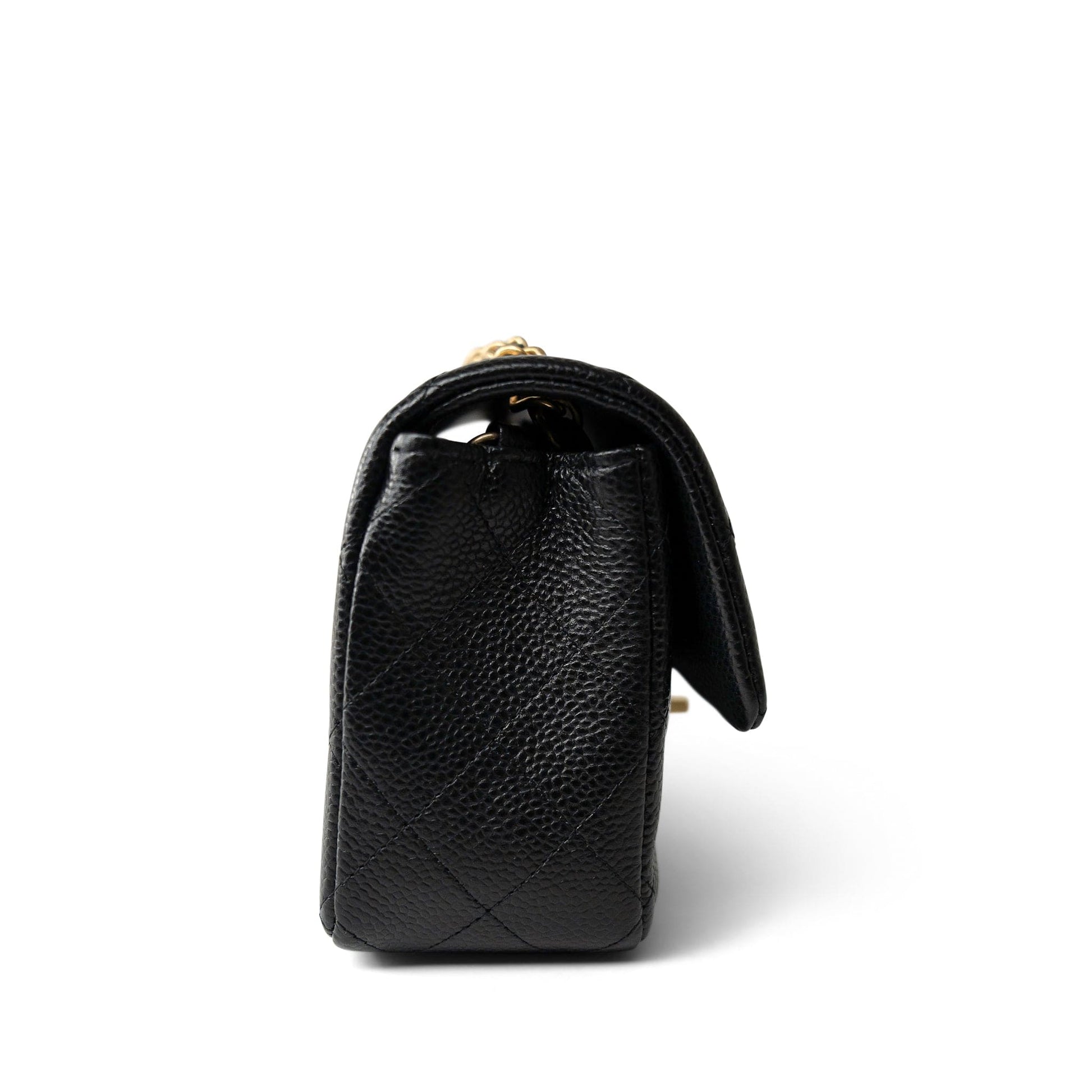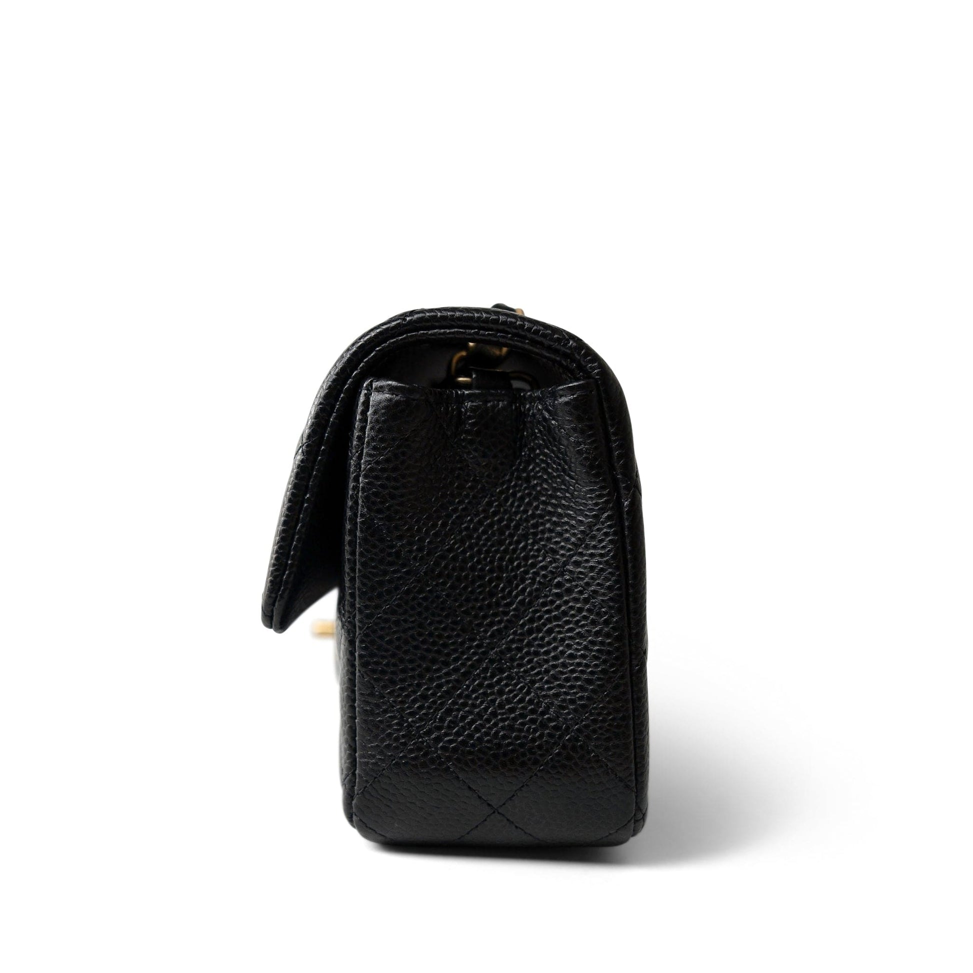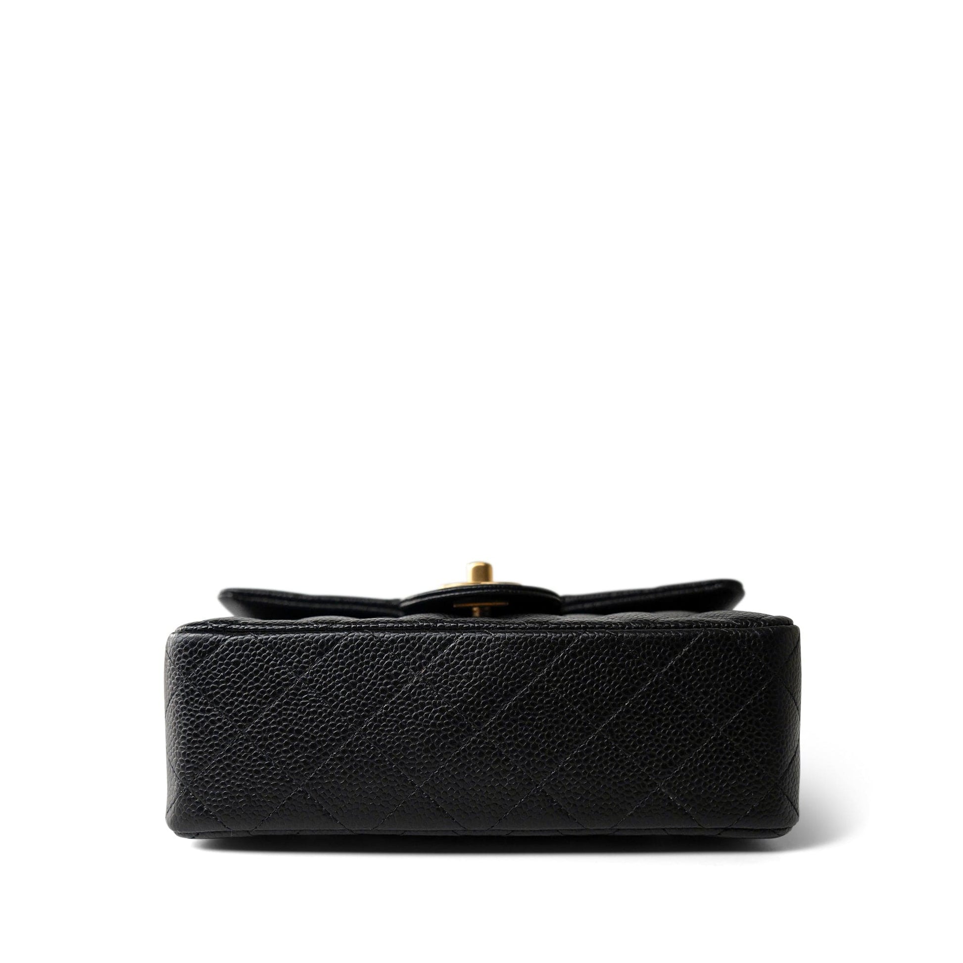 15B Black Caviar Quilted Mini Rectangular Flap Aged Gold Hardware