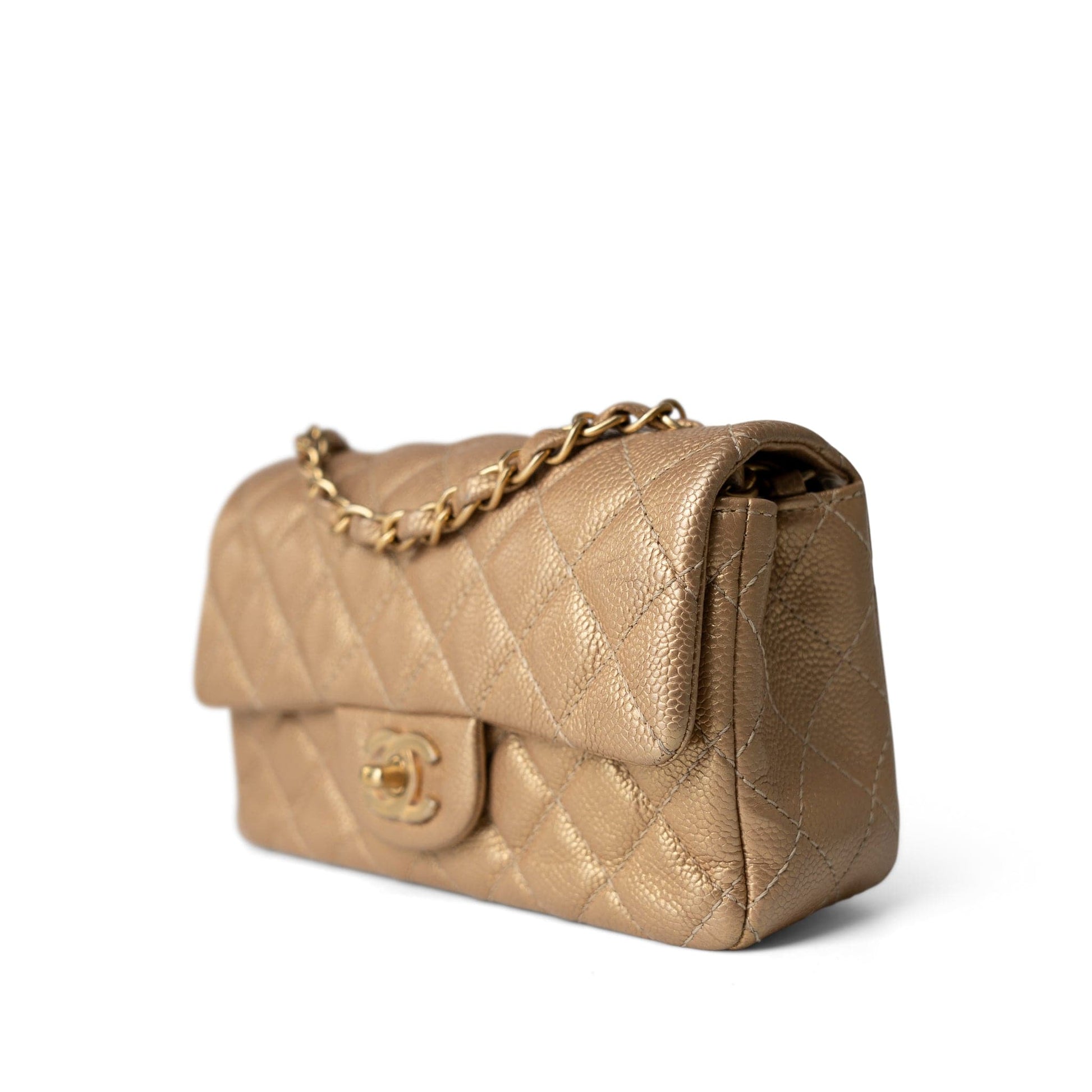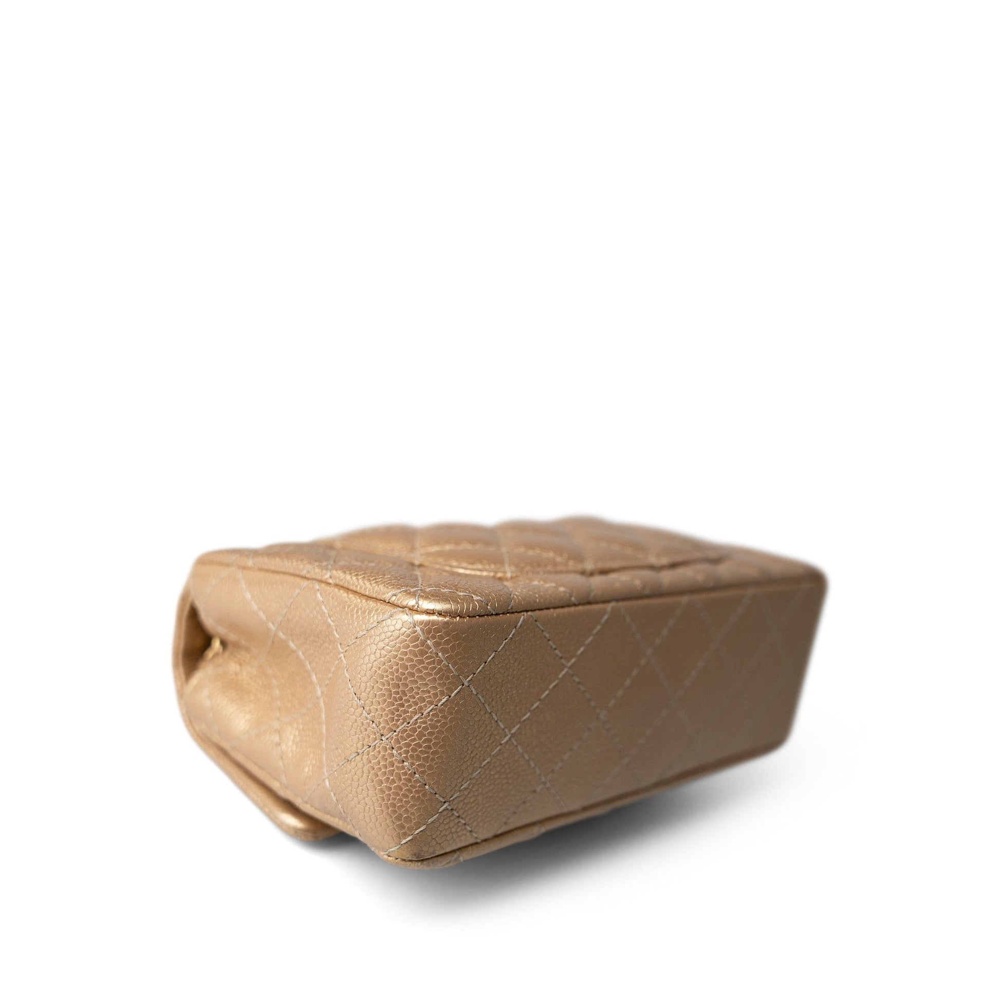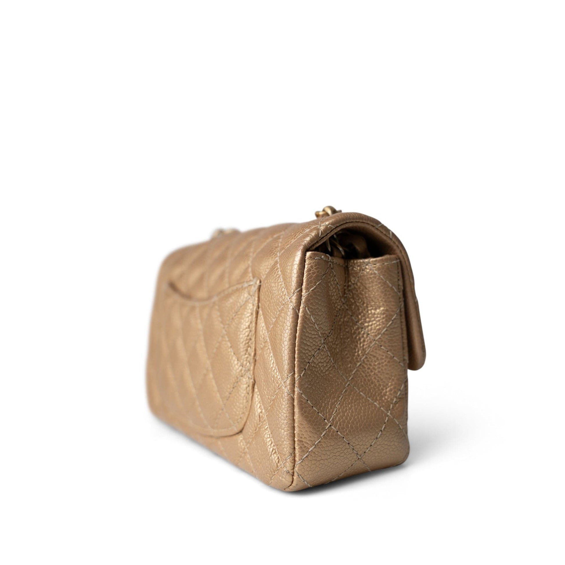 15C Gold Caviar Quilted Mini Rectangular Flap Antique Gold Hardware