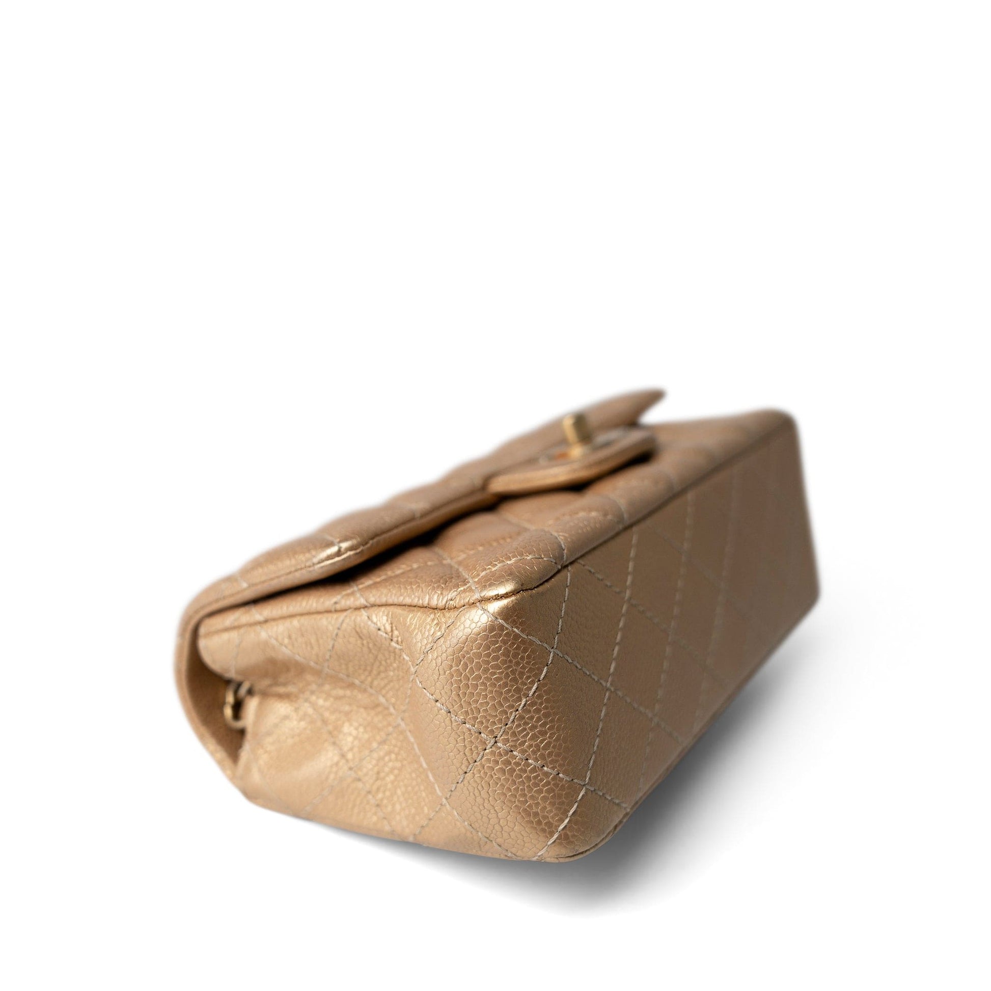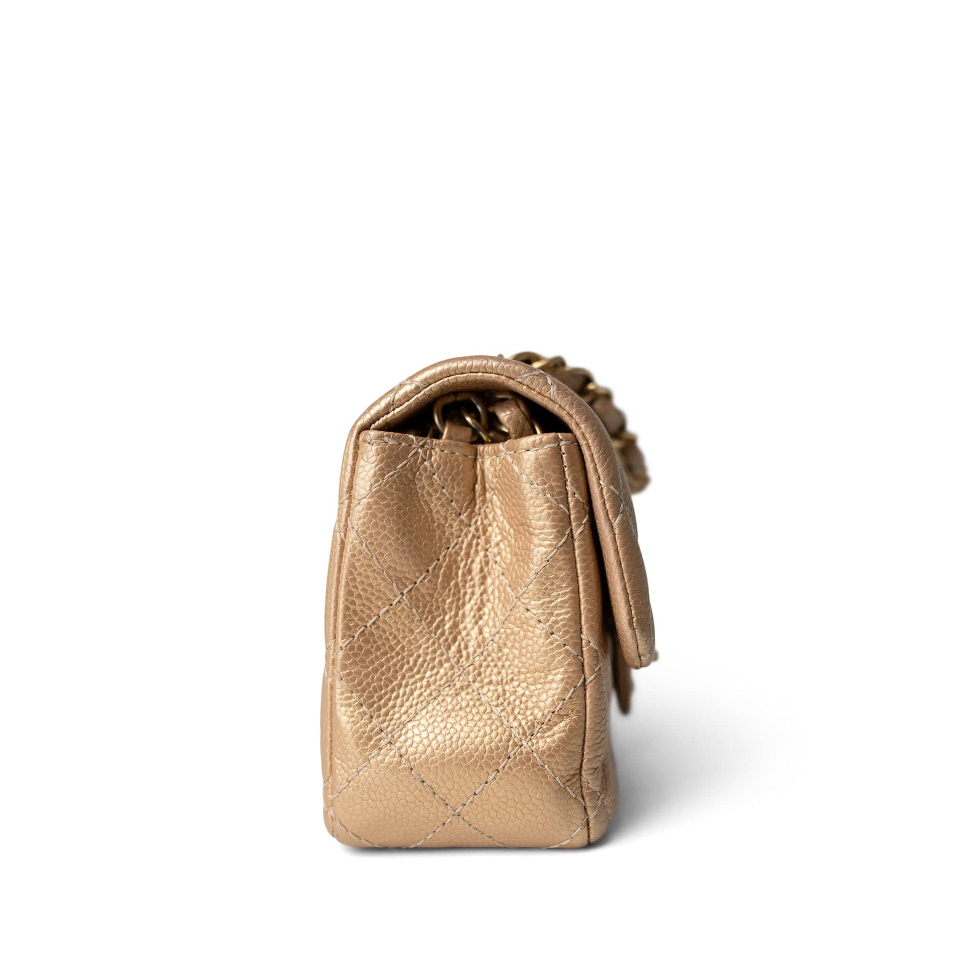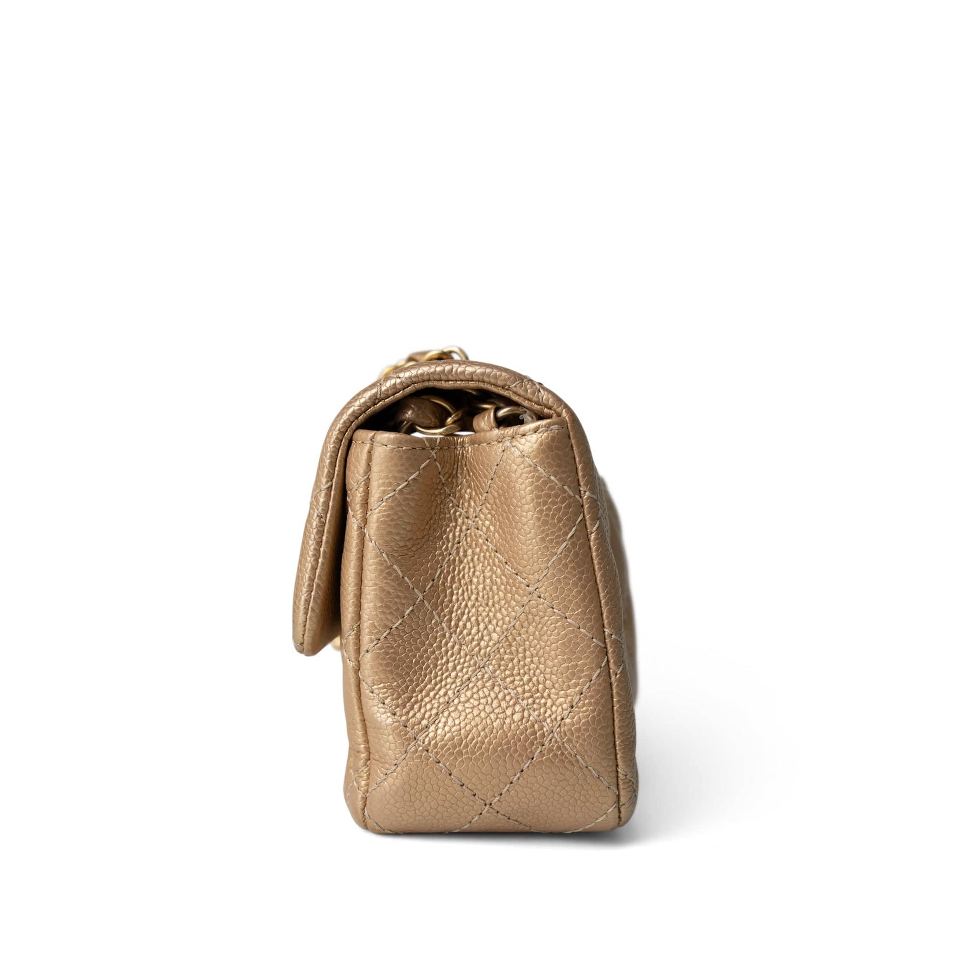 15C Gold Caviar Quilted Mini Rectangular Flap Antique Gold Hardware