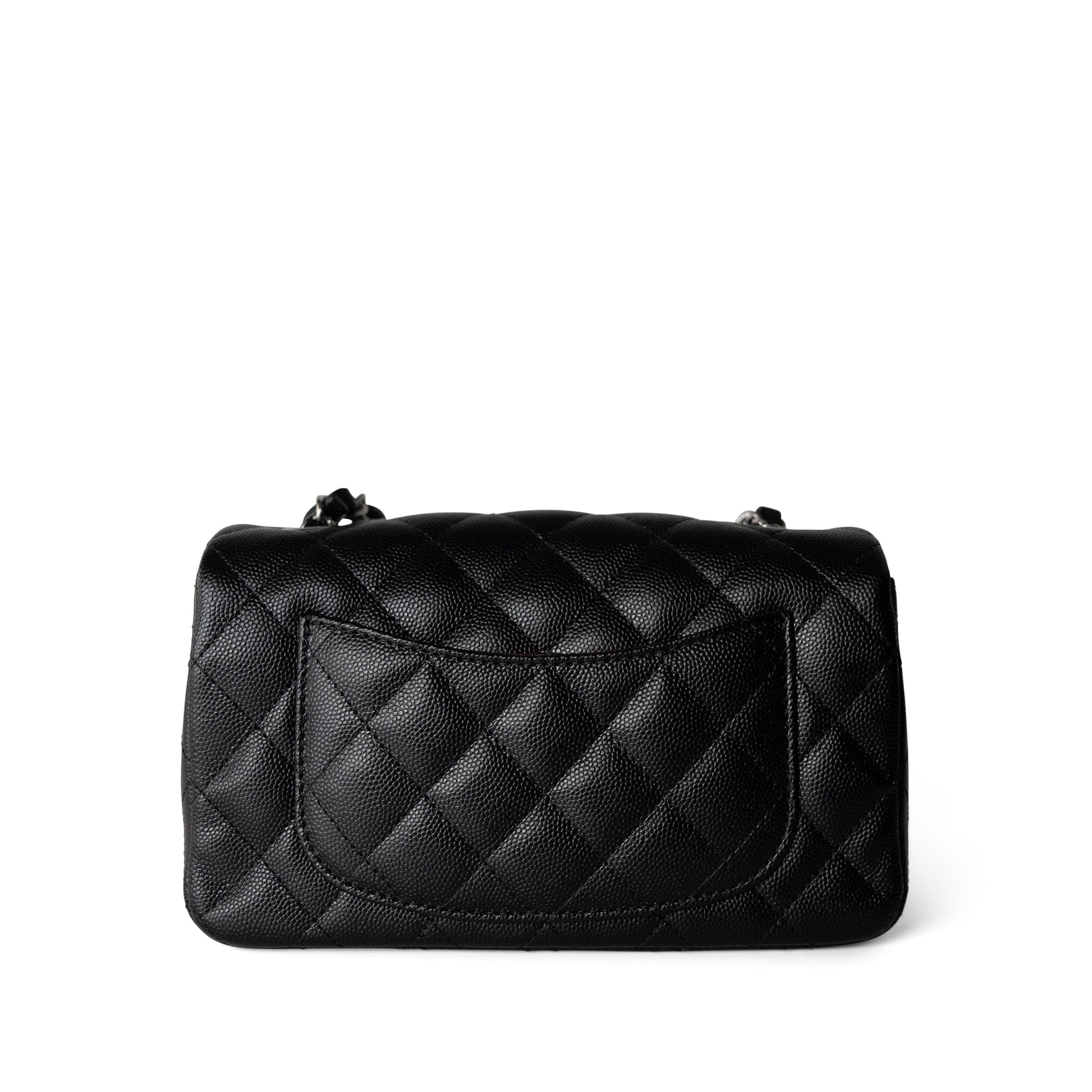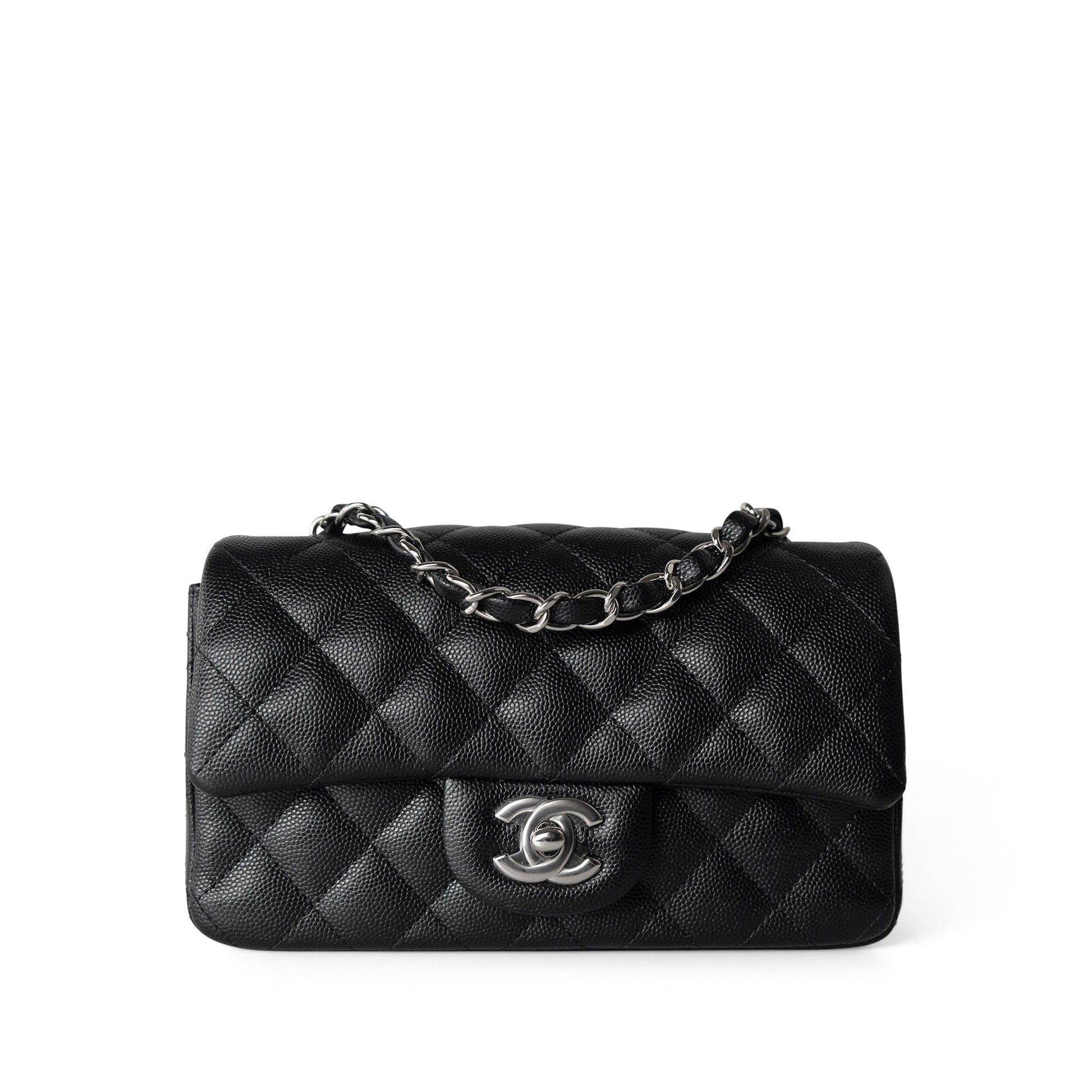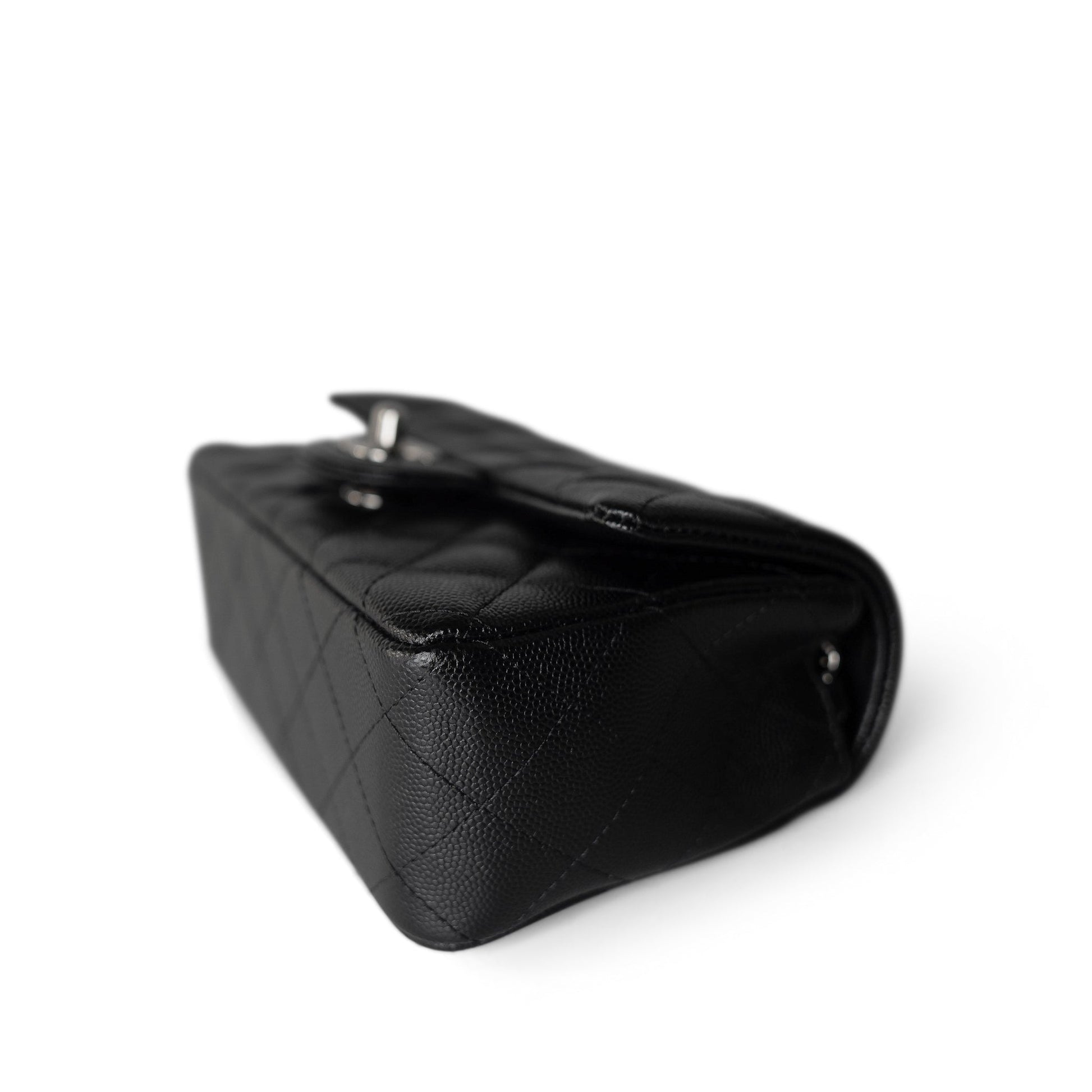17B Black Caviar Quilted Mini Rectangular Flap Silver Hardware