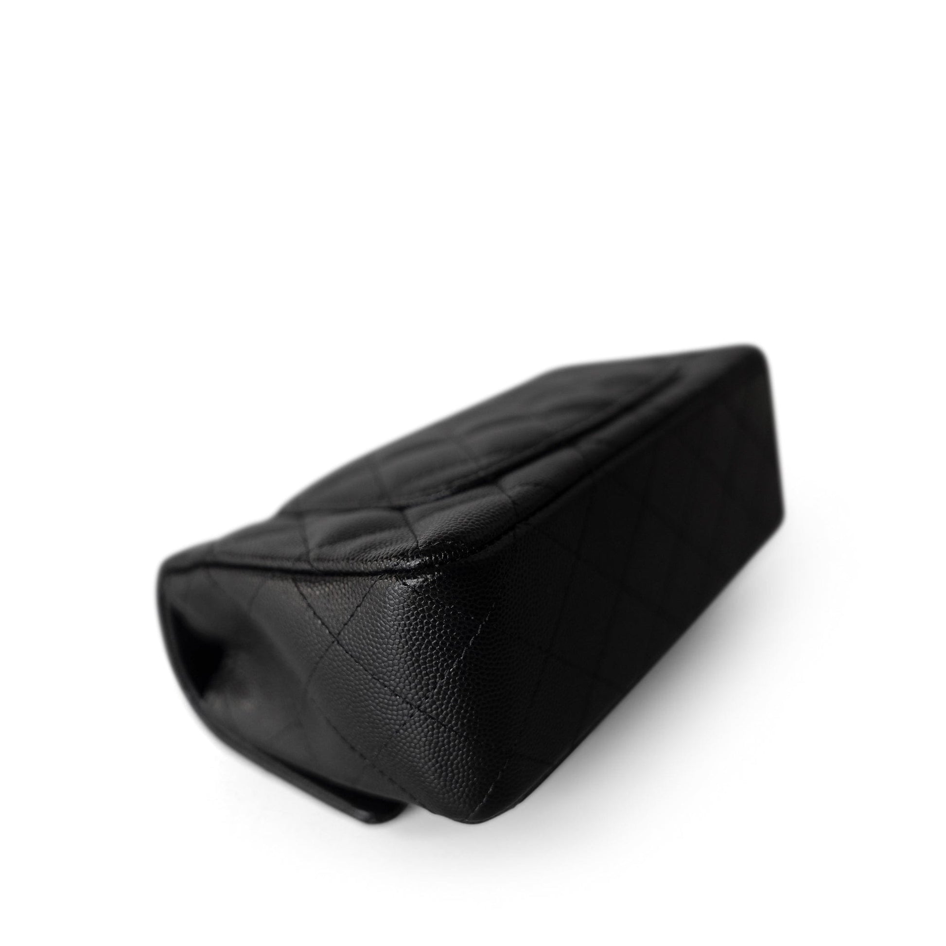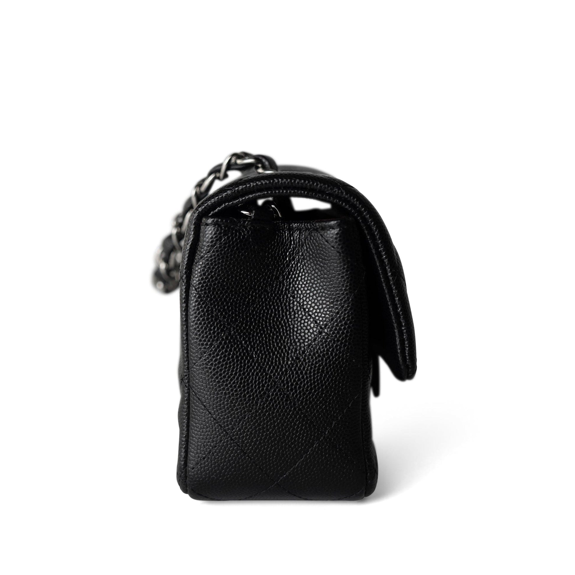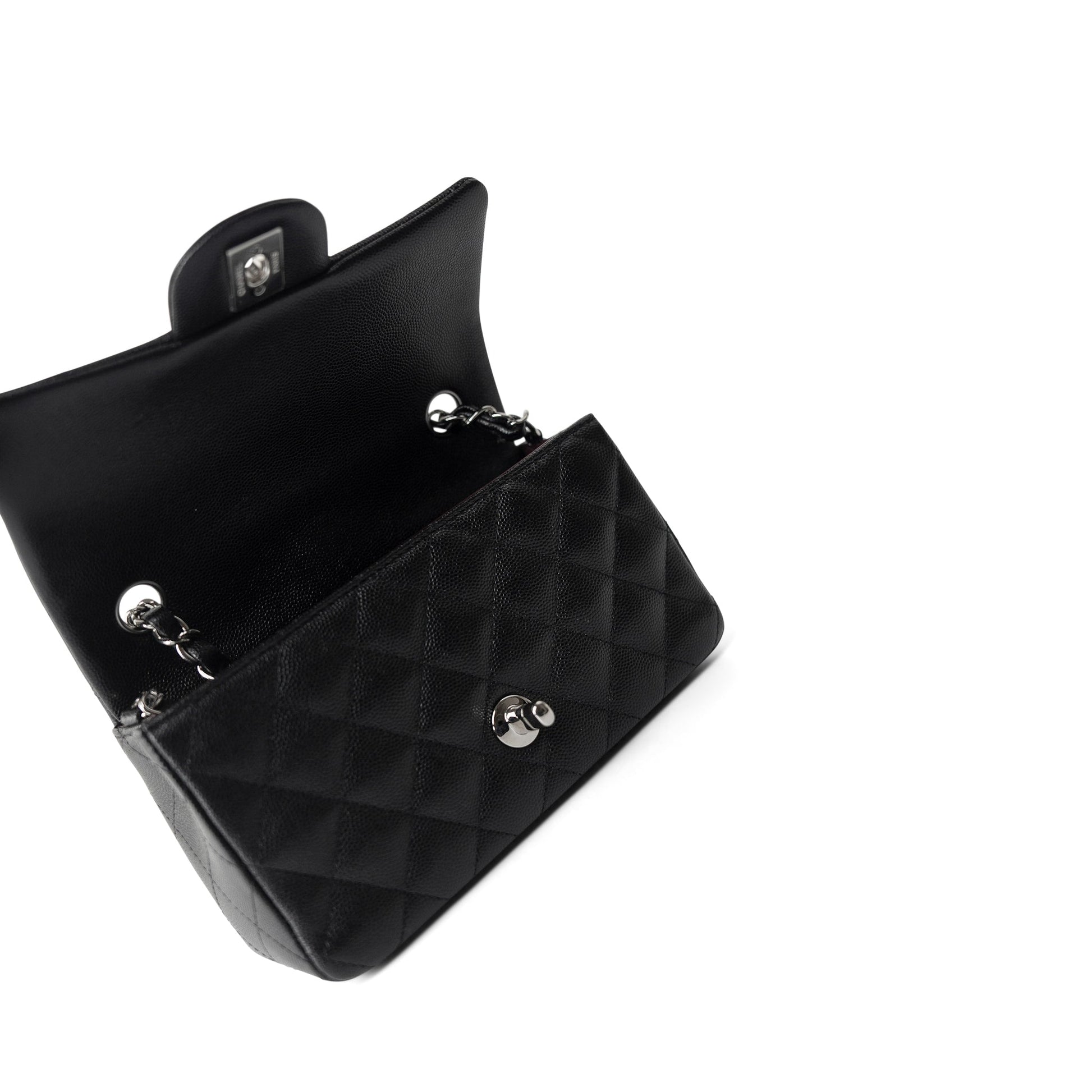 17B Black Caviar Quilted Mini Rectangular Flap Silver Hardware