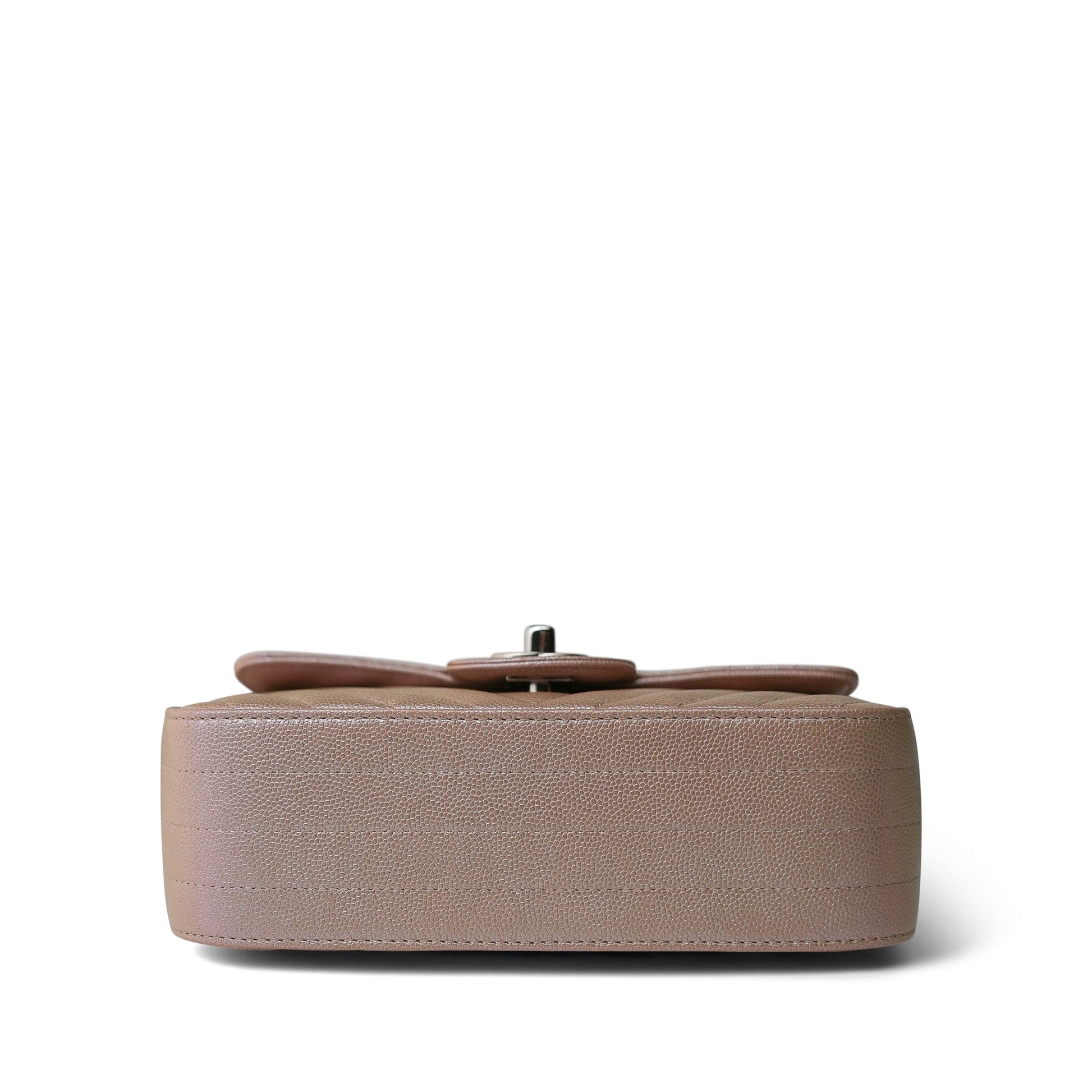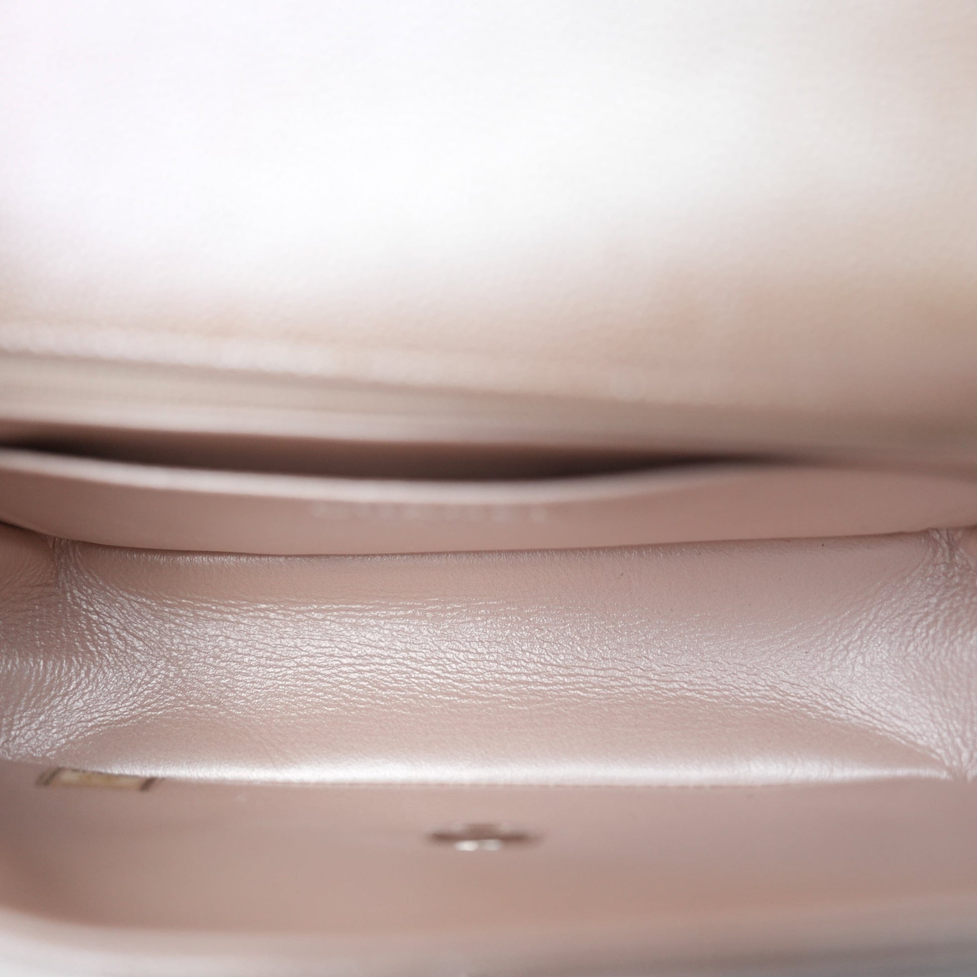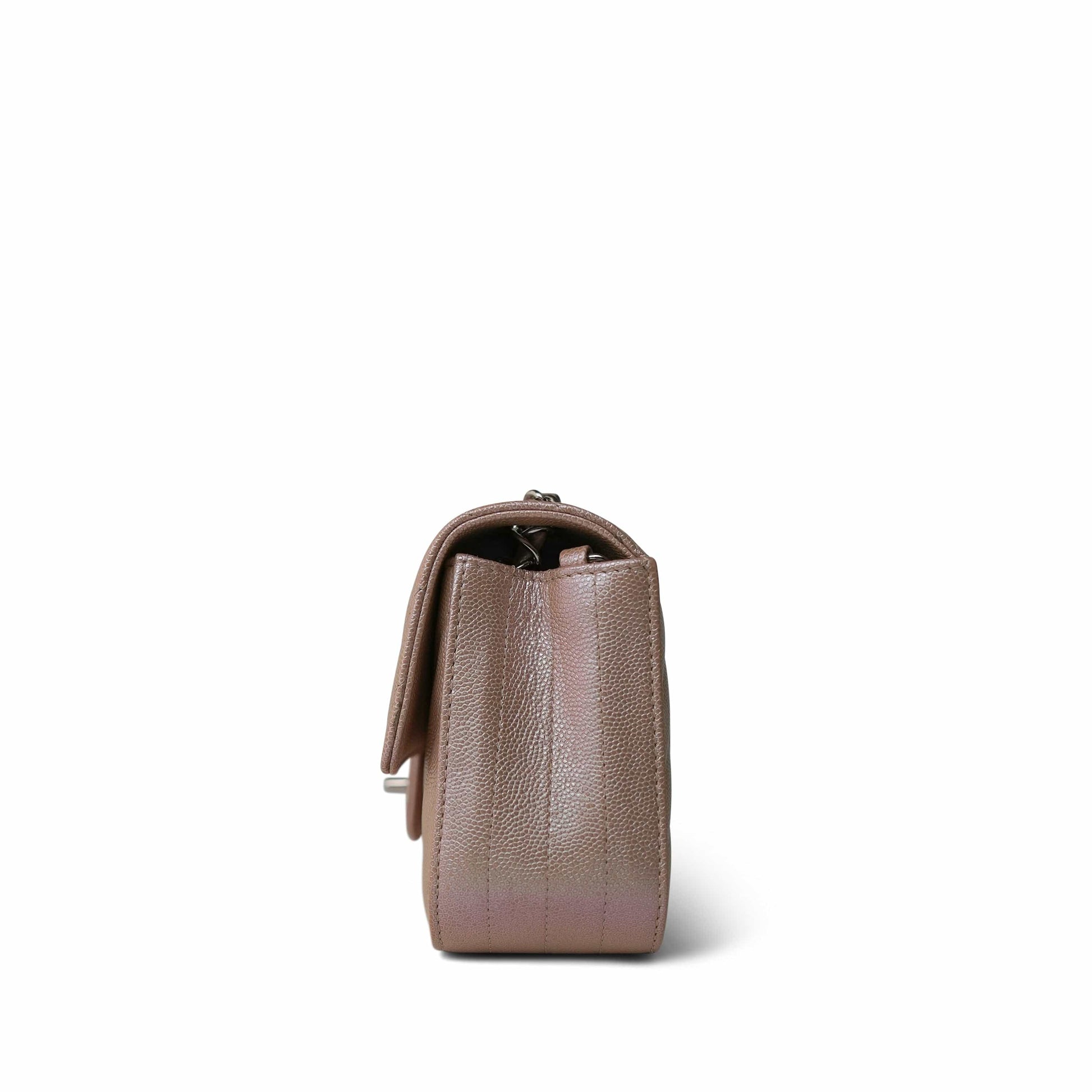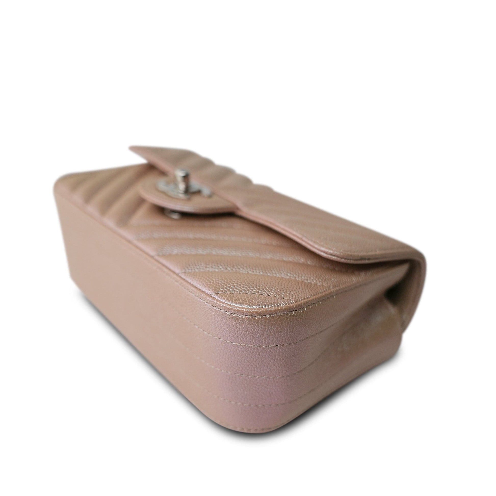 17B Rose Gold Iridescent Caviar Chevron Mini Rectangular Flap Silver Hardware