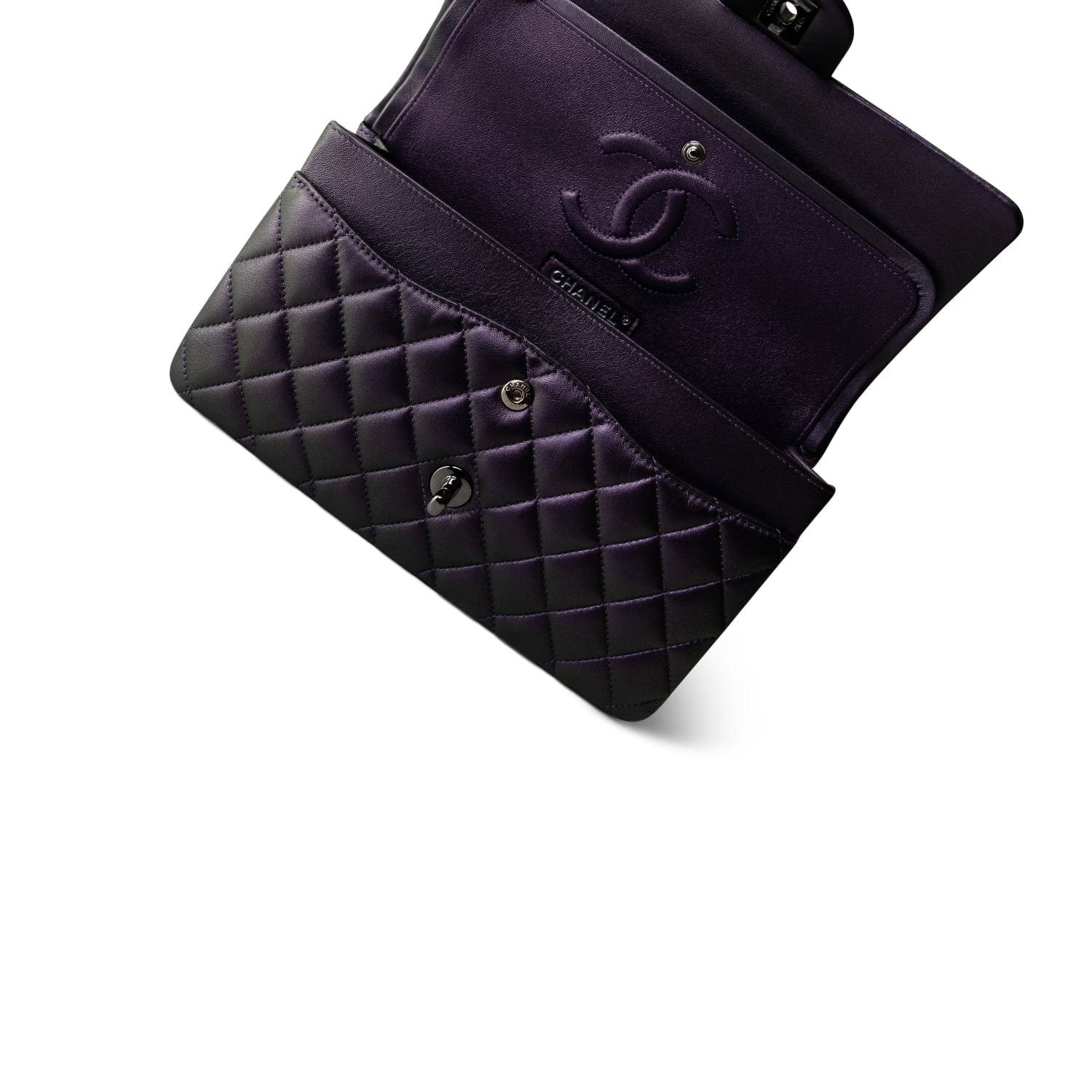 17S Purple Iridescent Lambskin Quilted Classic Flap Medium