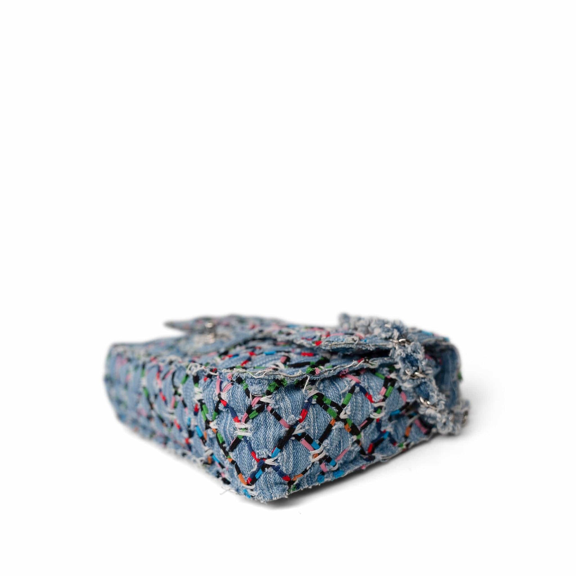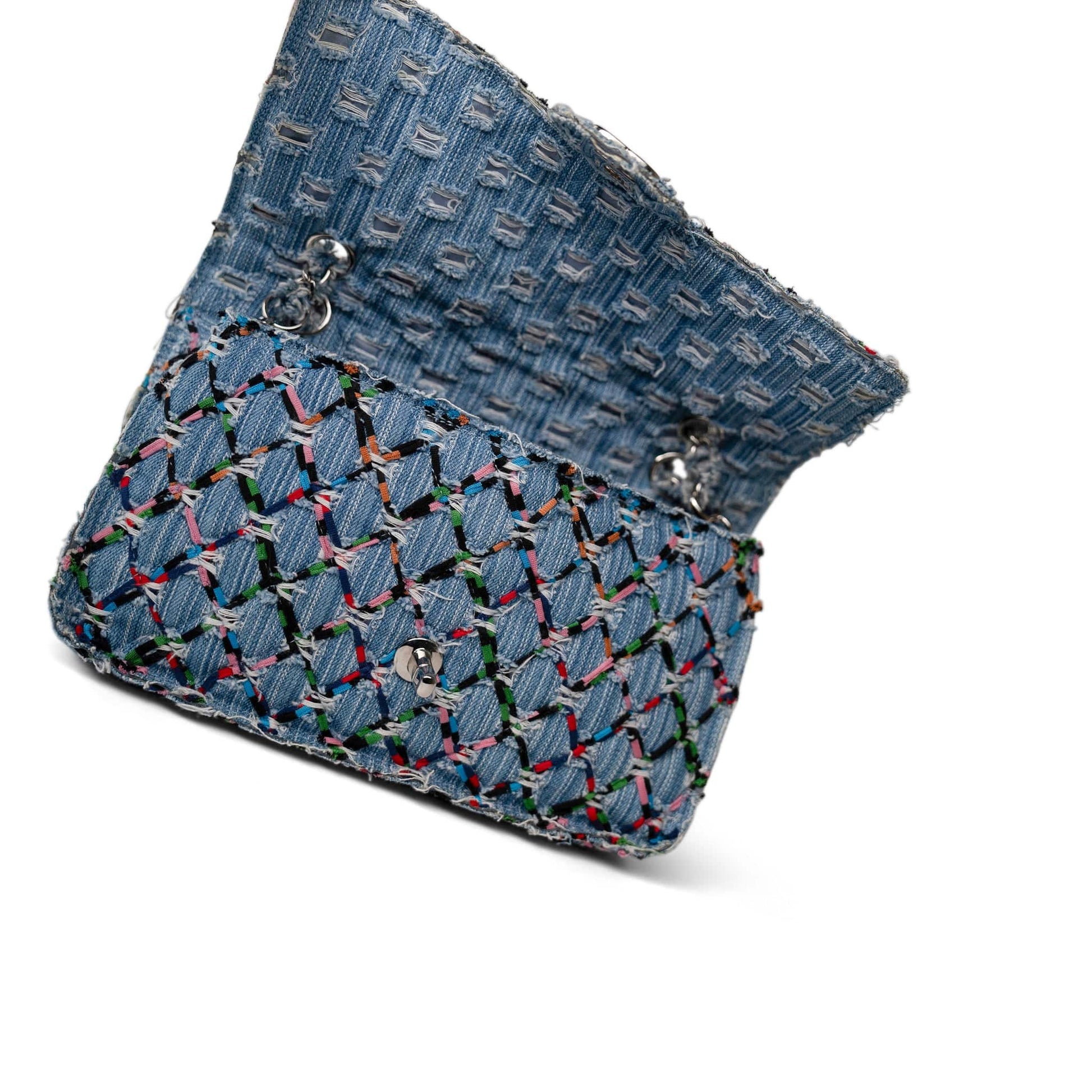 17S Woven Denim Multicolor Medium Flap Silver Hardware