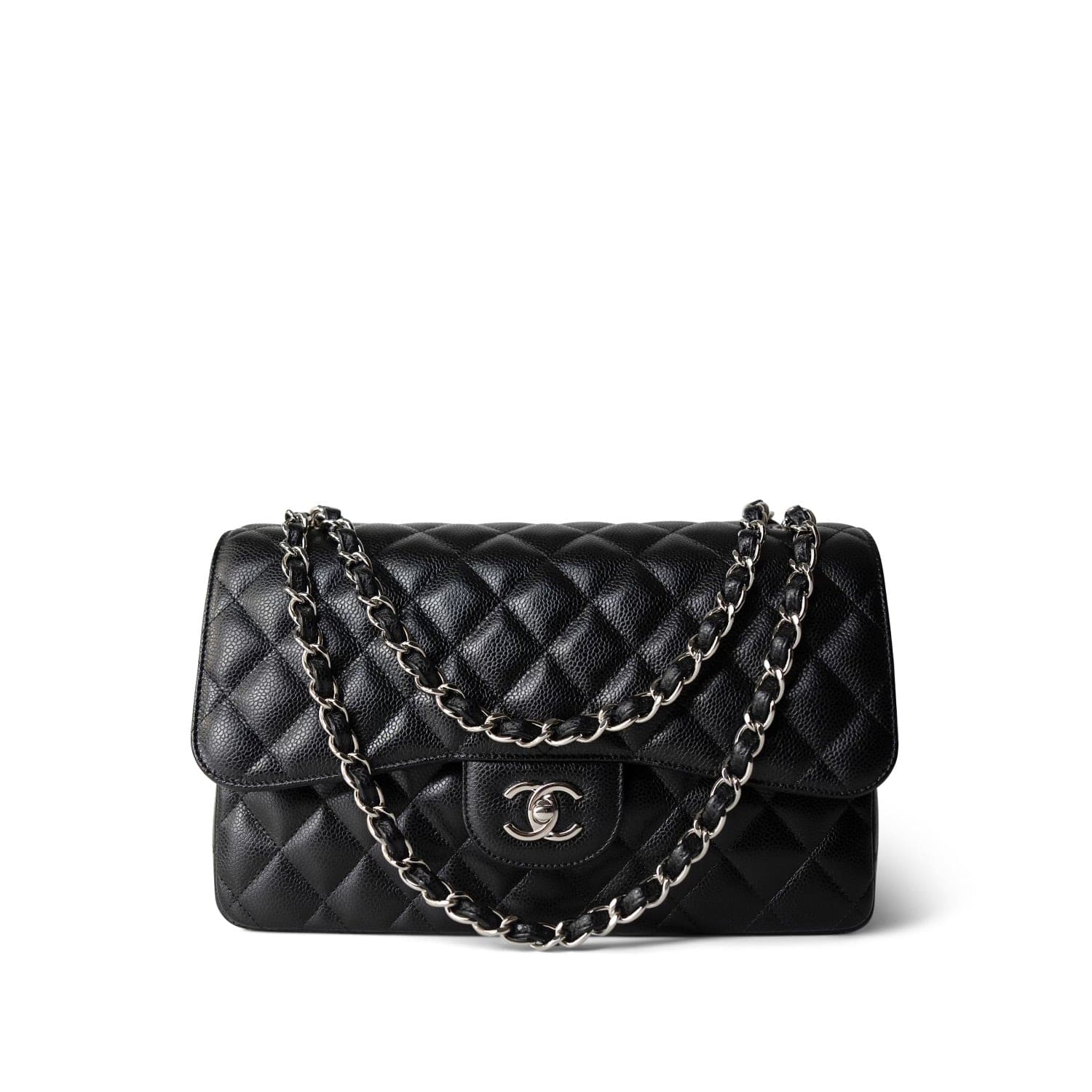18B Black Caviar Quilted Jumbo Classic Flap SHW