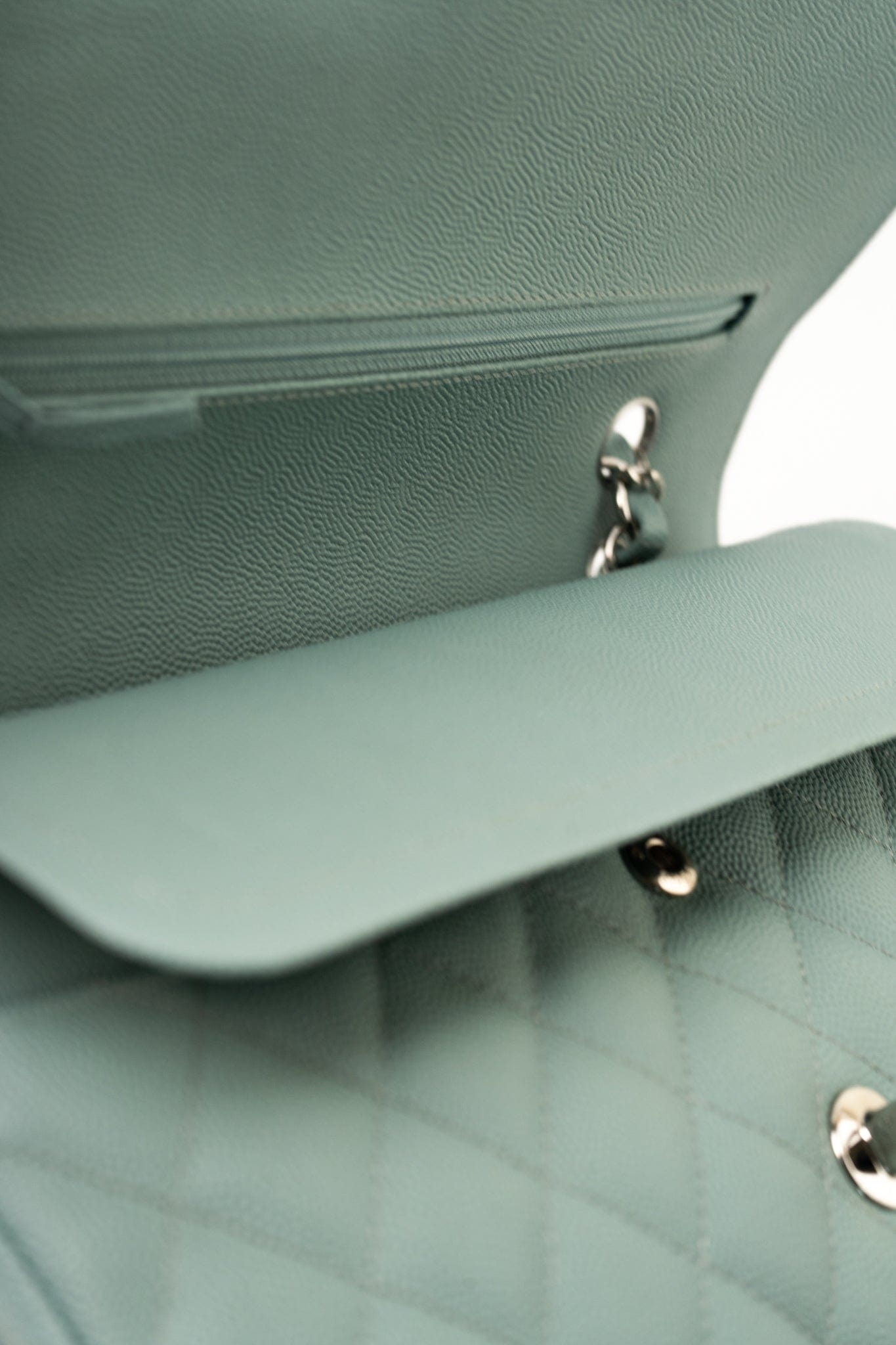18C Light Blue Caviar Quilted Medium Classic Flap Edge Stitching Silver Hardware