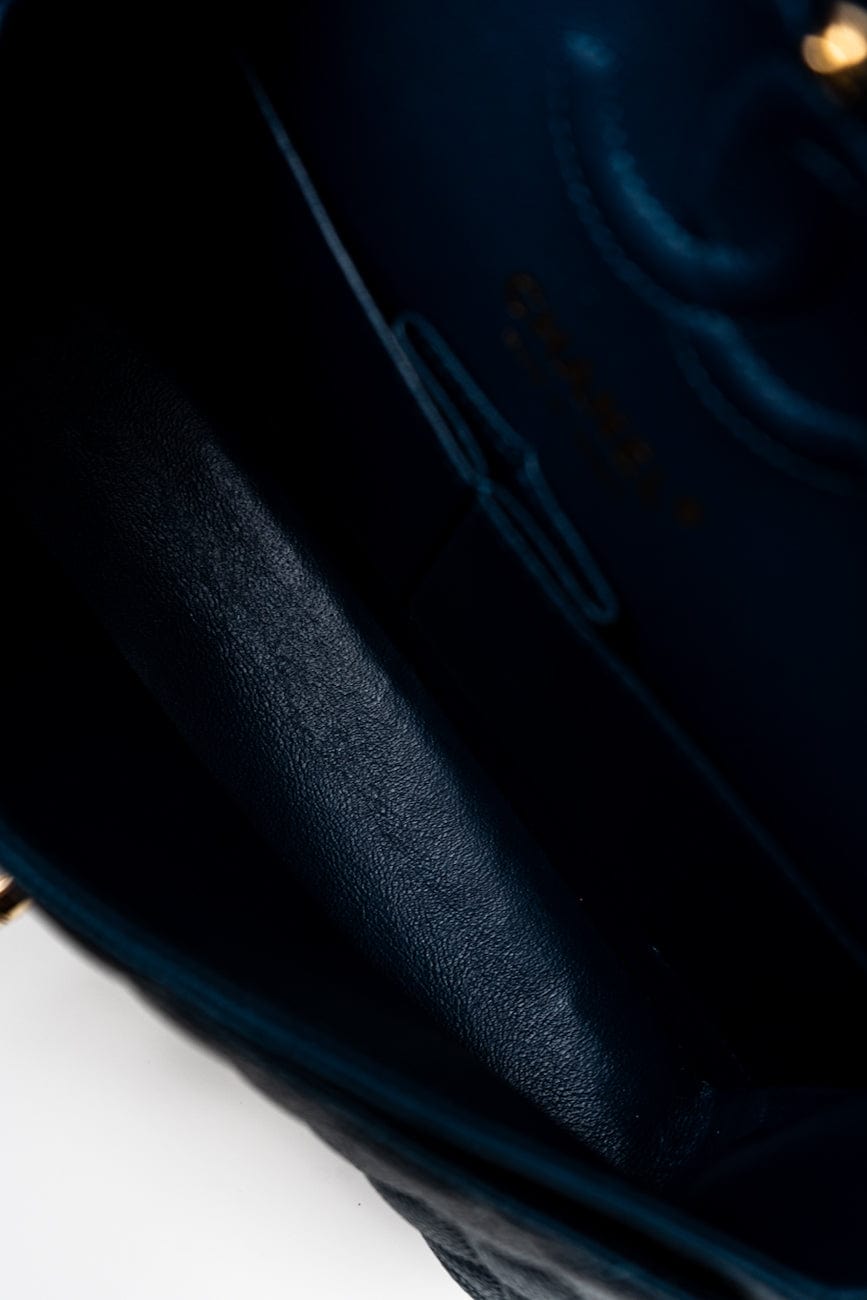 18S Dark Blue Small Caviar Quilted Classic Double Flap Light Gold Hardware