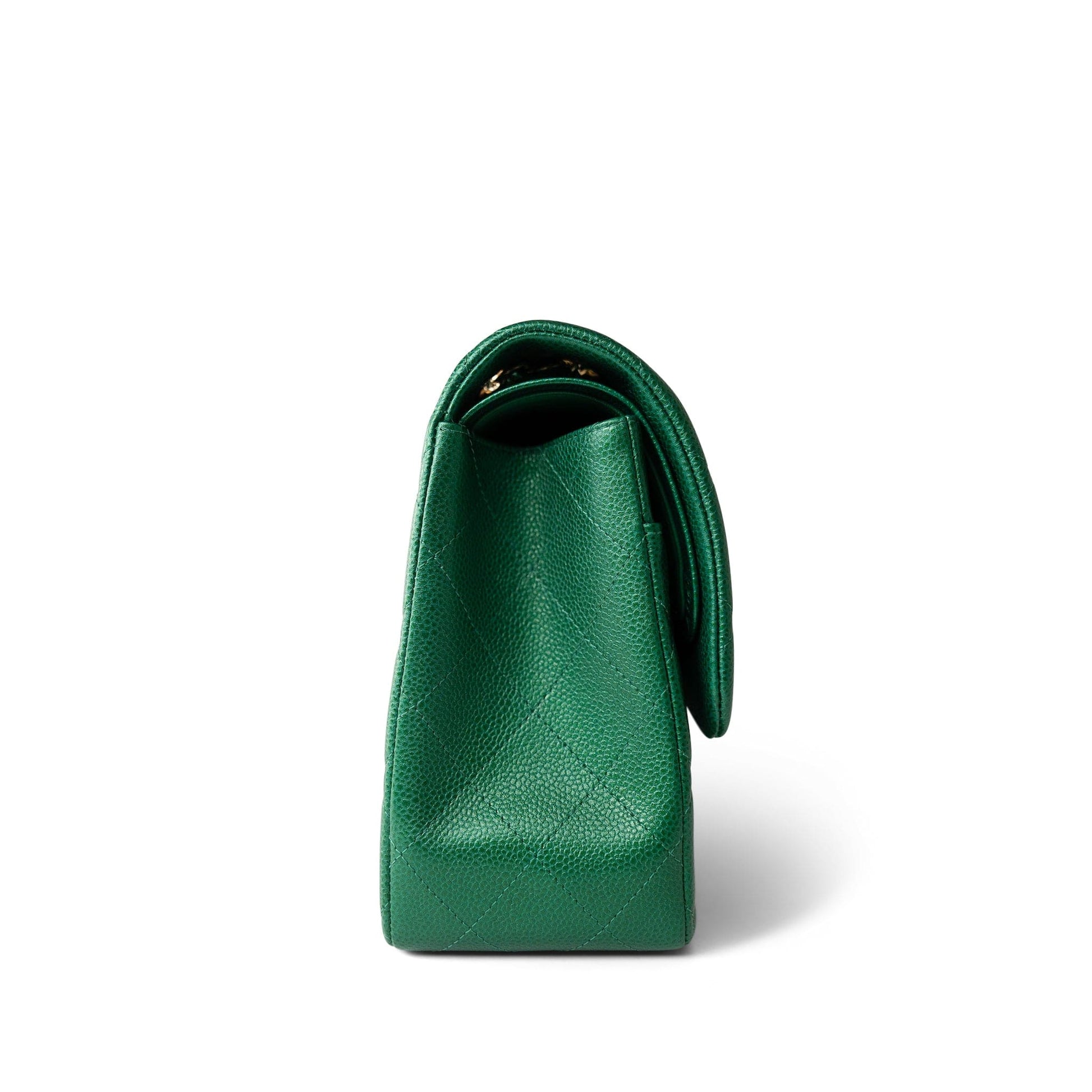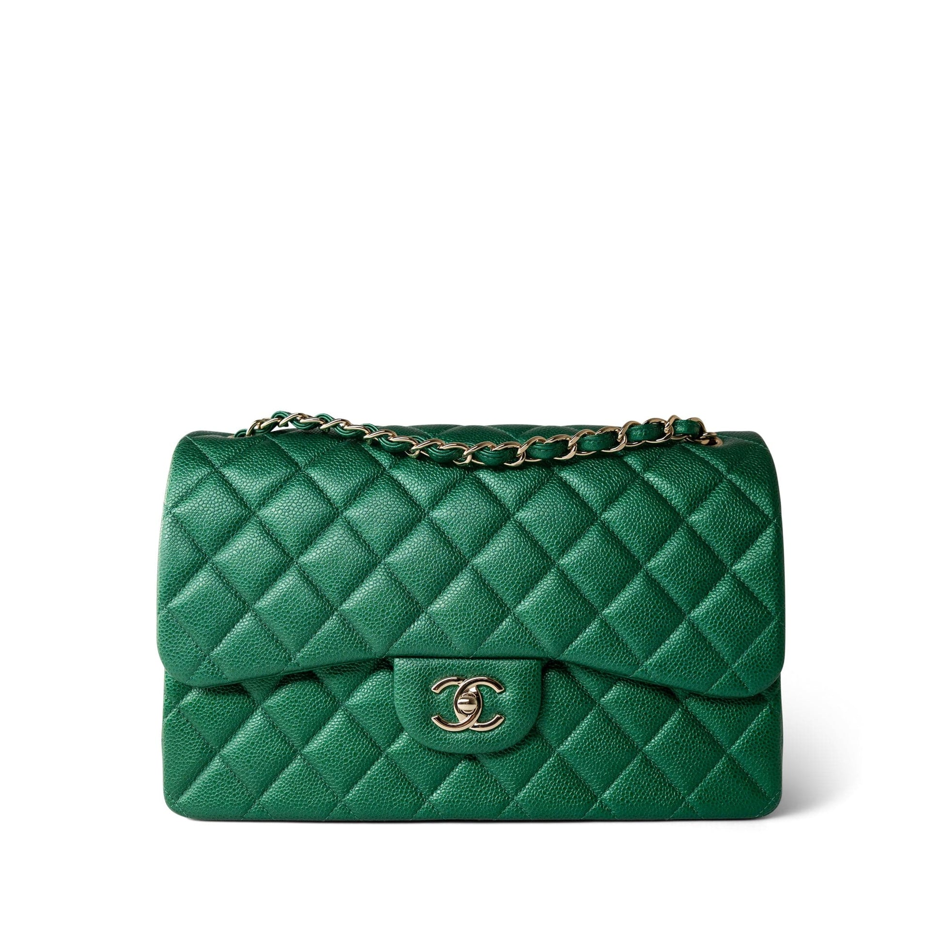 18S Emerald Green Caviar Quilted Jumbo Classic Flap Light Gold Hardware