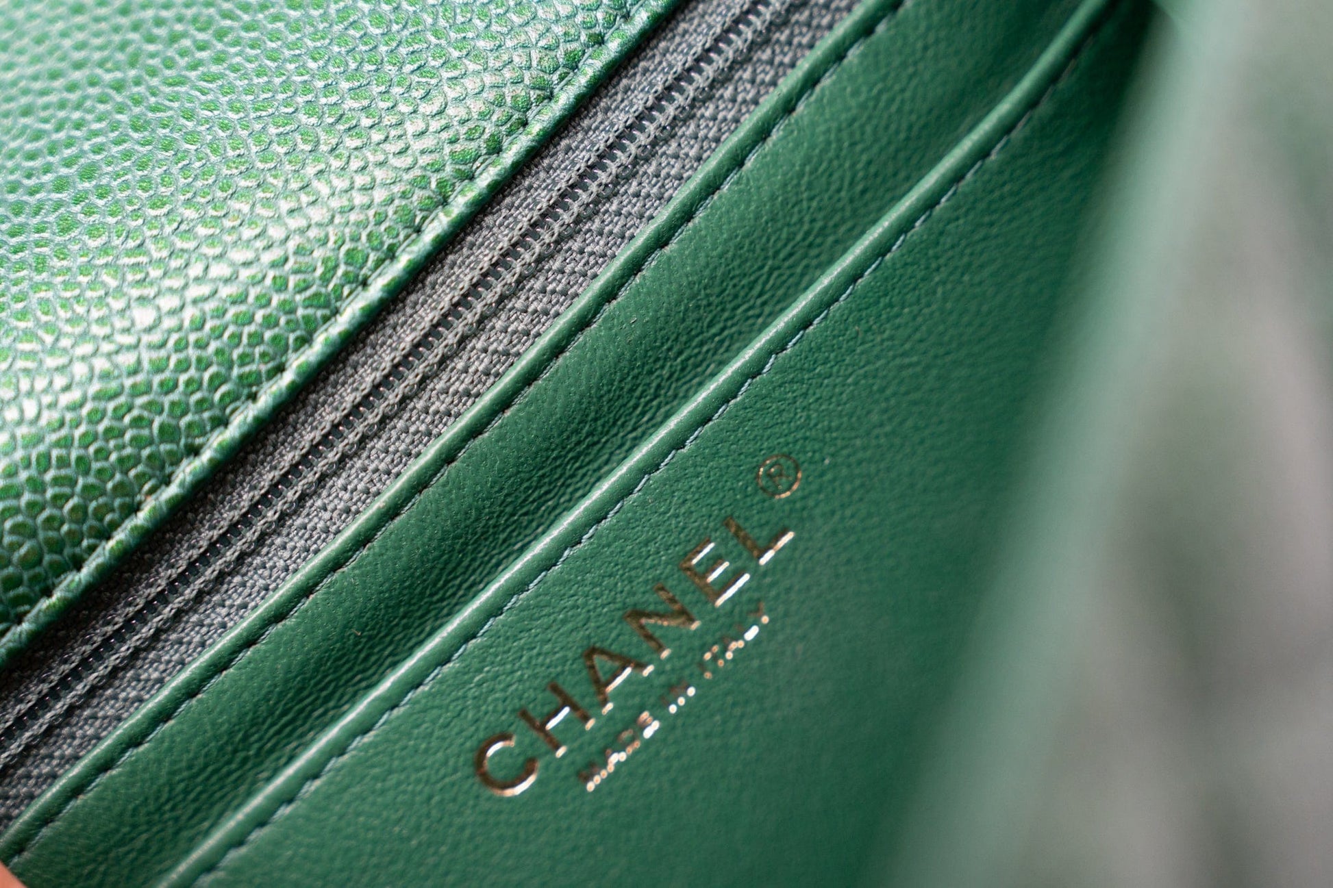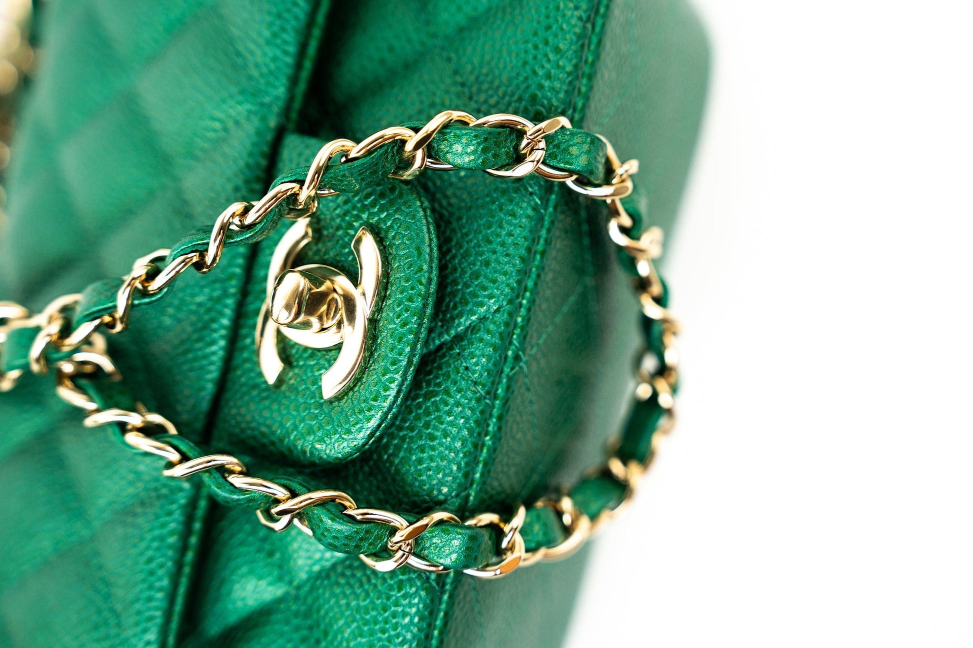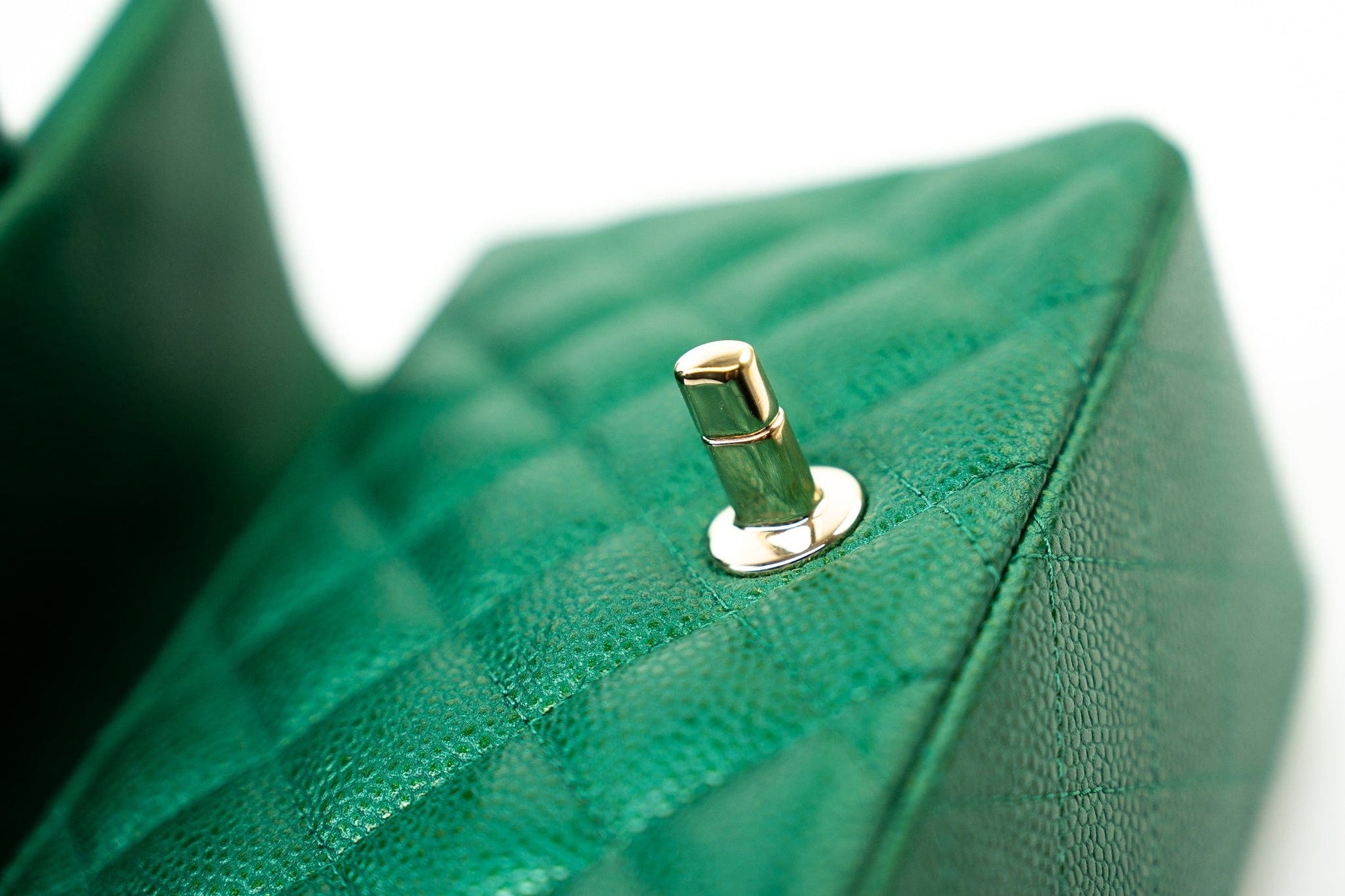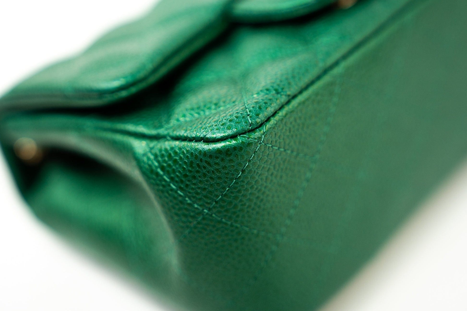 18S Emerald Green Caviar Quilted Mini Square Light Gold Hardware
