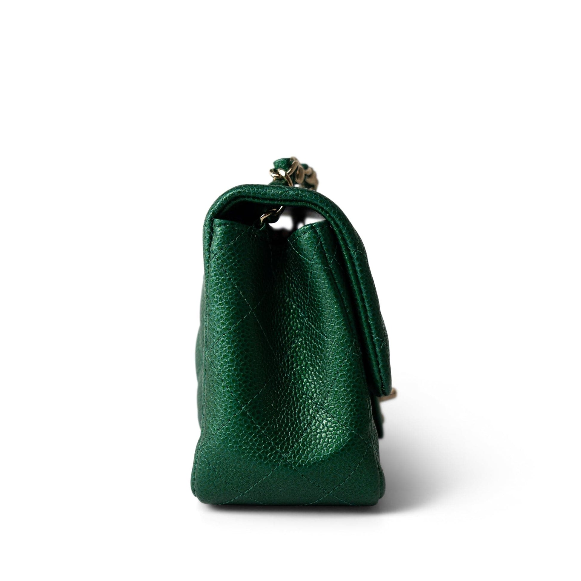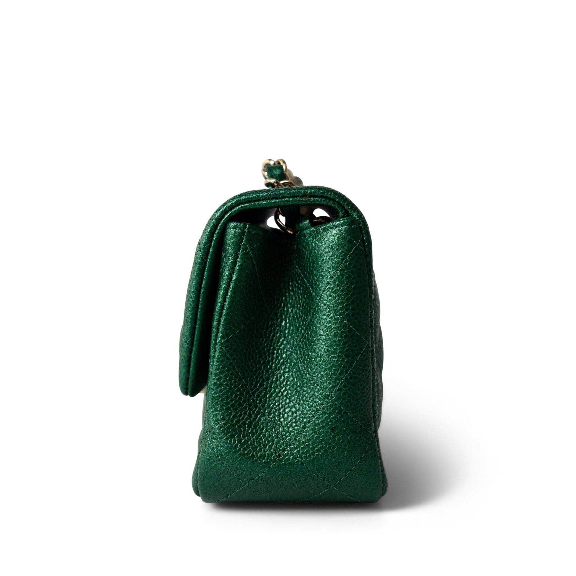 18S Emerald Green Mini Square Single Flap Light Gold Hardware