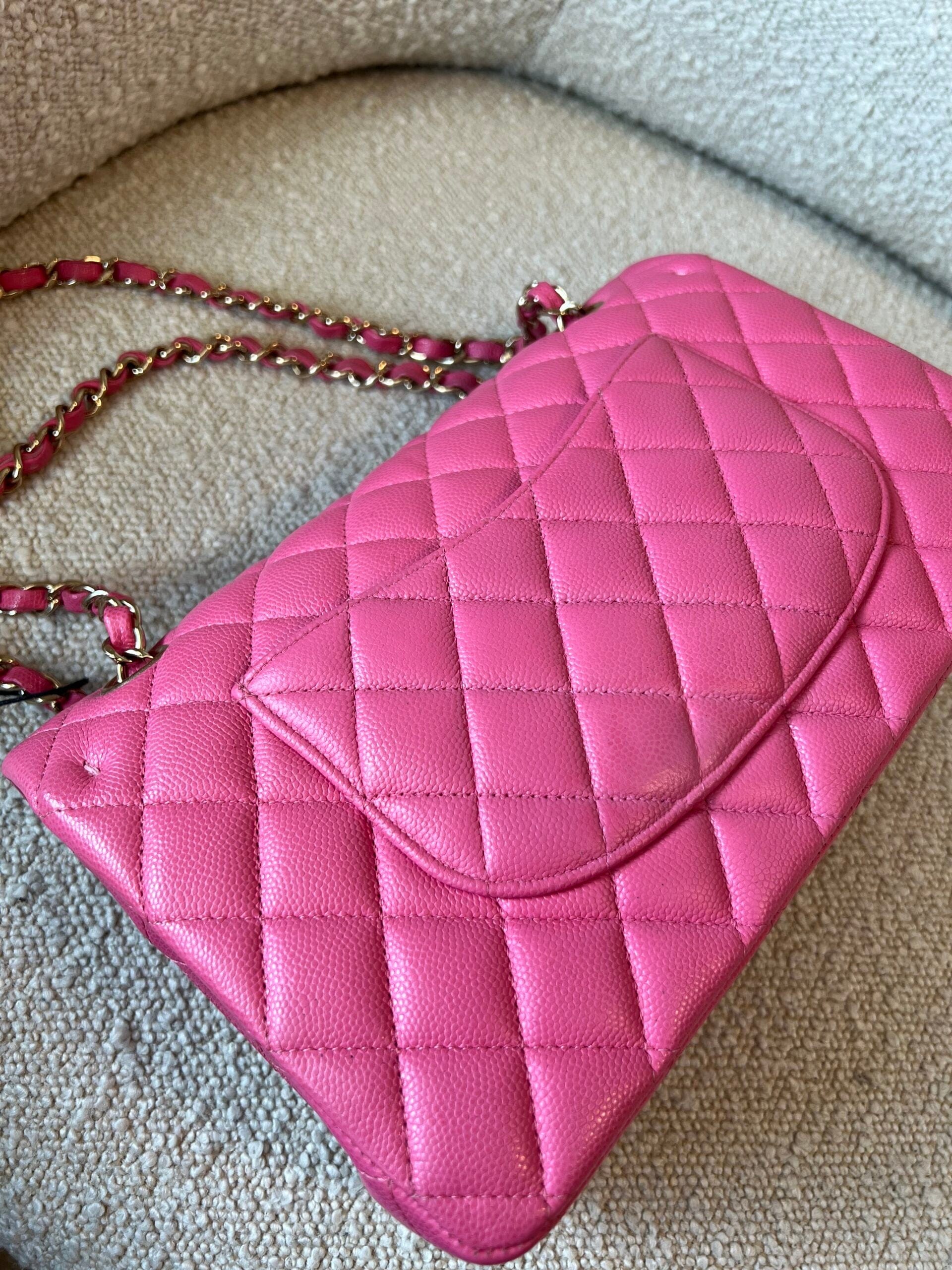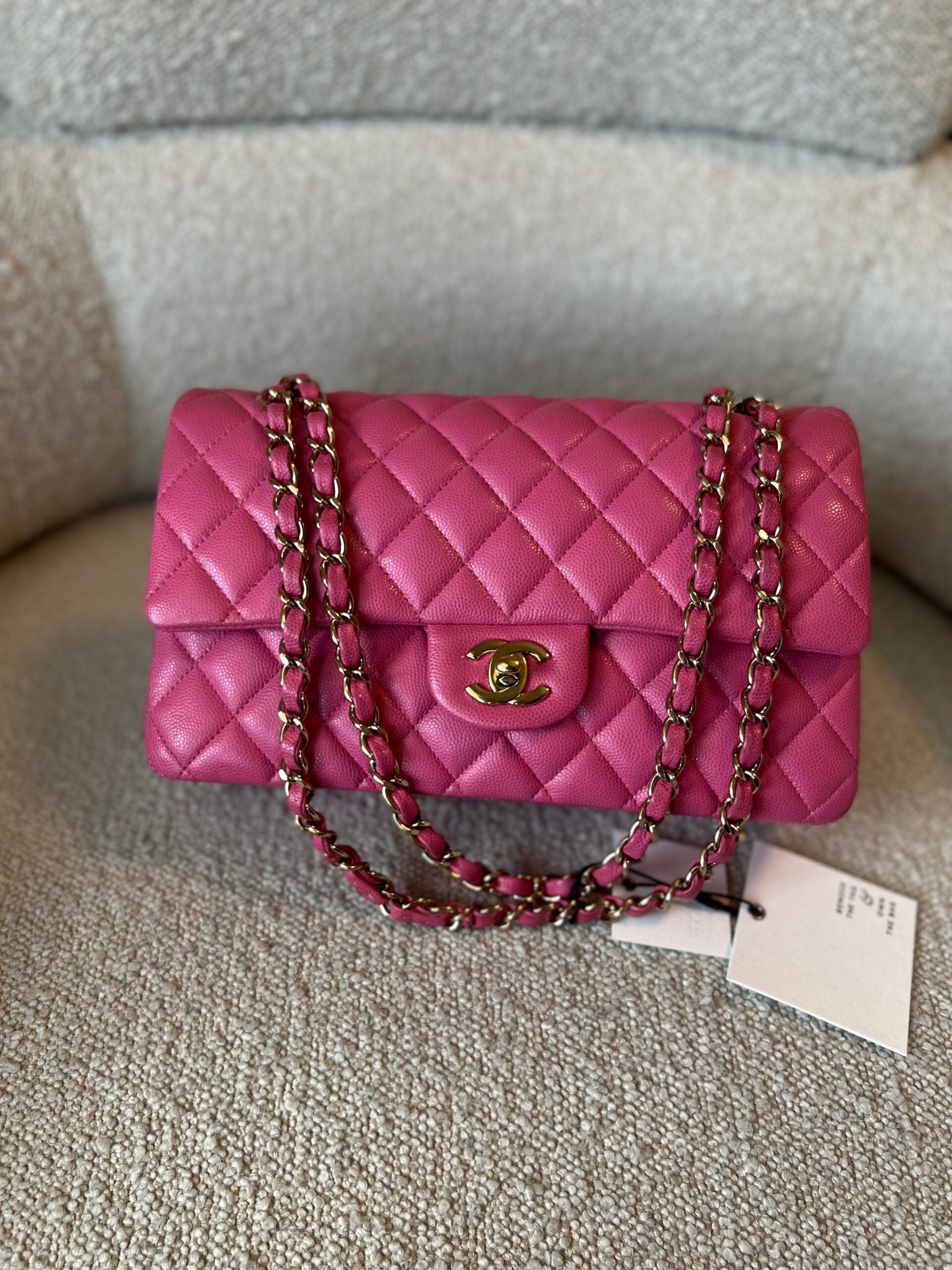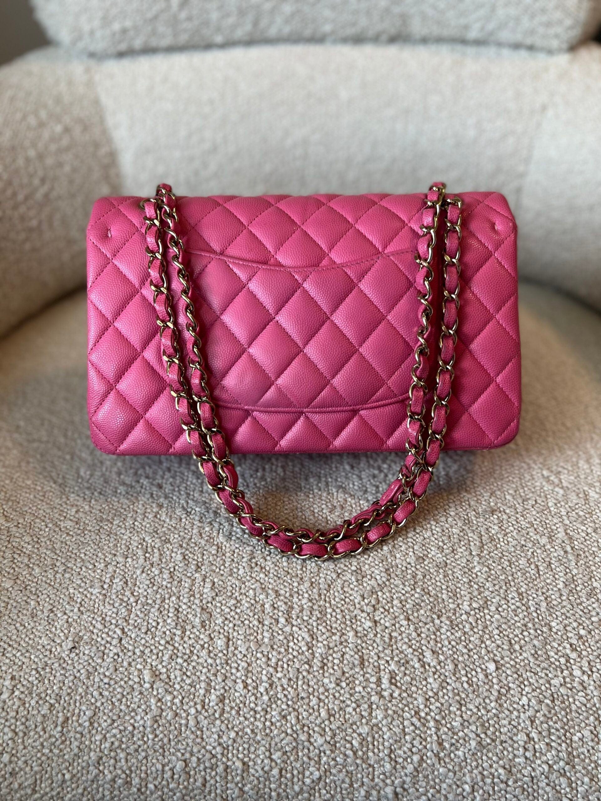 19C Pink Caviar Quilted Classic Flap Medium LGHW