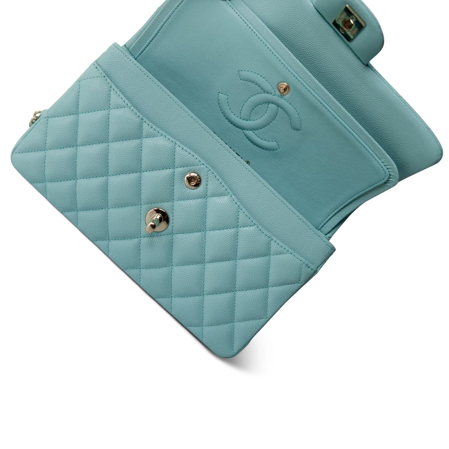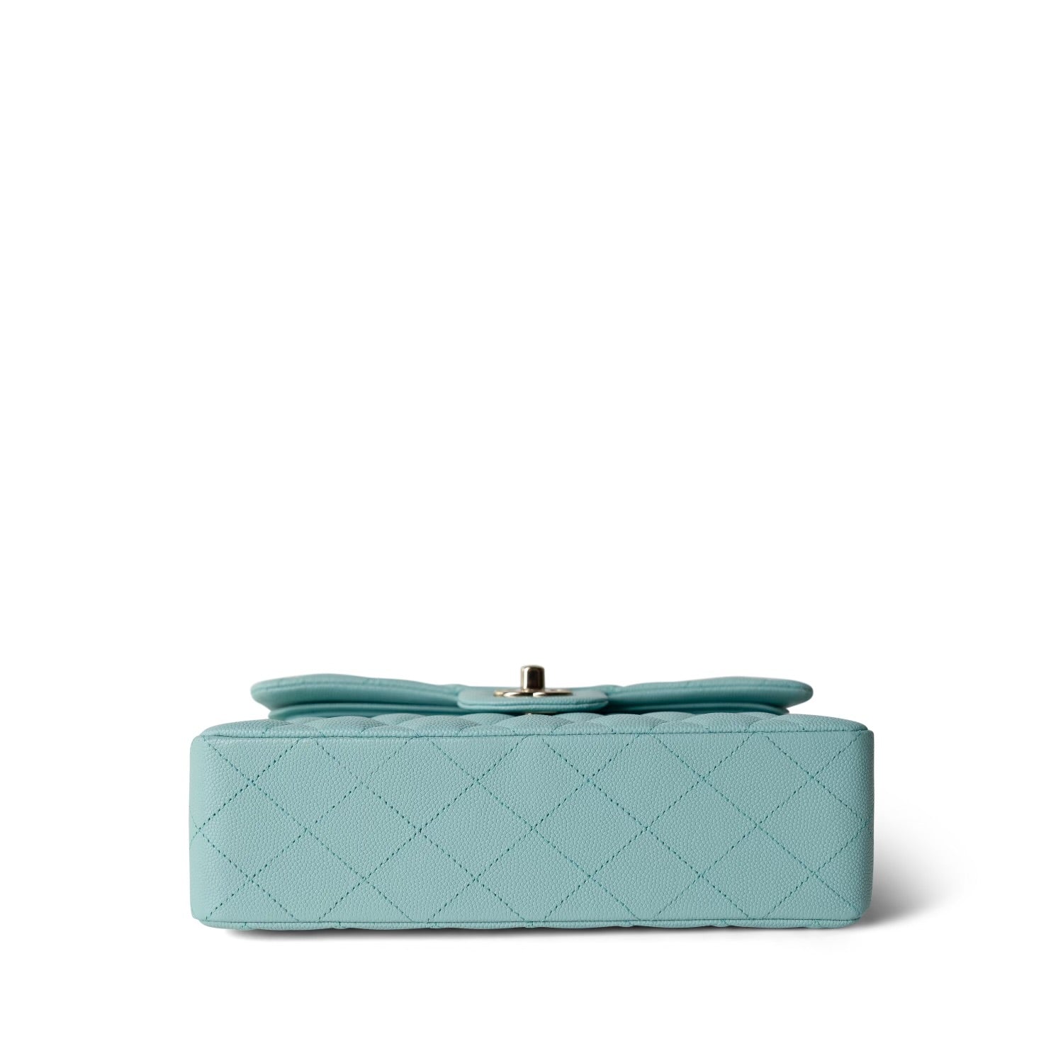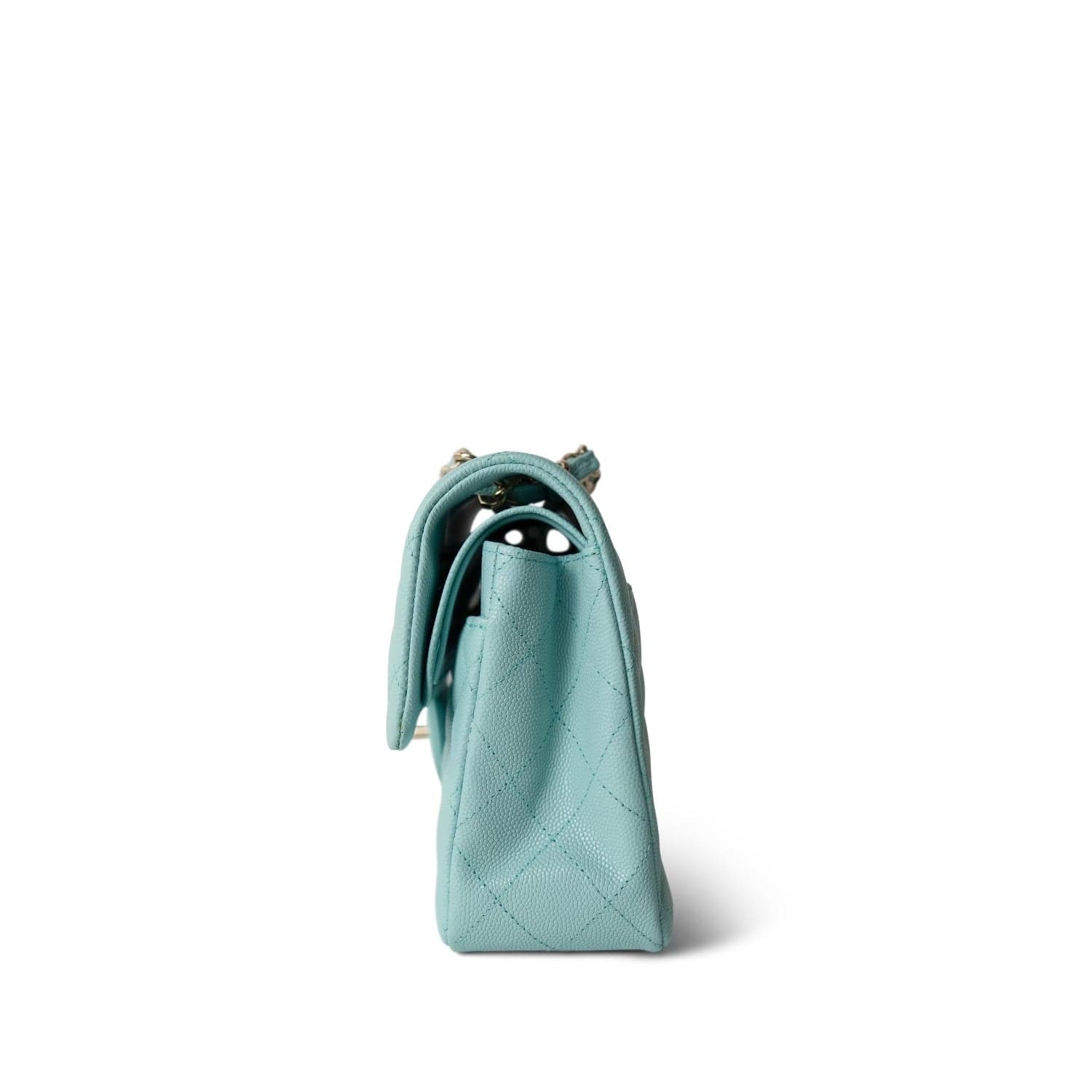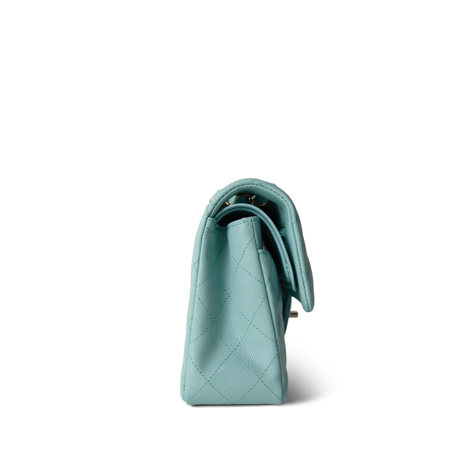 19C Tiffany Blue Caviar Quilted Classic Flap Small Light Gold Hardware