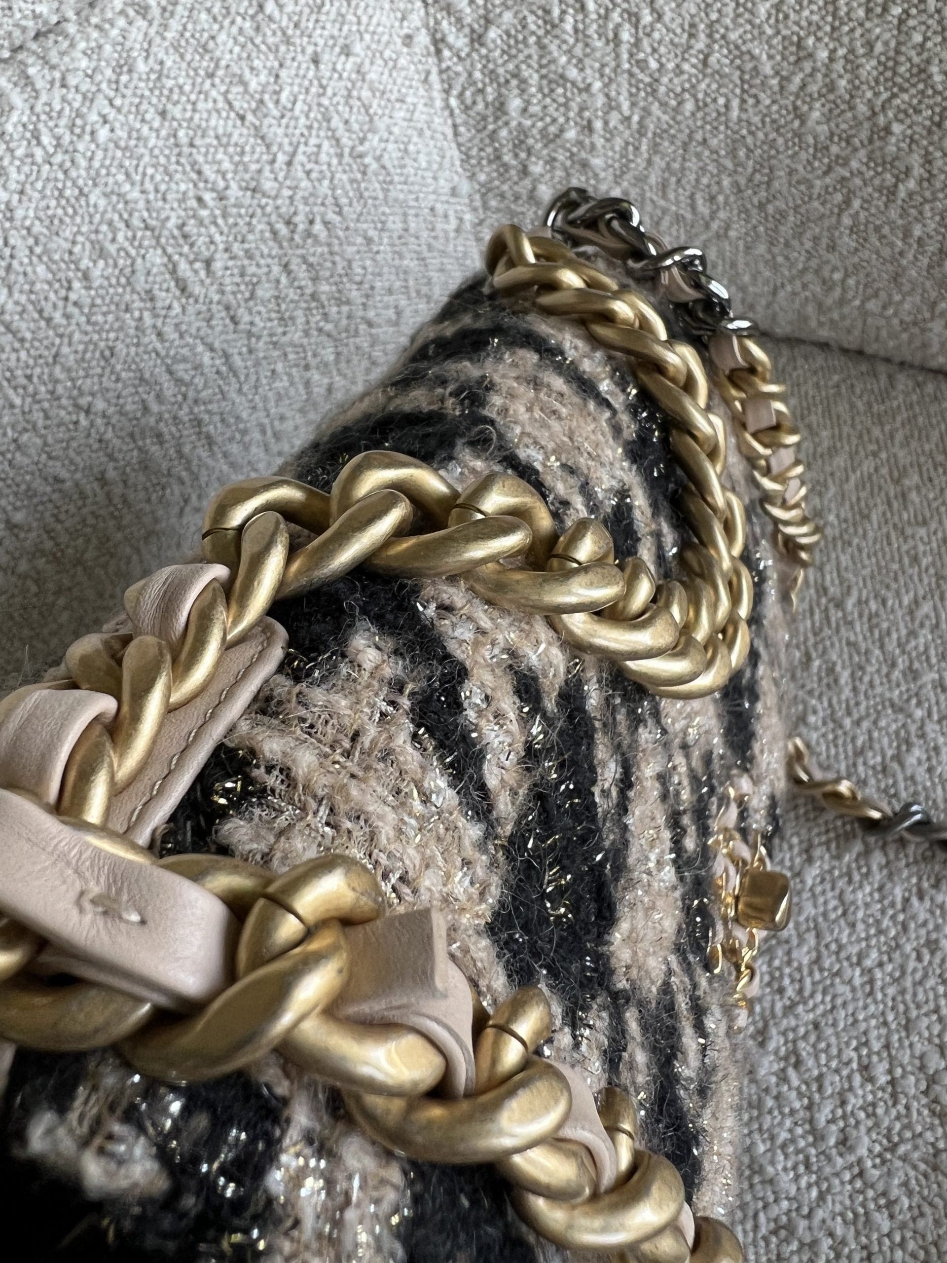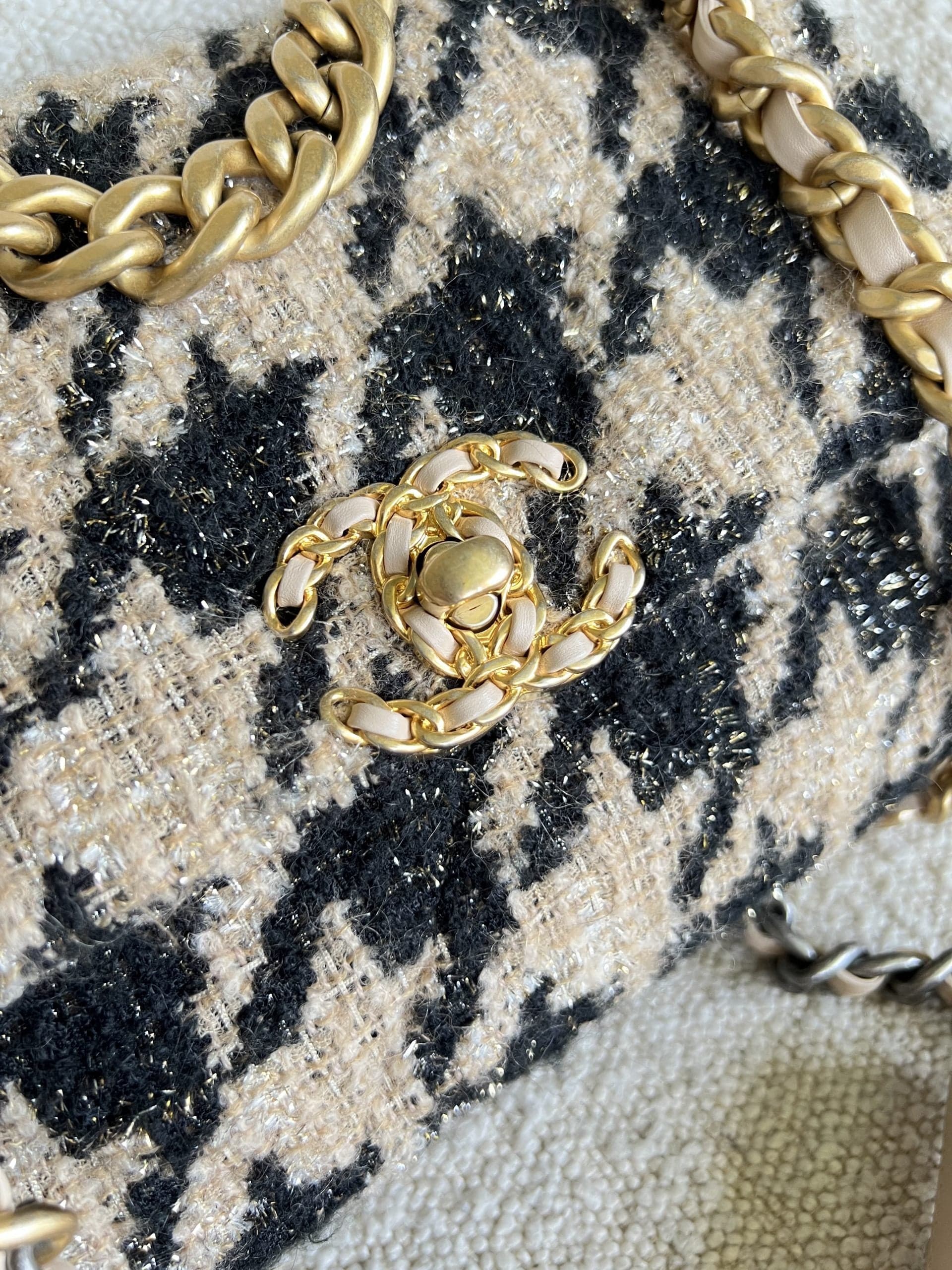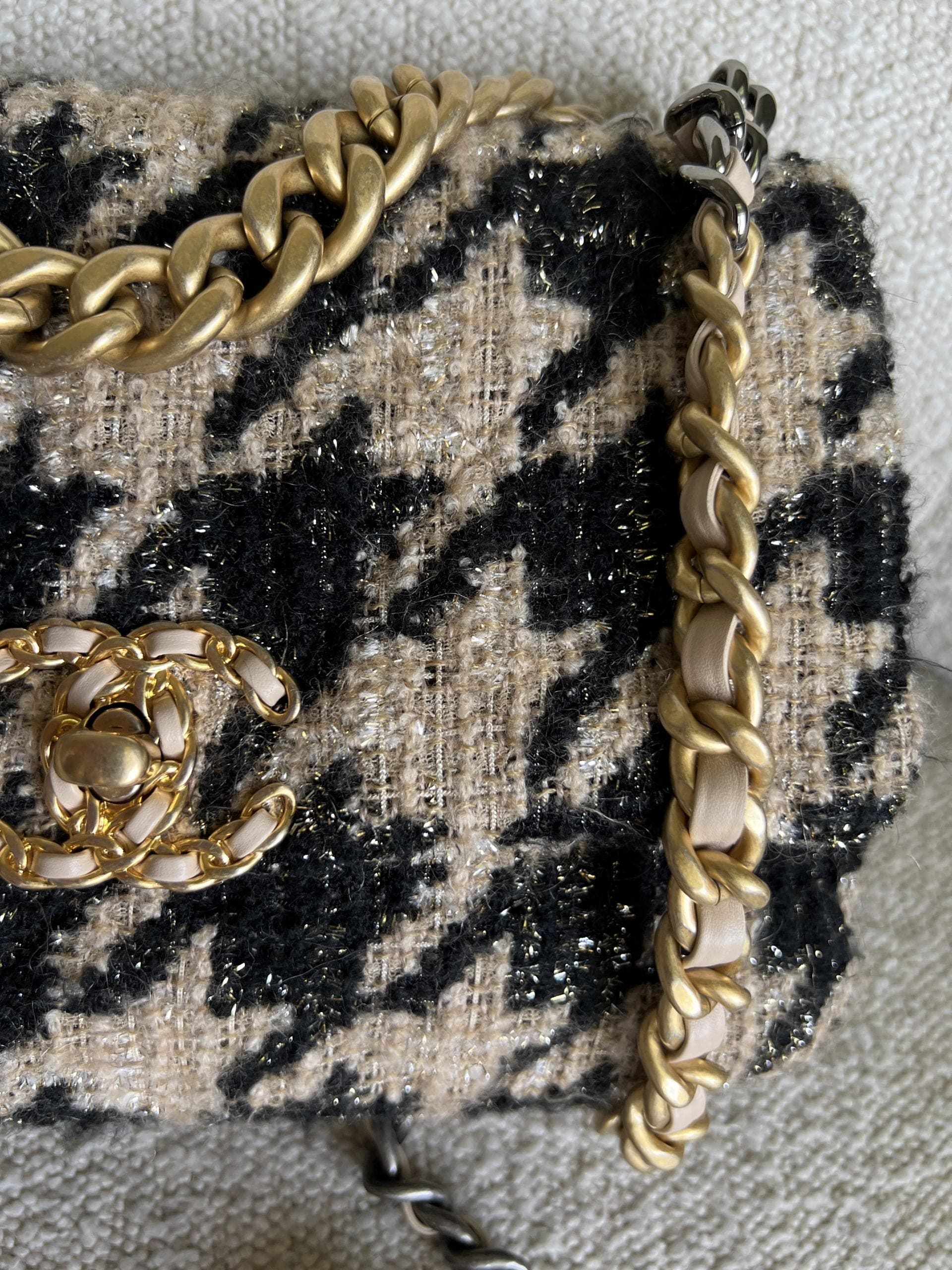 19K Houndstooth 19 Flap Beige/Black Small MHW