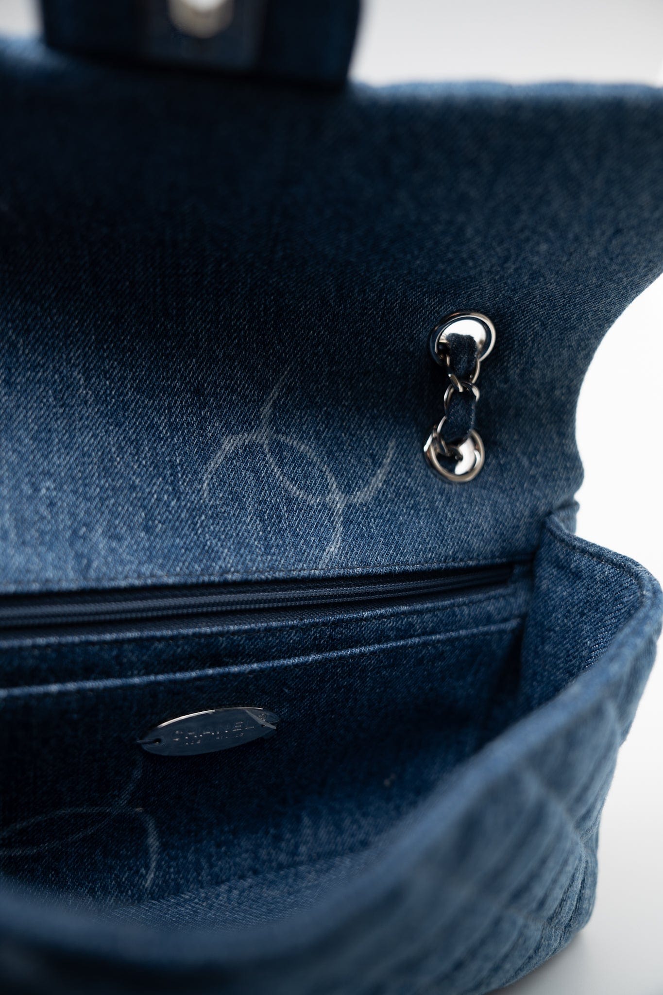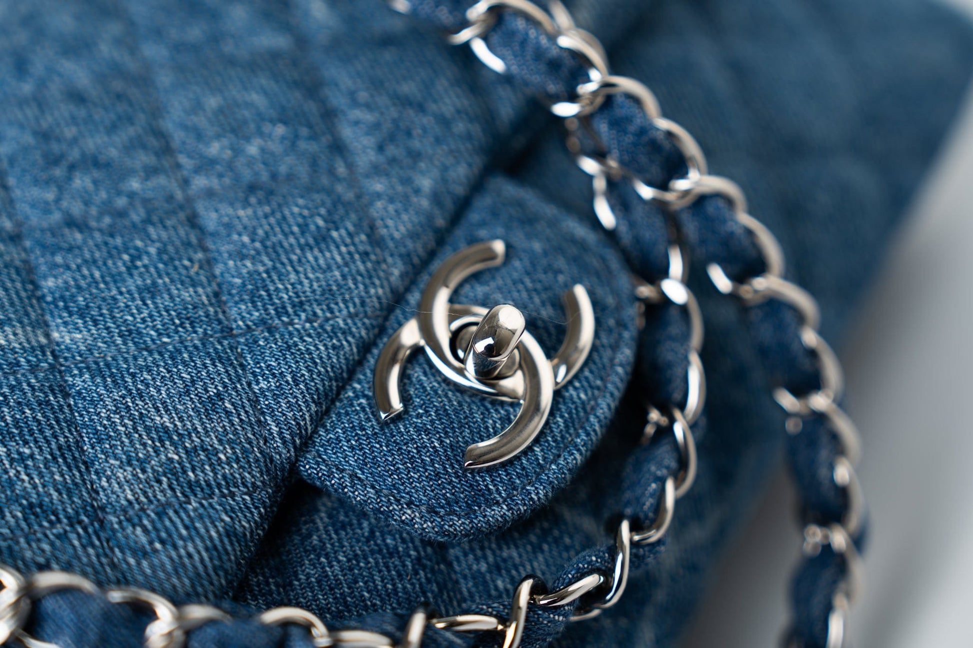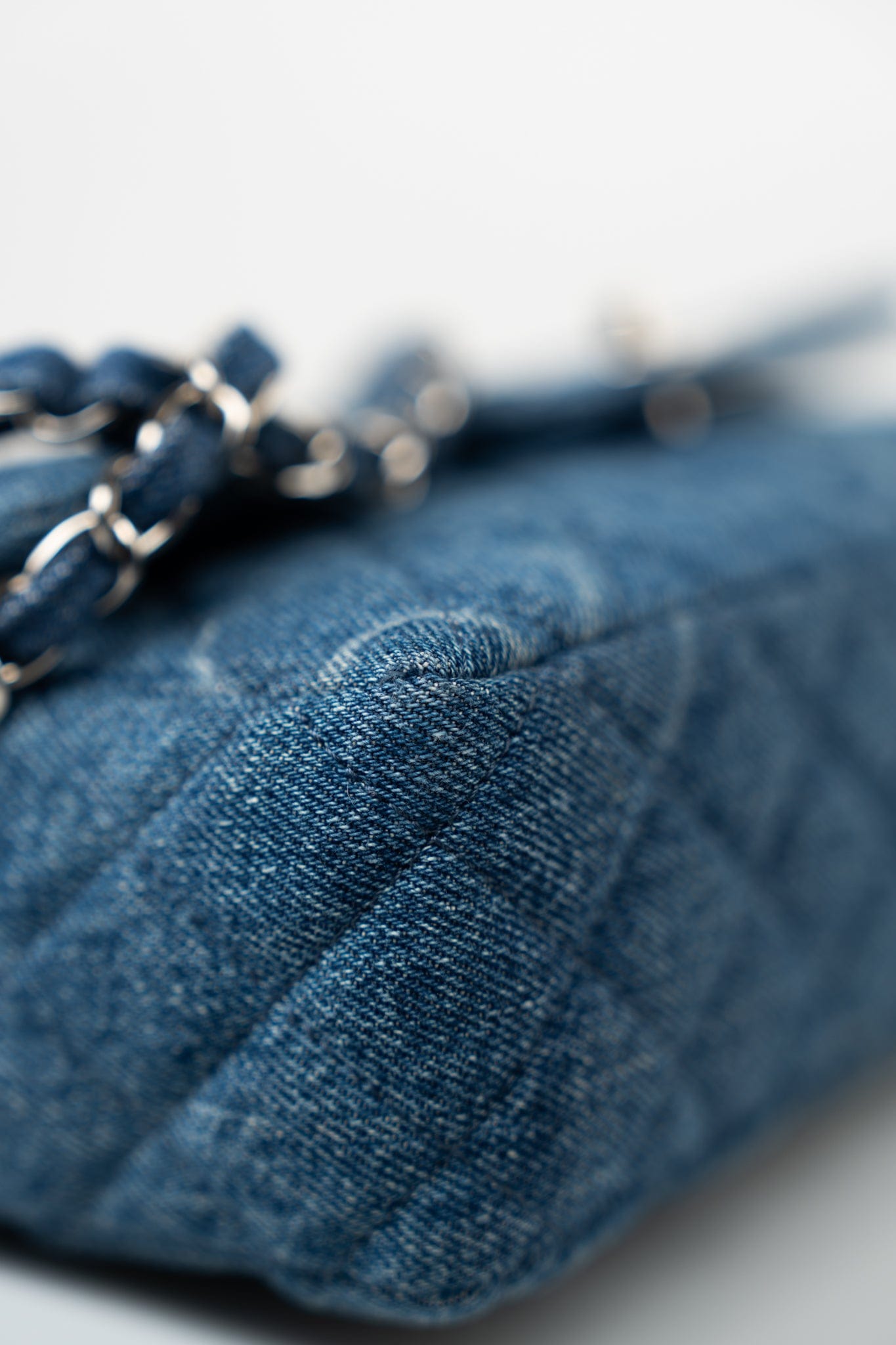 20B Denim Quilted Single Flap Medium Silver Hardware