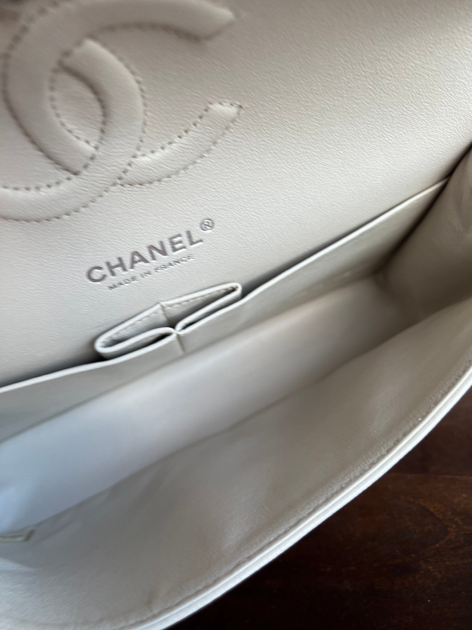 20B Ivory Caviar Quilted Classic Flap Medium Silver Hardware
