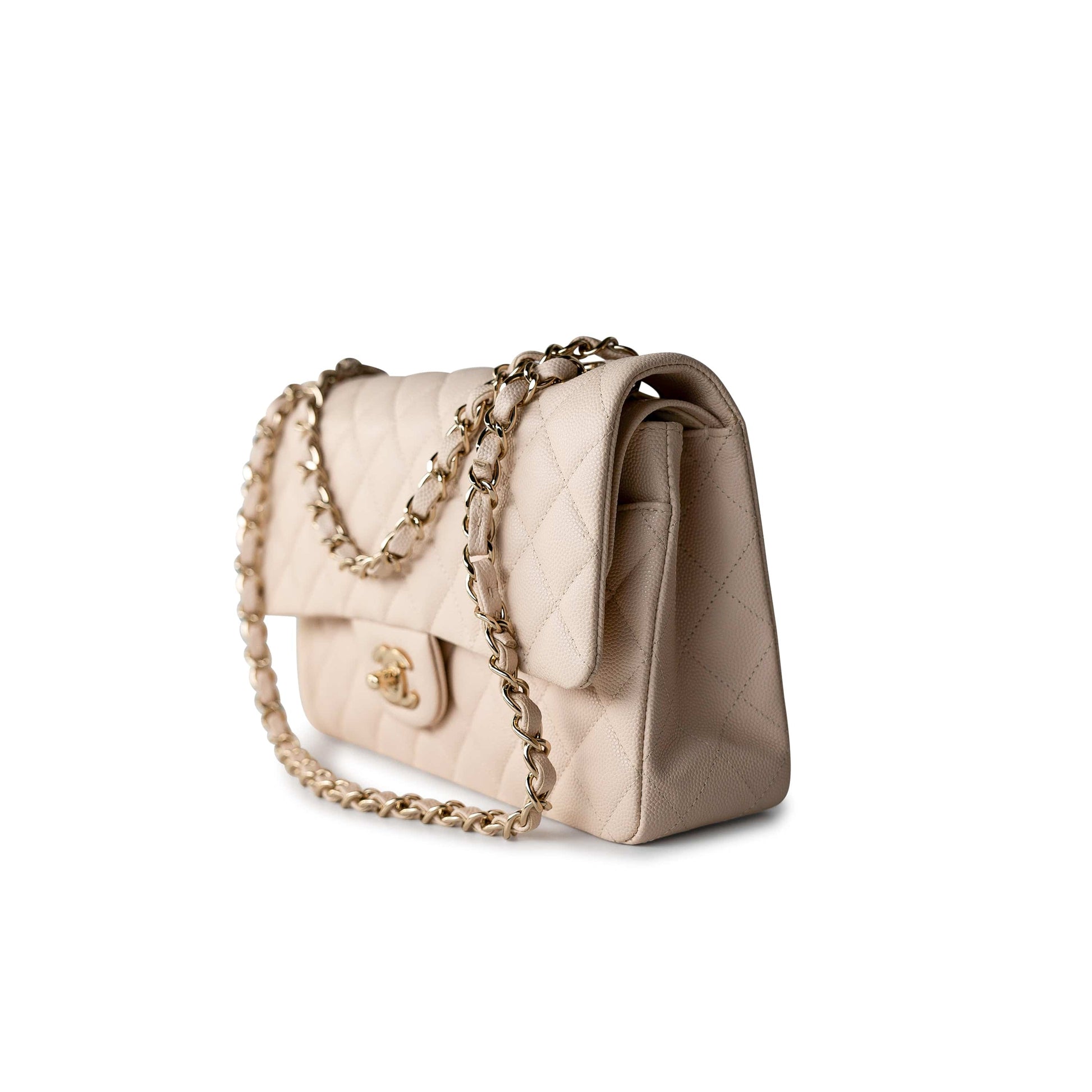 20C Light Beige Caviar Quilted Classic Flap Medium Light Gold Hardware