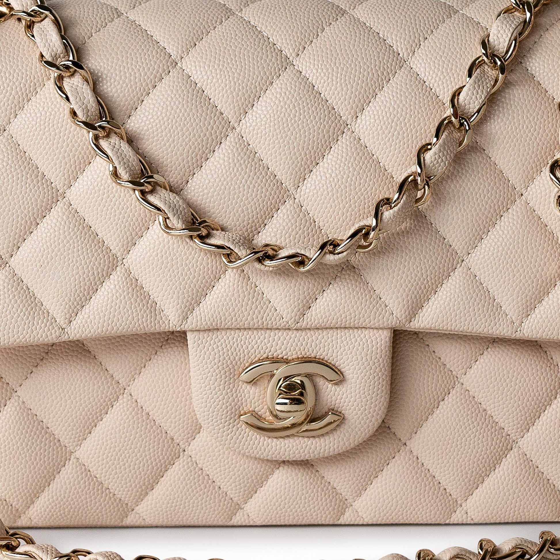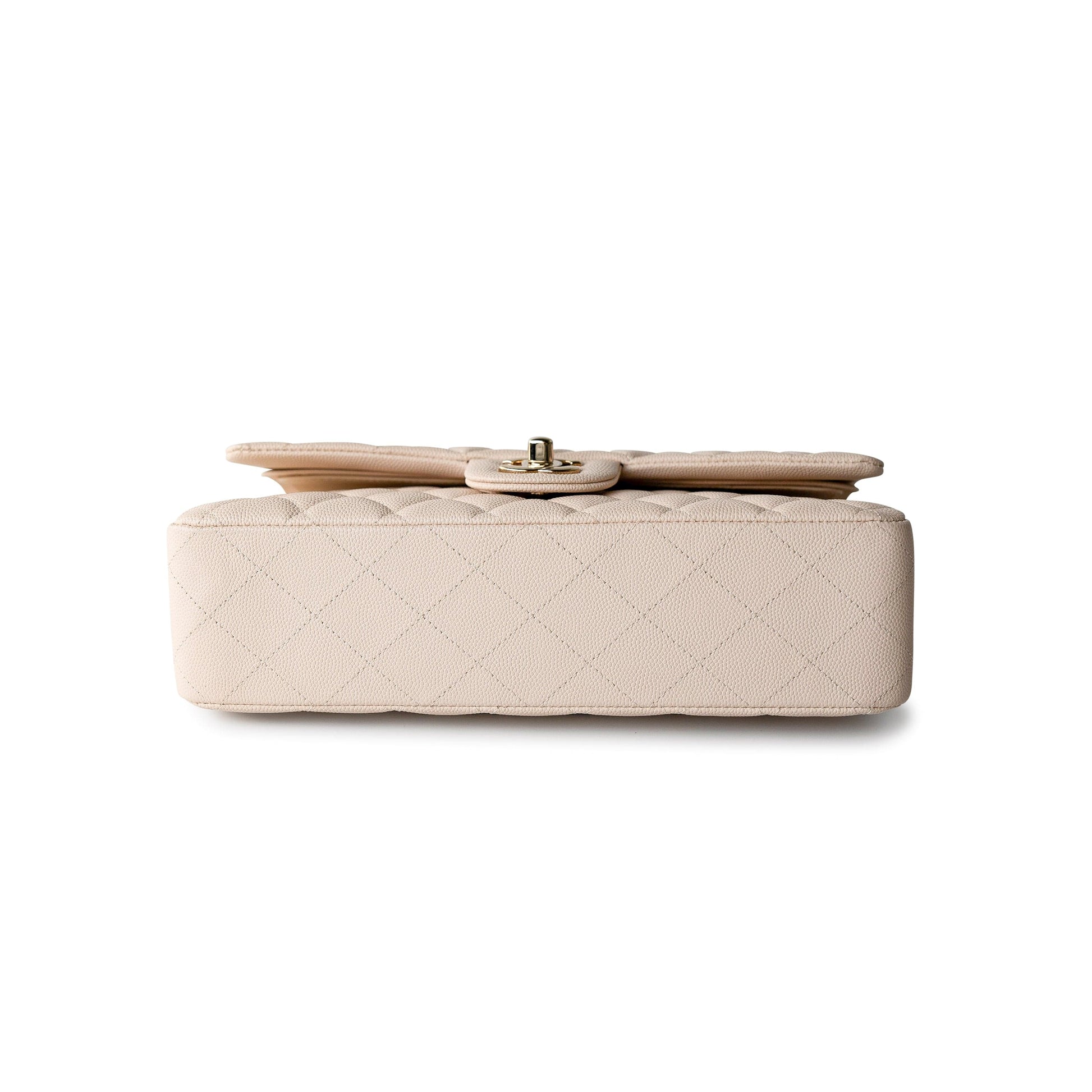 20C Light Beige Caviar Quilted Classic Flap Medium Light Gold Hardware