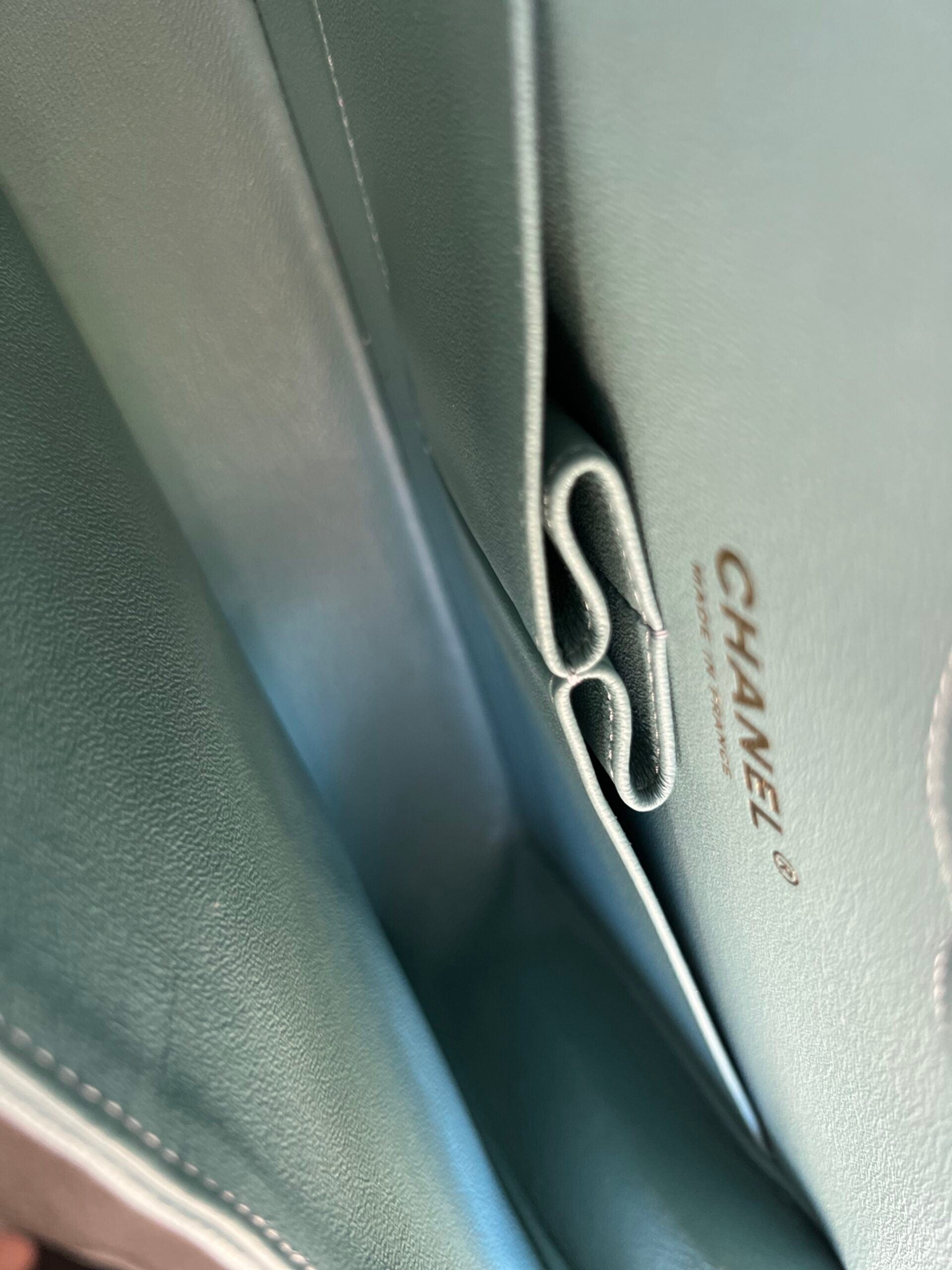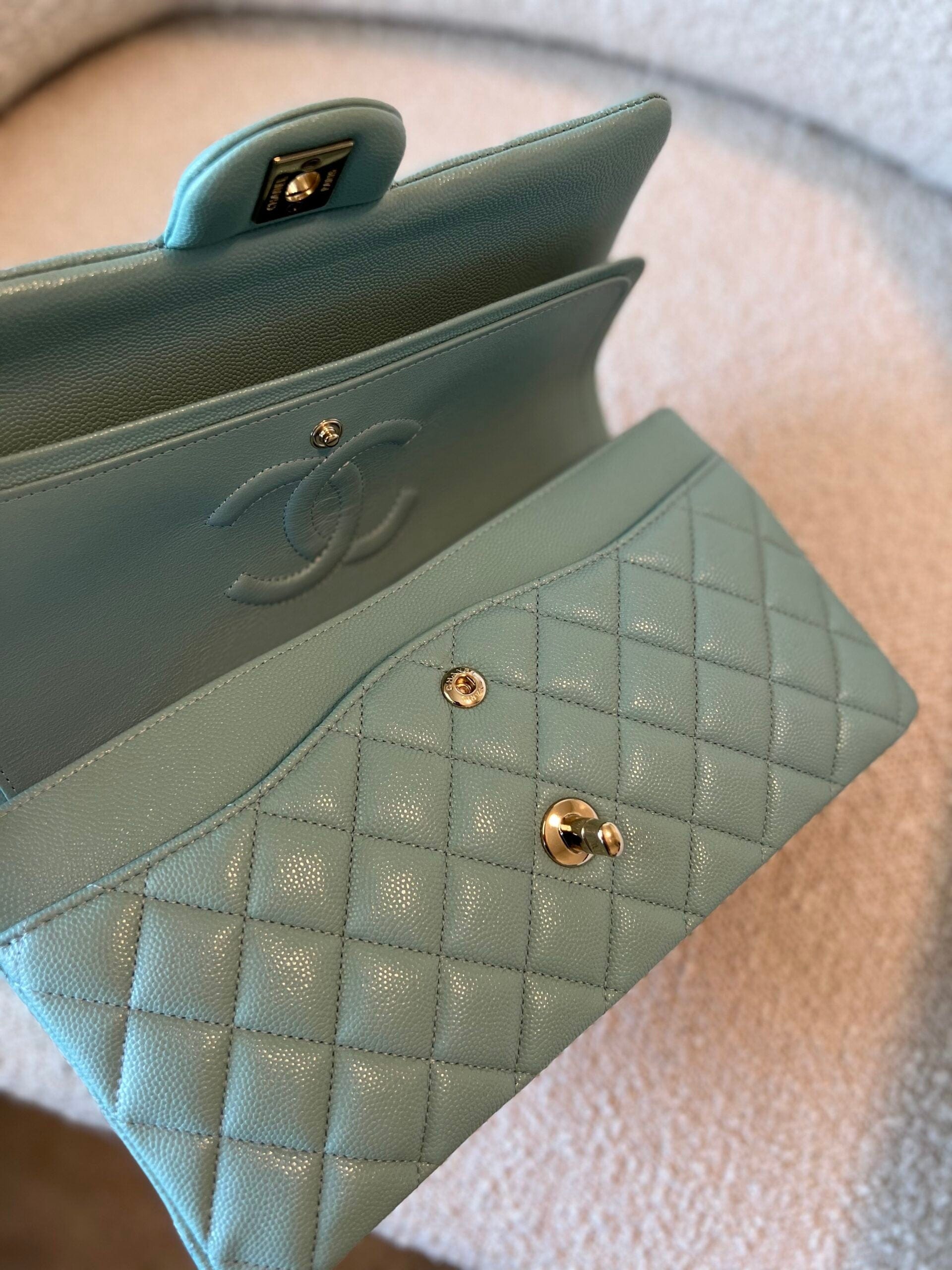 20C Tiffany Blue Caviar Quilted Classic Double Flap Medium Light Gold Hardware