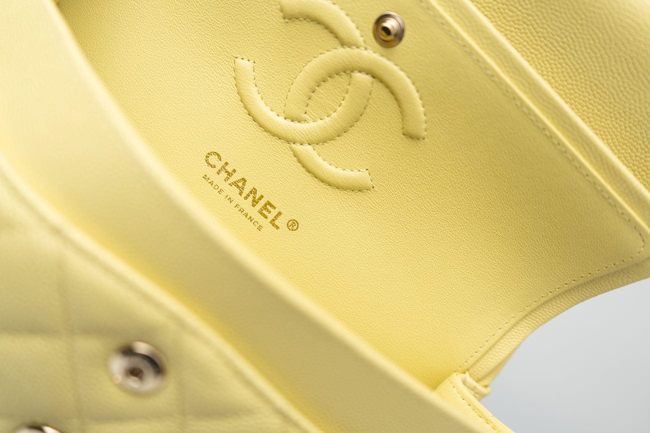 20S Yellow Caviar Quilted Classic Flap Small Light Gold Hardware
