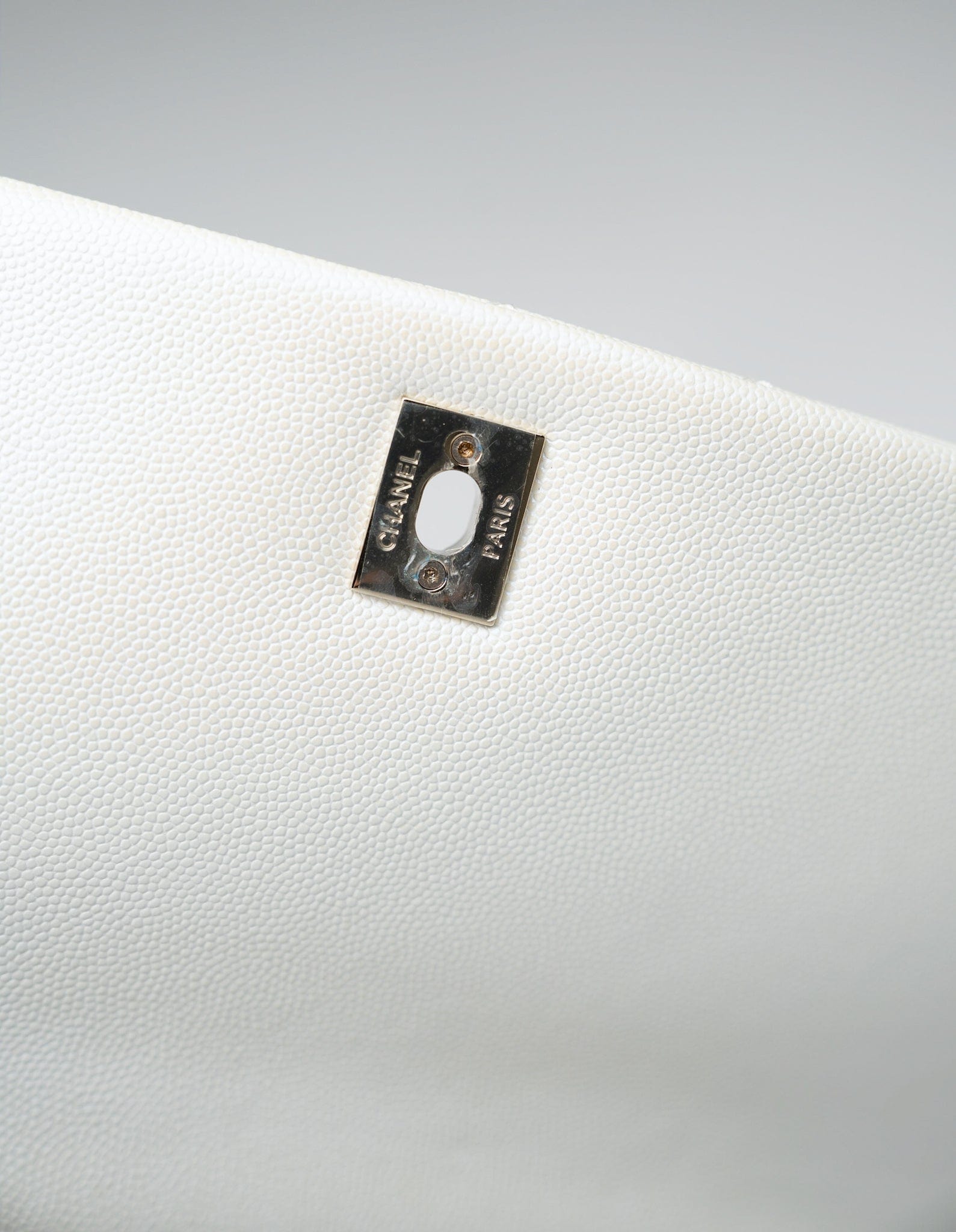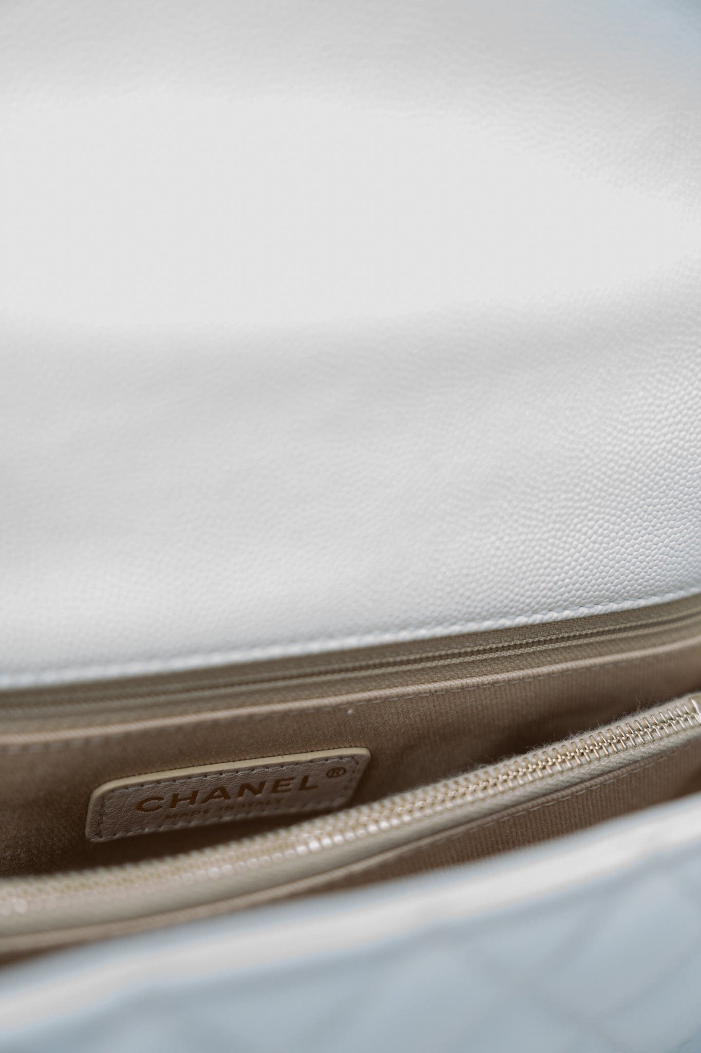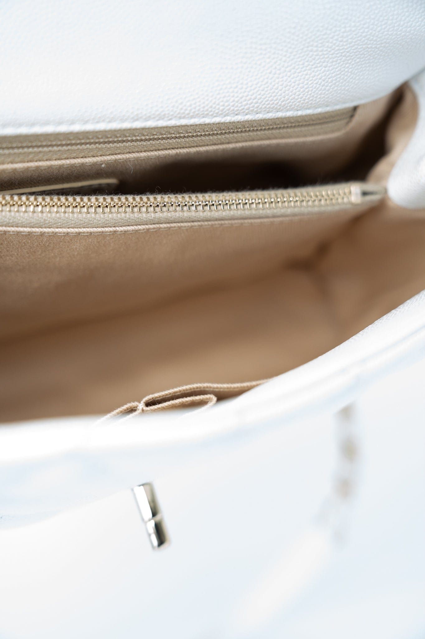 20K Iridescent White Caviar Quilted Coco Handle Medium Light Gold Hardware
