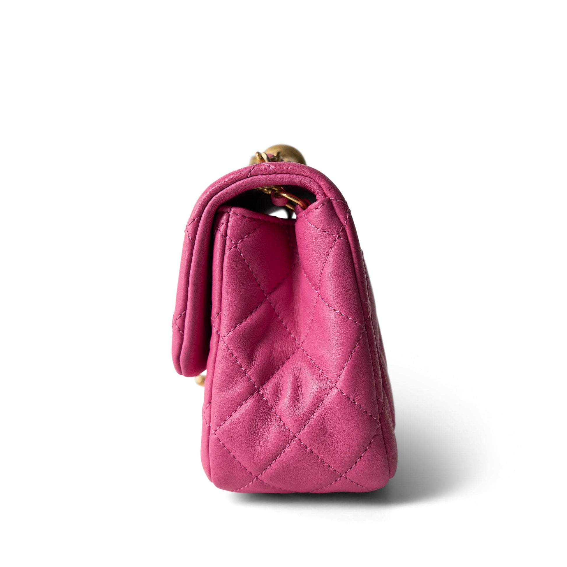20S Pink Lambskin Quilted Pearl Crush Mini Aged Gold Hardware