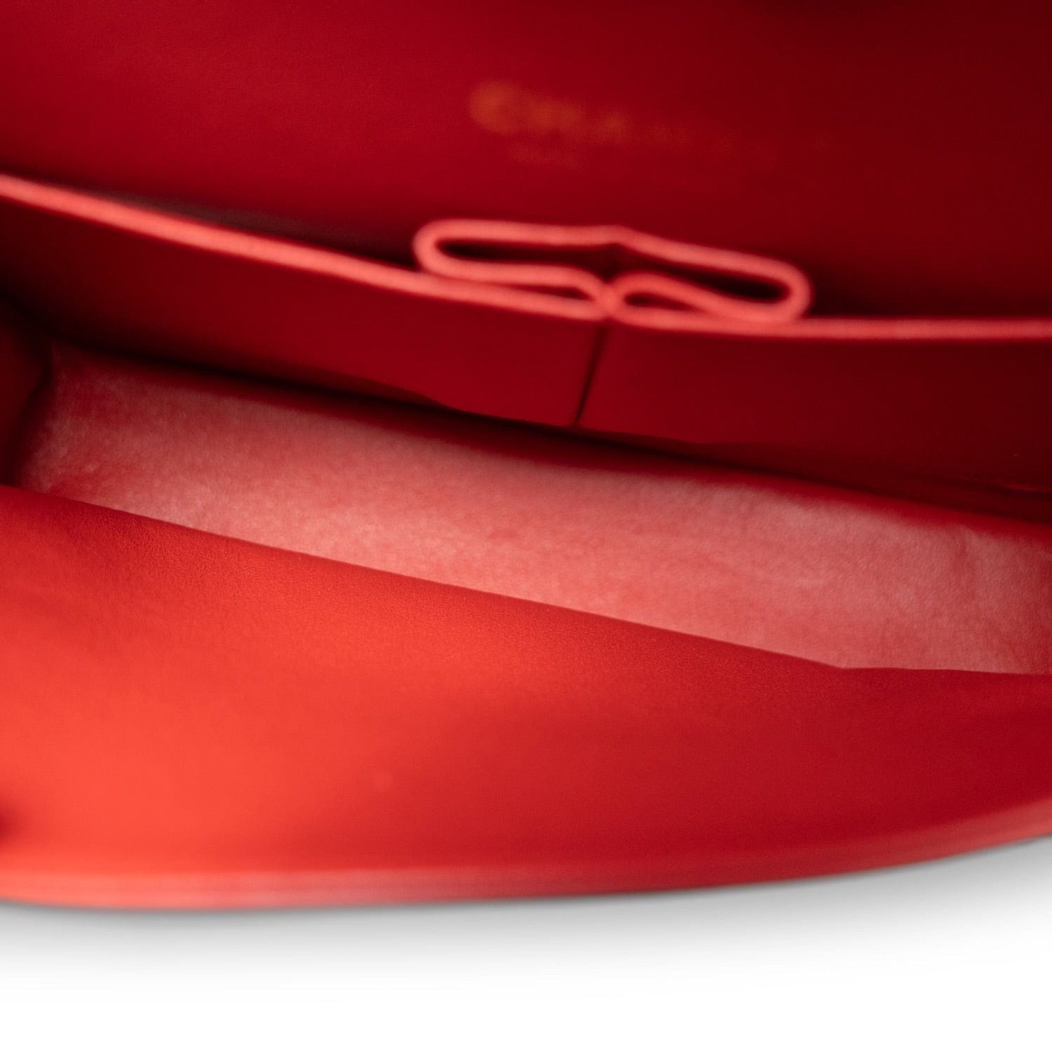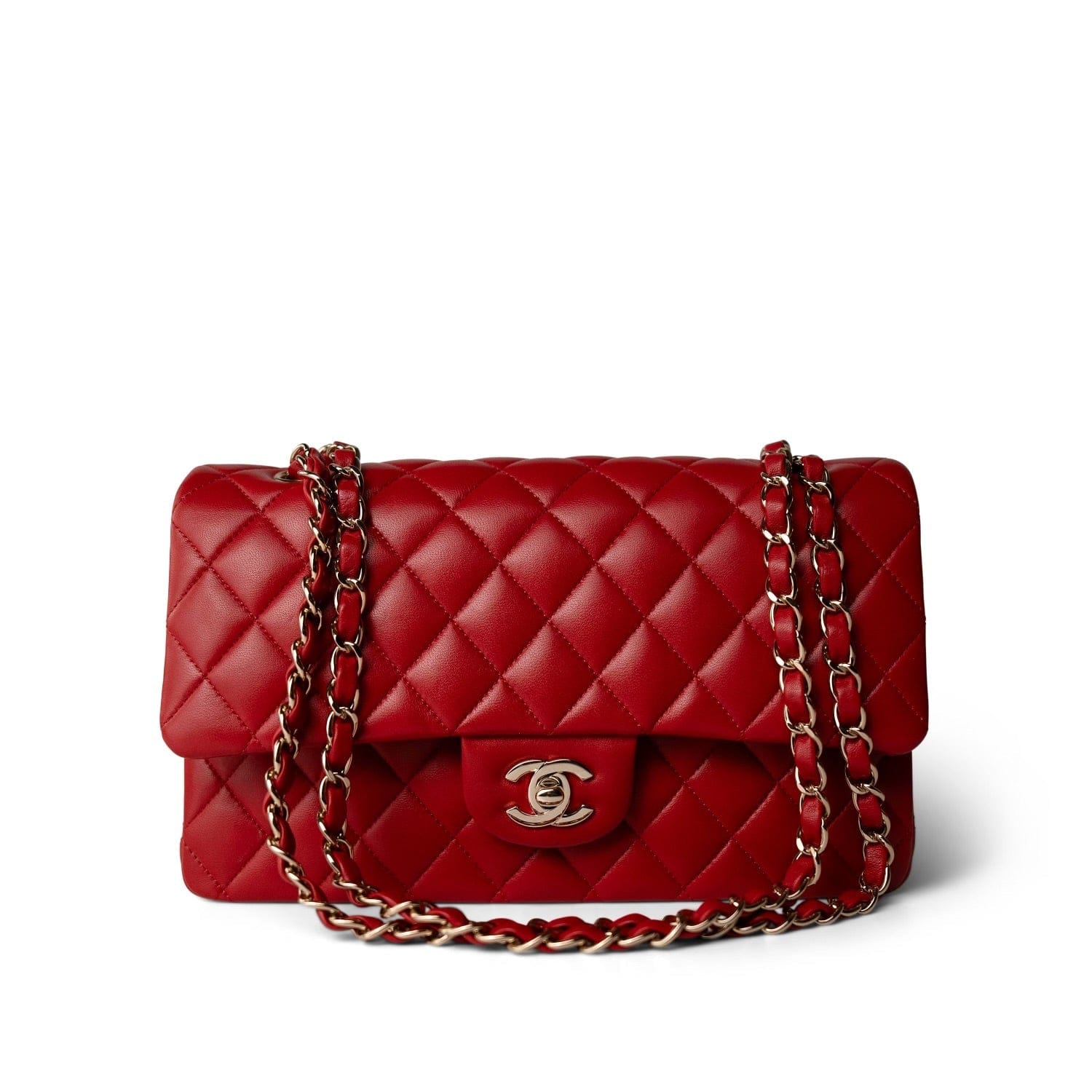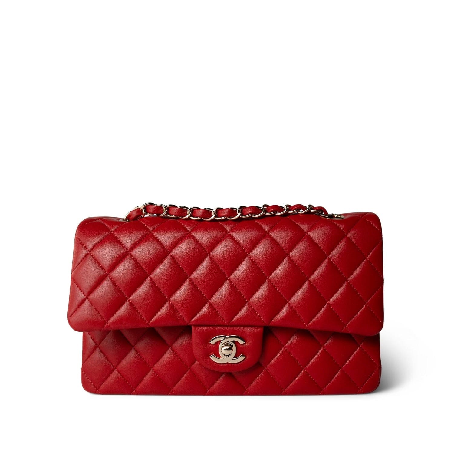 20S Red Lambskin Quilted Classic Flap Medium LGHW