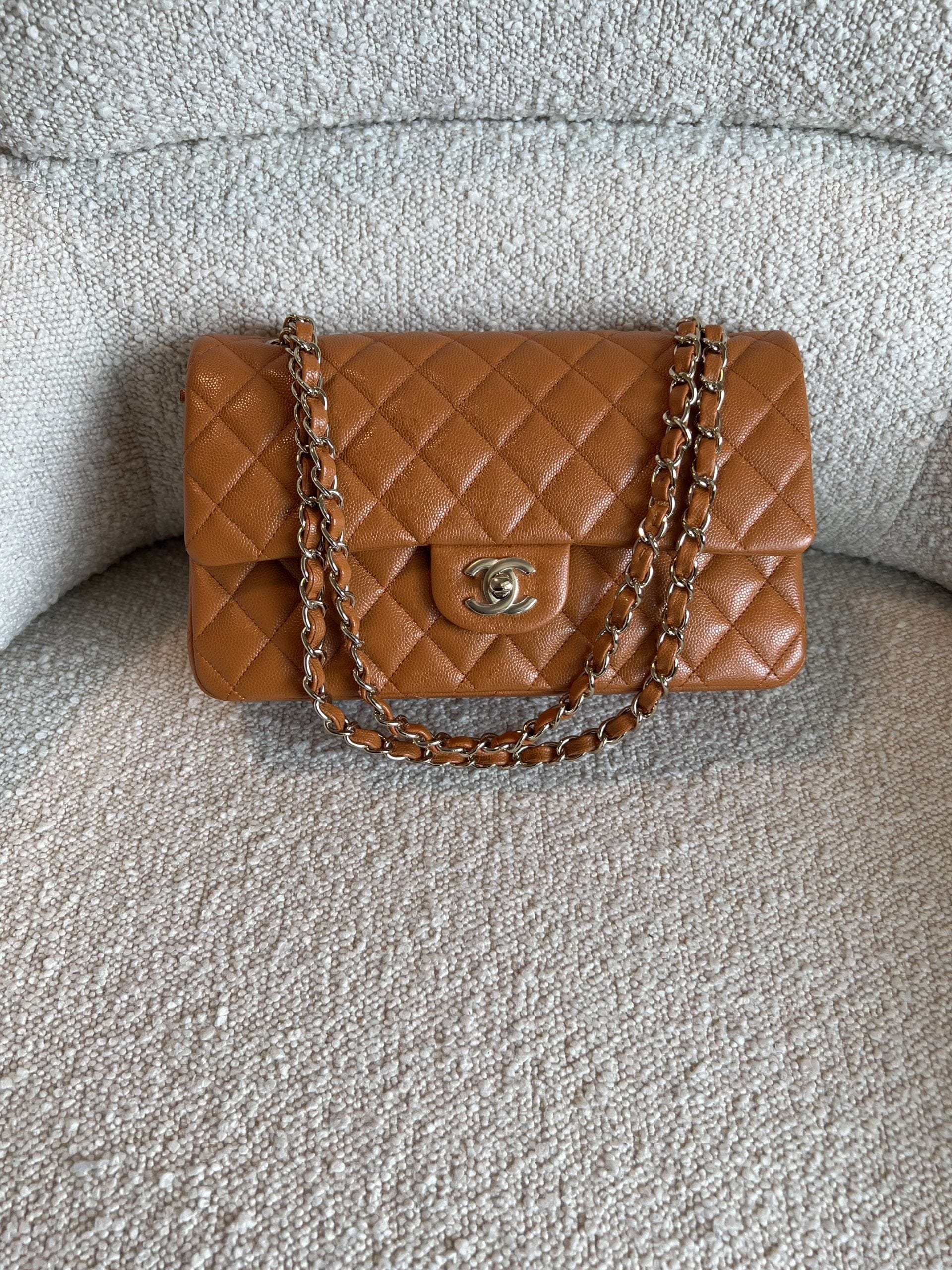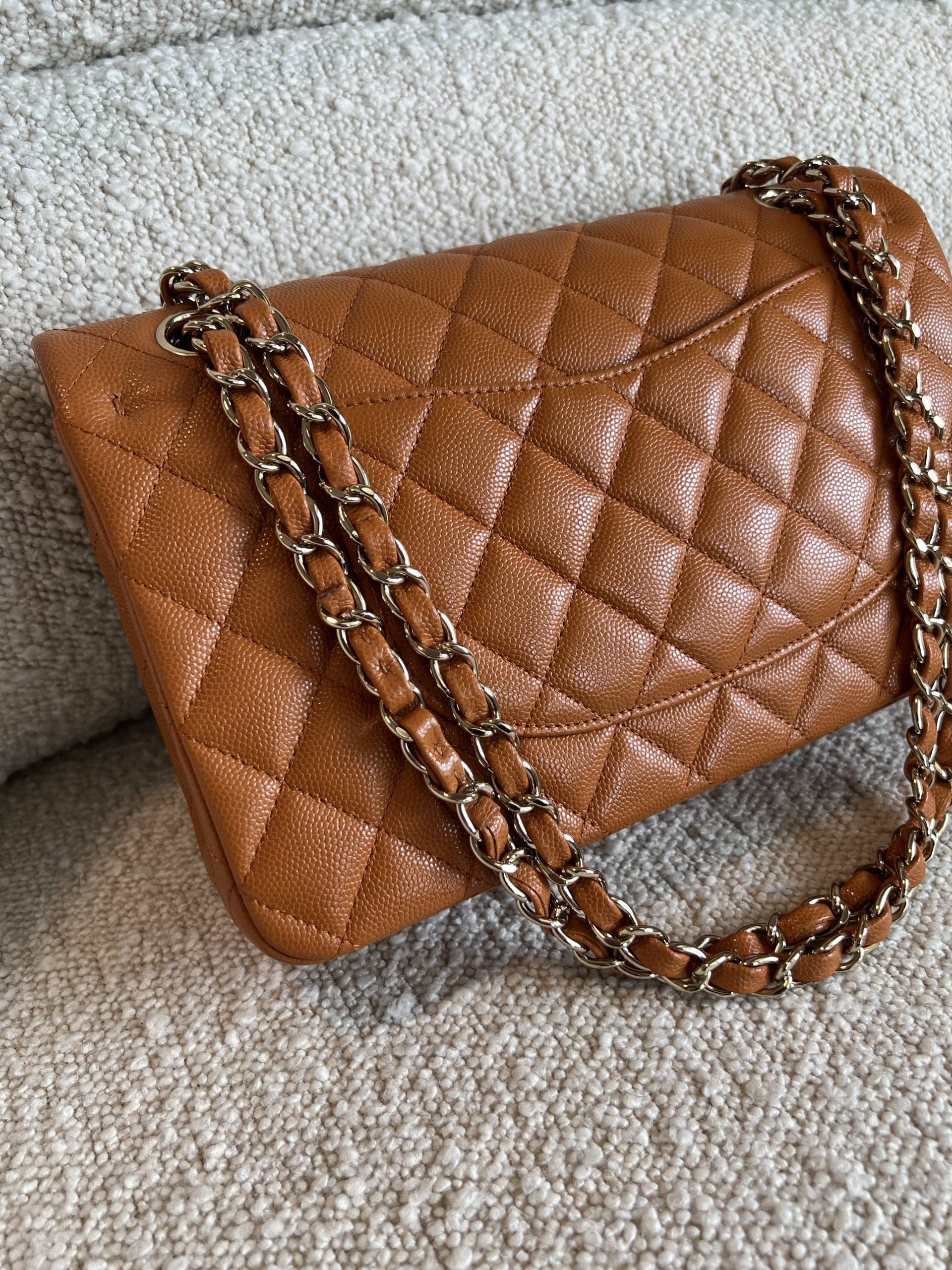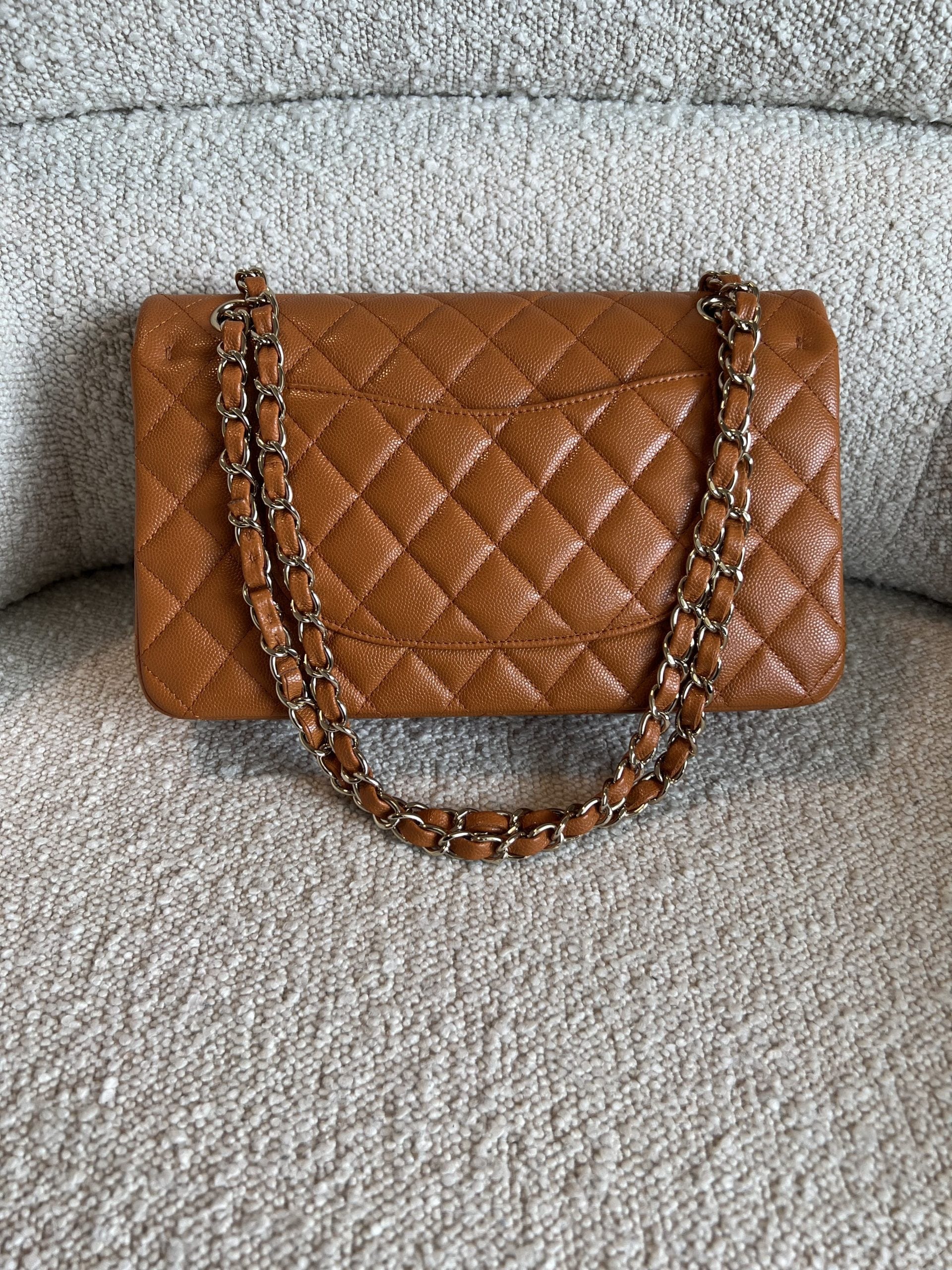21A Caramel / Light Brown Caviar Quilted Classic Flap Medium LGHW