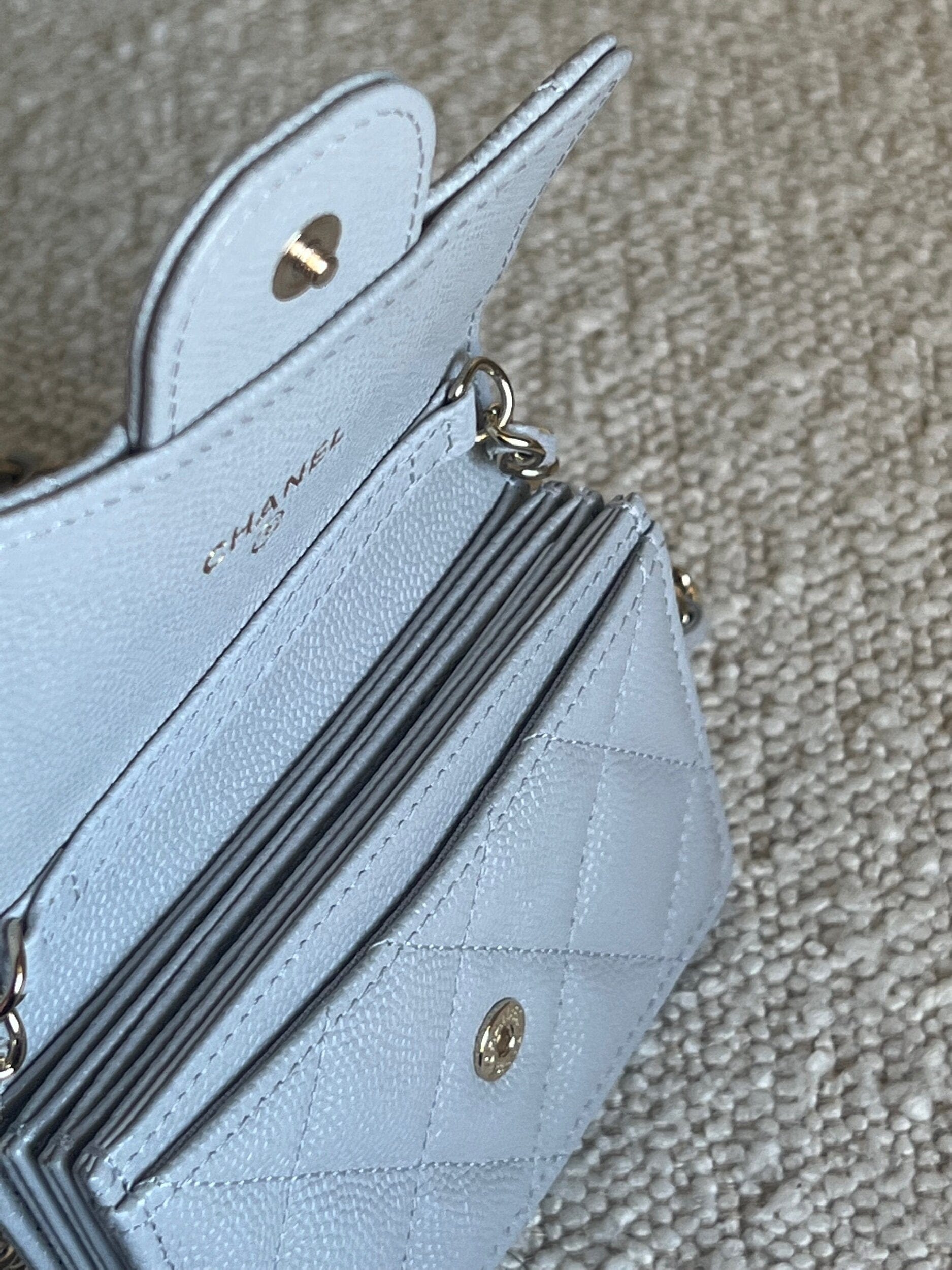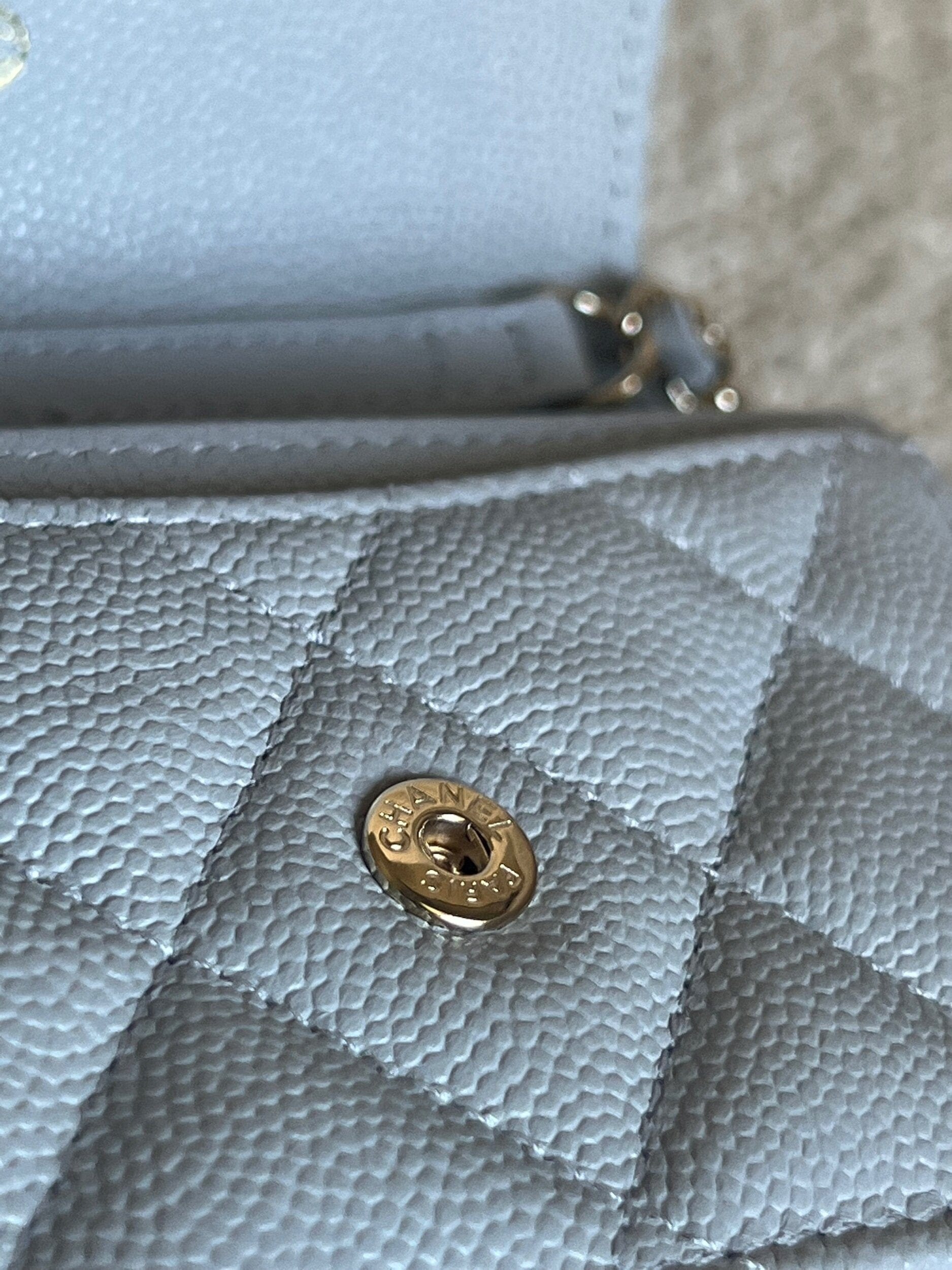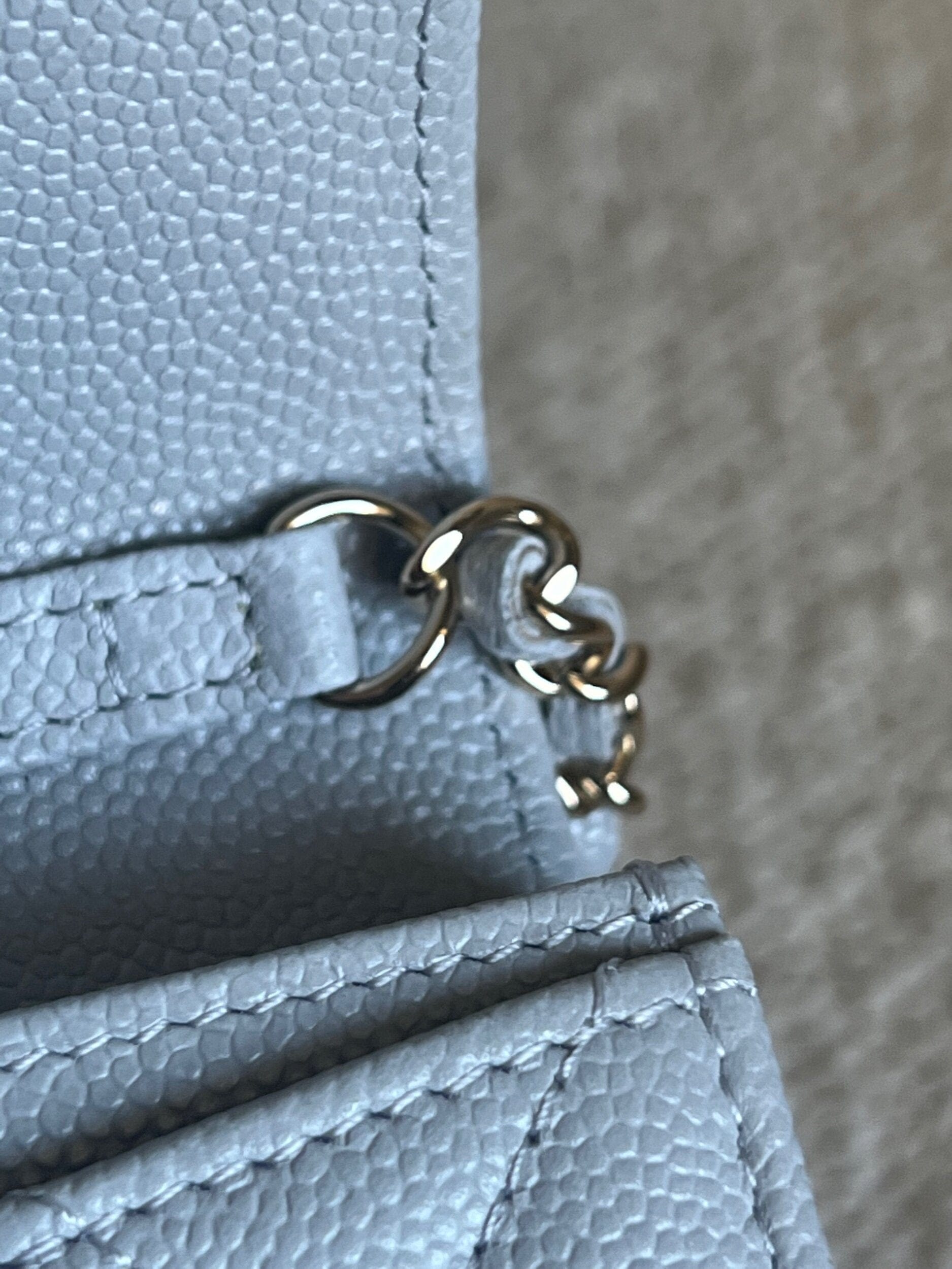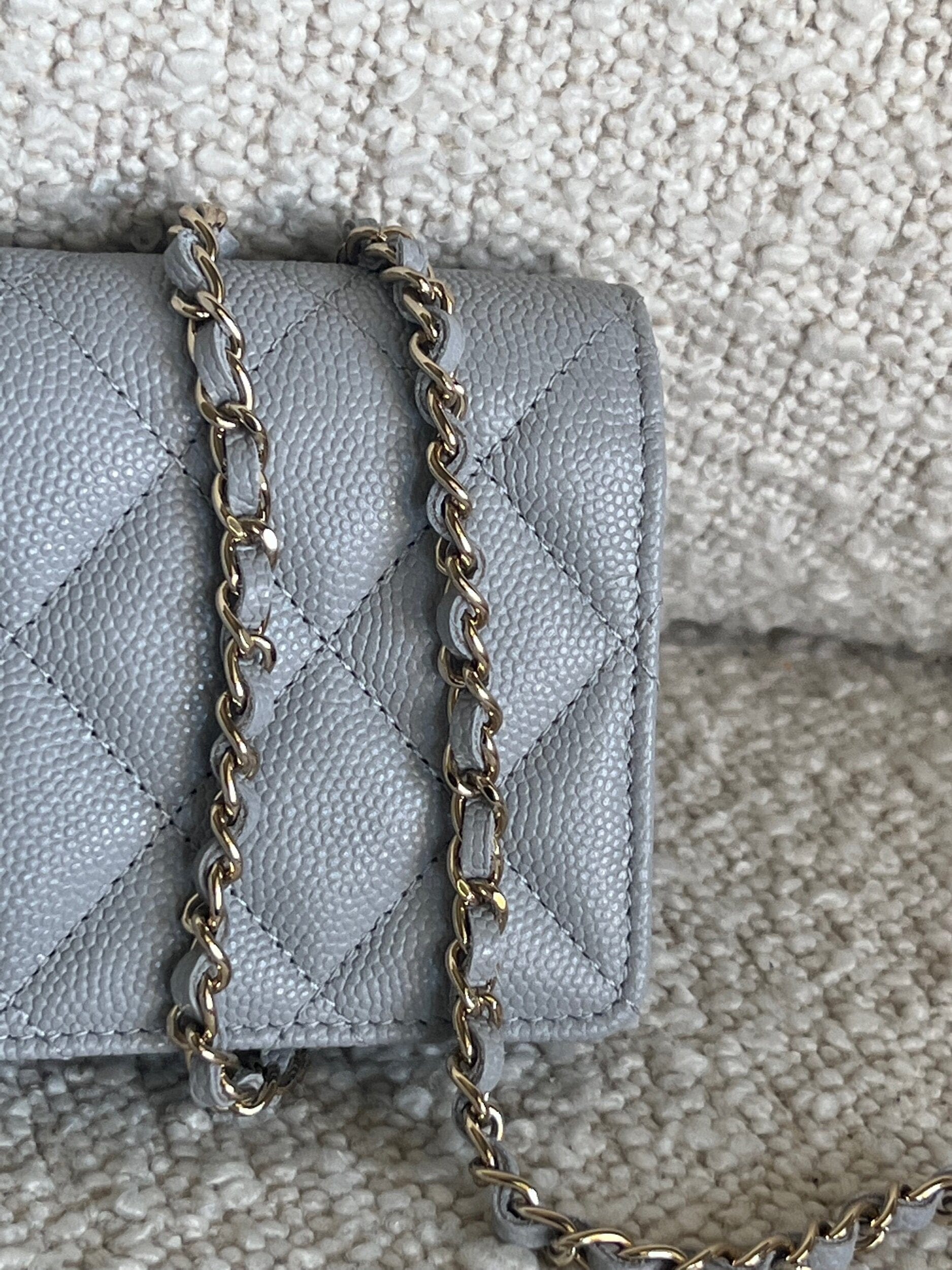 21A Caviar Quilted Flap Card Holder On Chain Grey