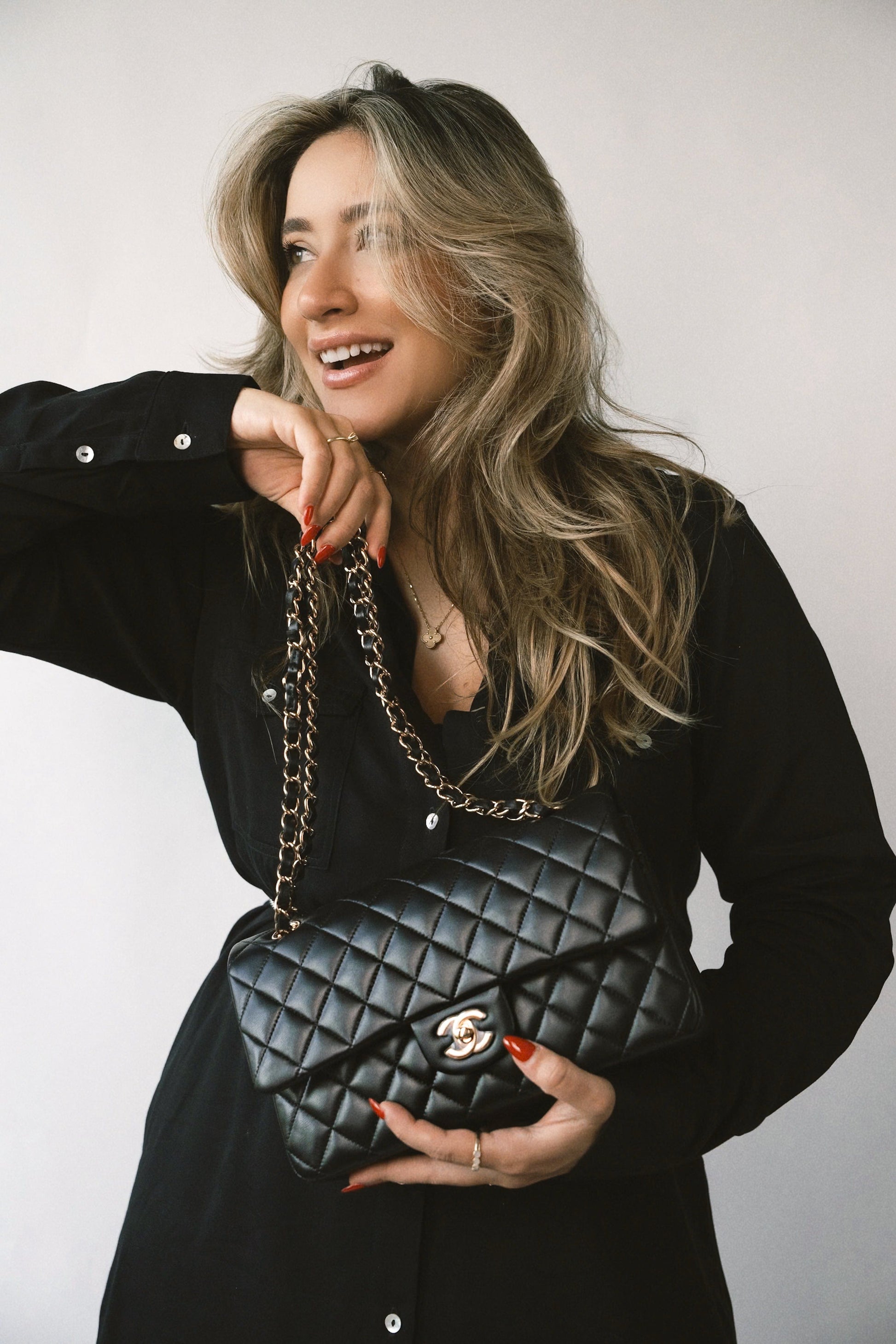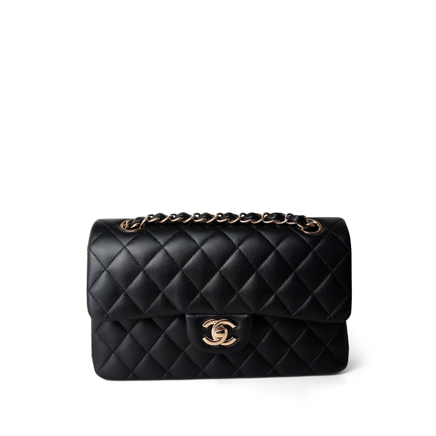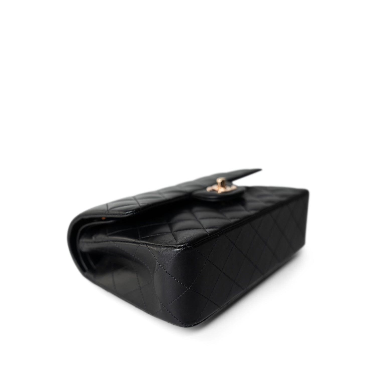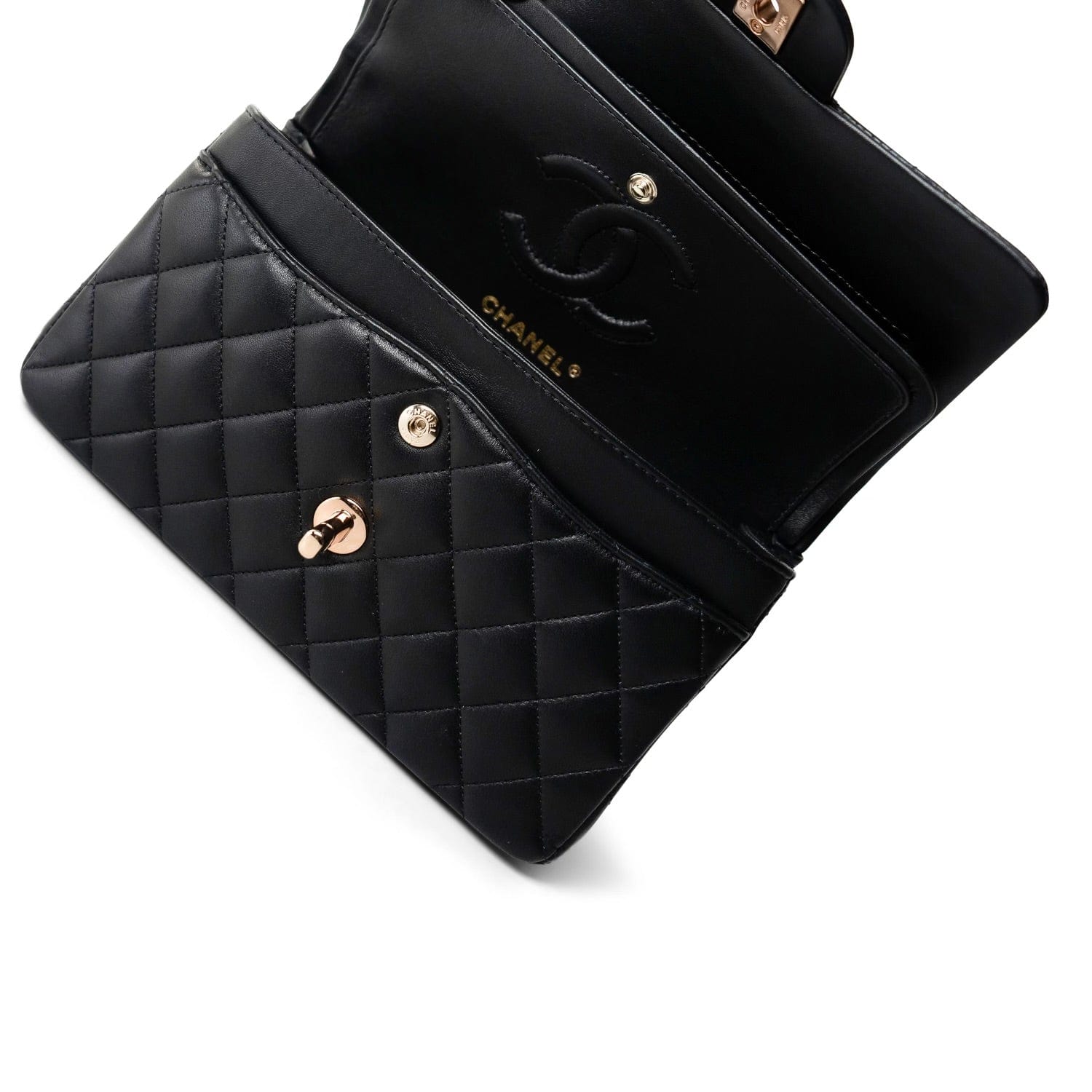 21B Black Lambskin Quilted Classic Flap Small Rose Gold Hardware
