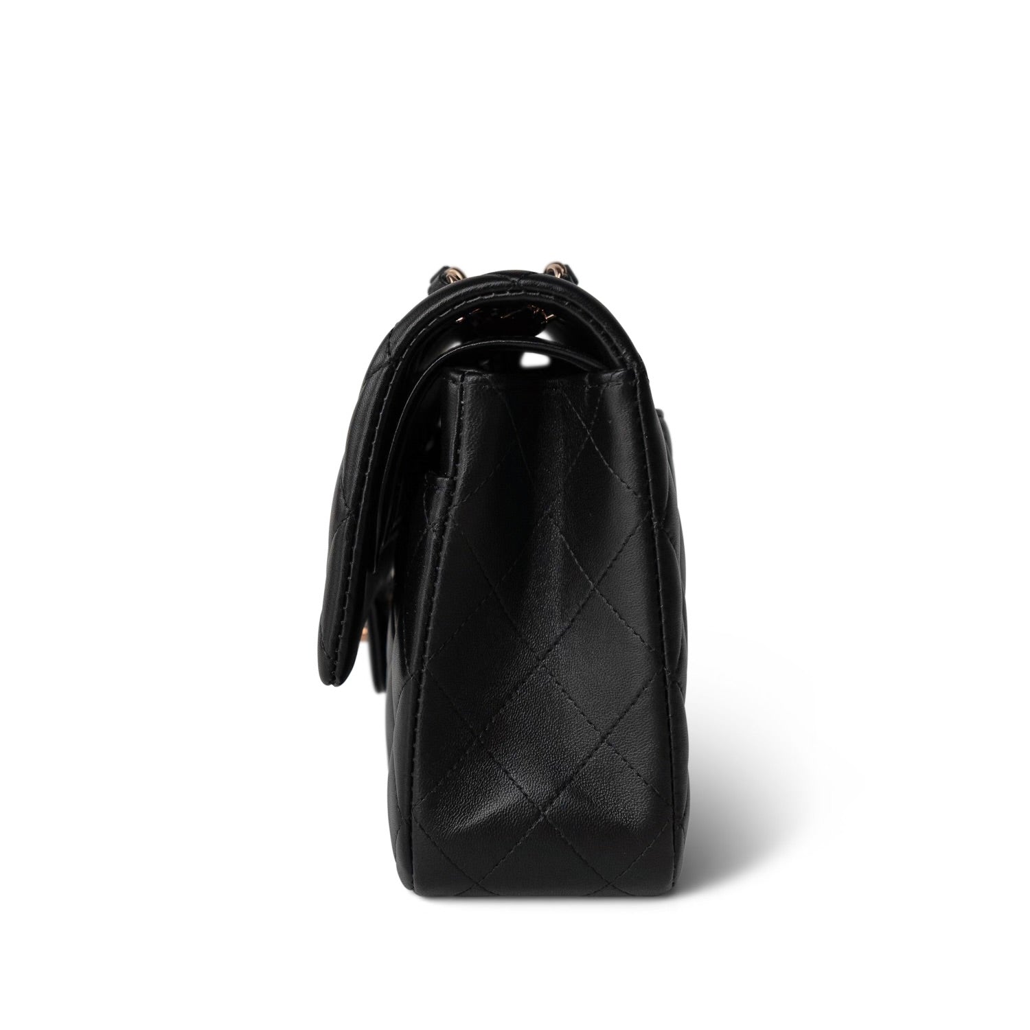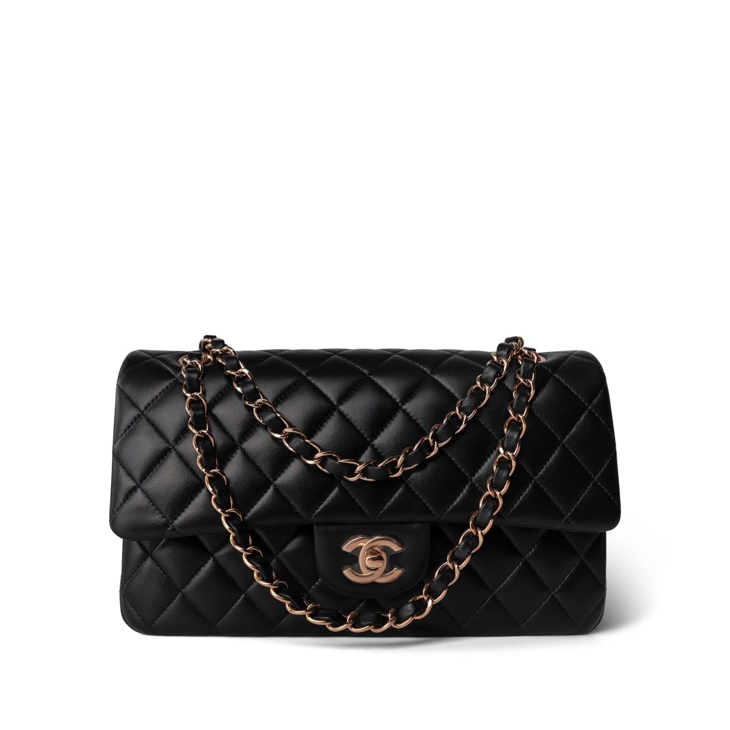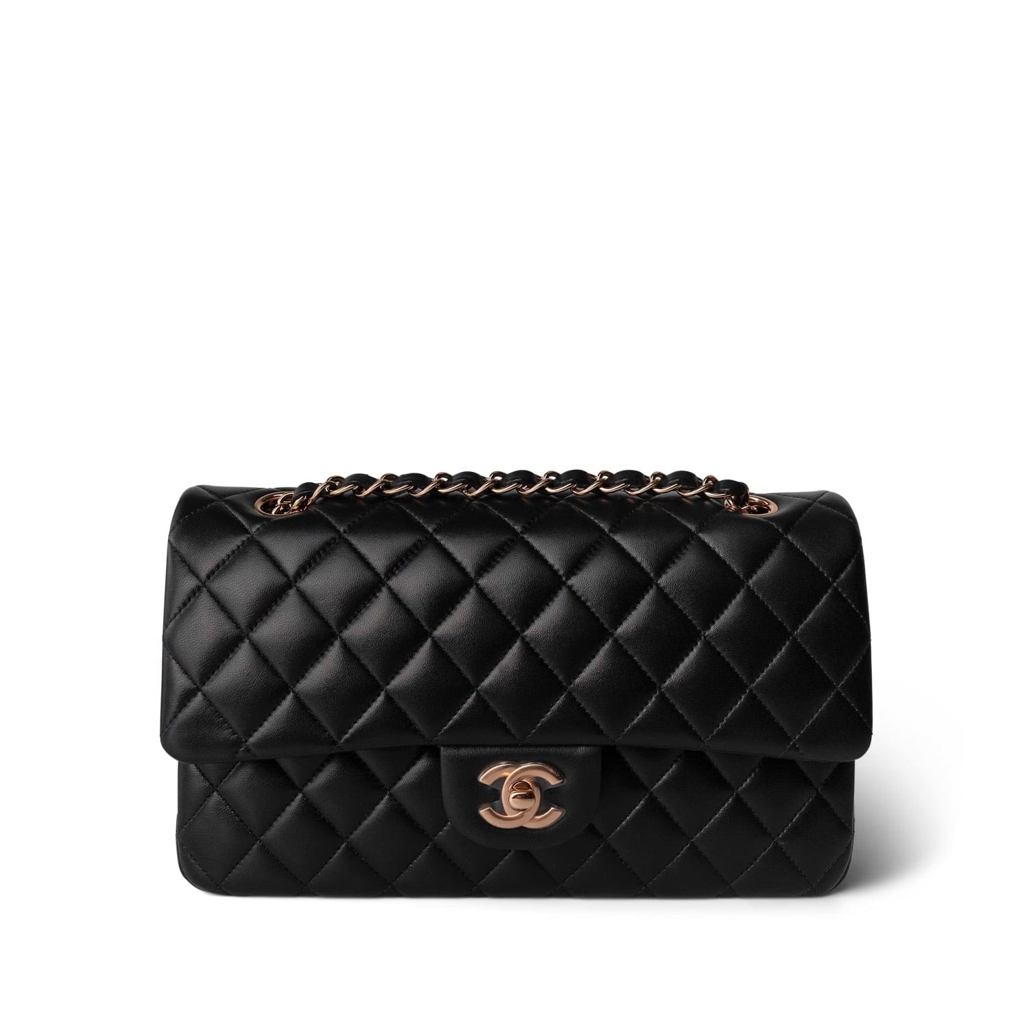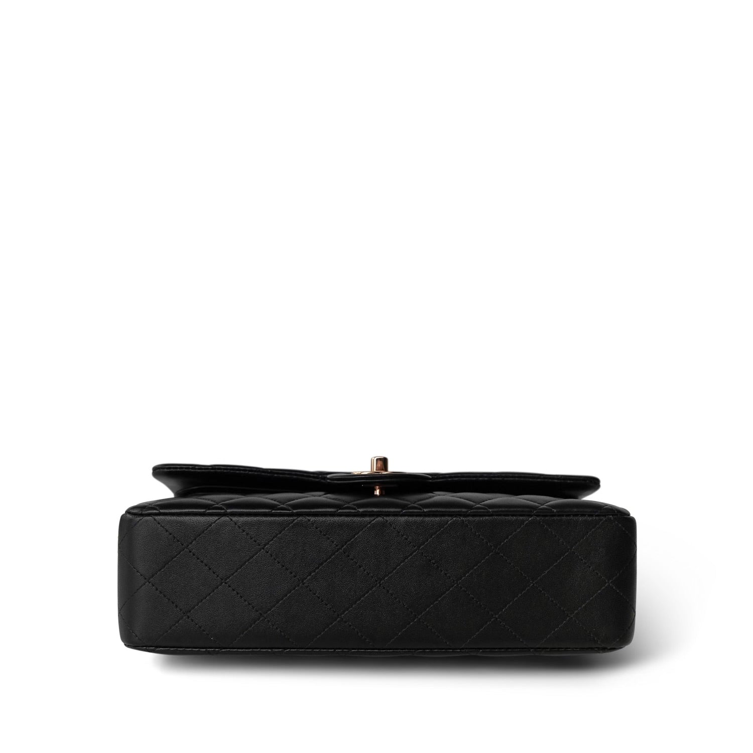 21B Black Lambskin Quilted Classic Flap Medium Rose Gold Hardware