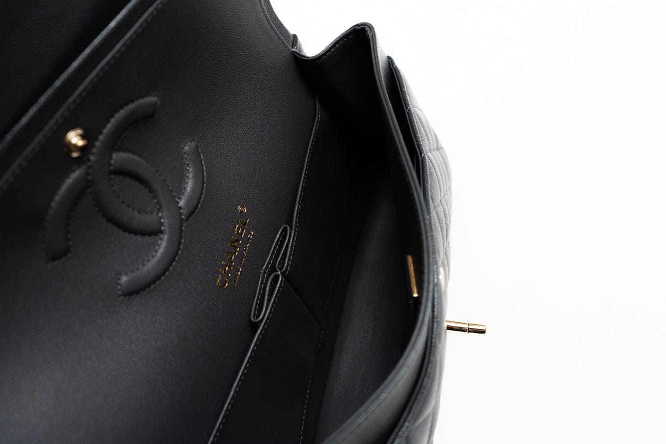 21B Grey Caviar Quilted Classic Flap Medium Light Gold Hardware
