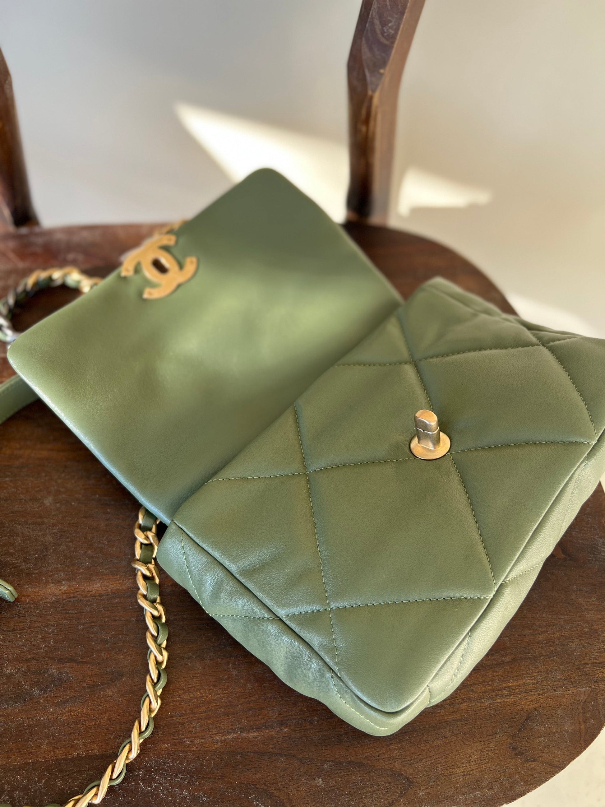 21B Military Green Lambskin Quilted 19 Flap Small Mixed Hardware