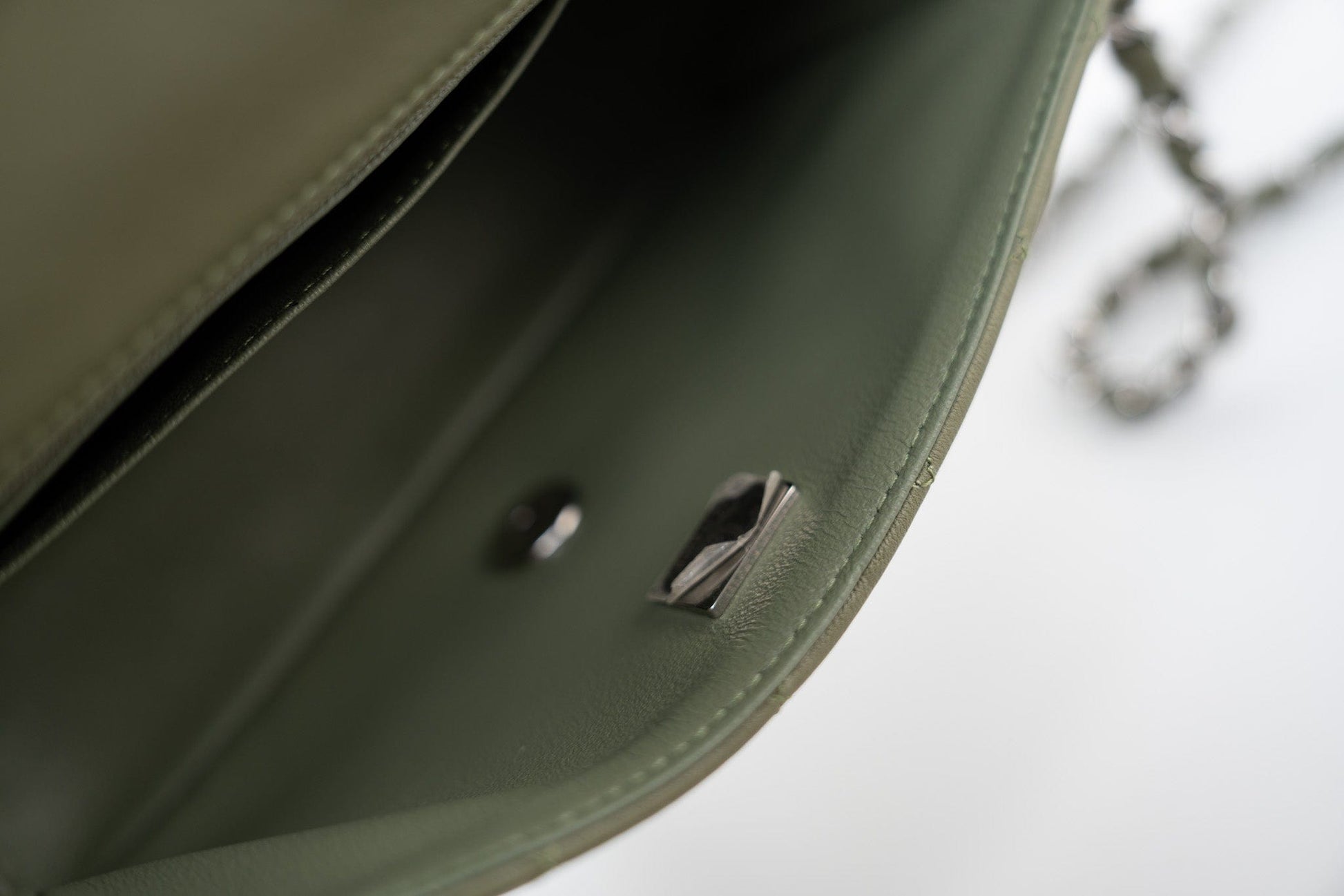 21B Military Green Lambskin Quilted Mini Rectangular Single Silver Hardware