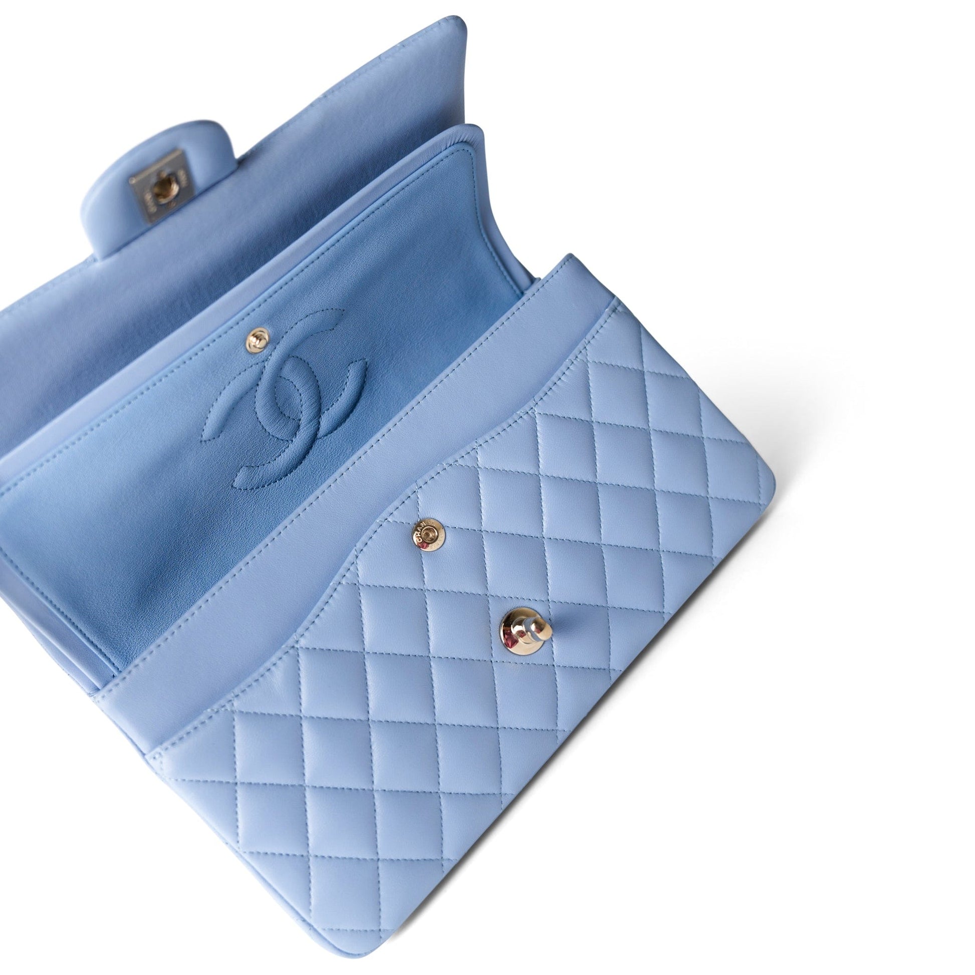21C Sky Blue Lambskin Quilted Classic Flap Light Gold Hardware