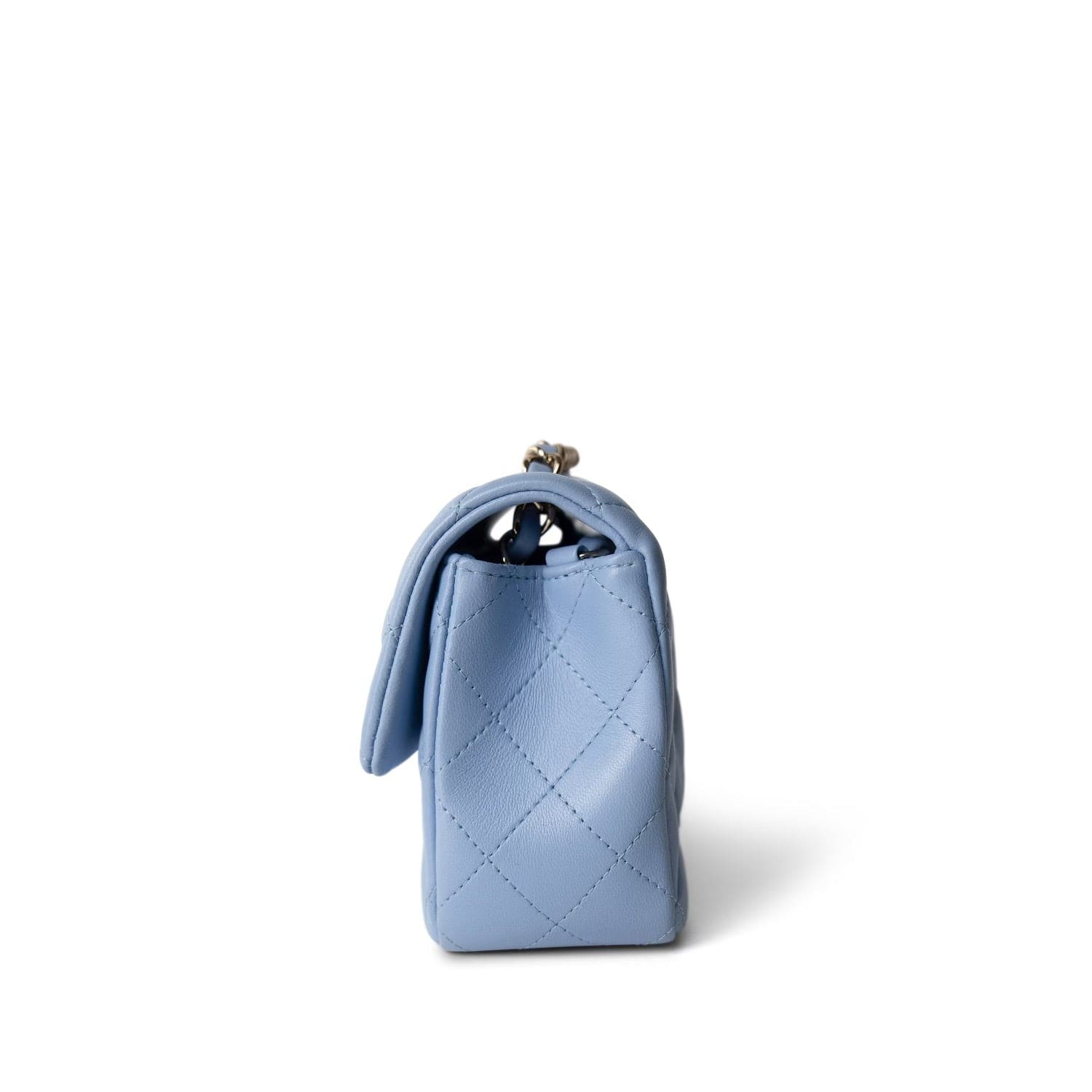 21C Sky Blue Lambskin Quilted Single Flap Mini Rectangular Light Gold Hardware