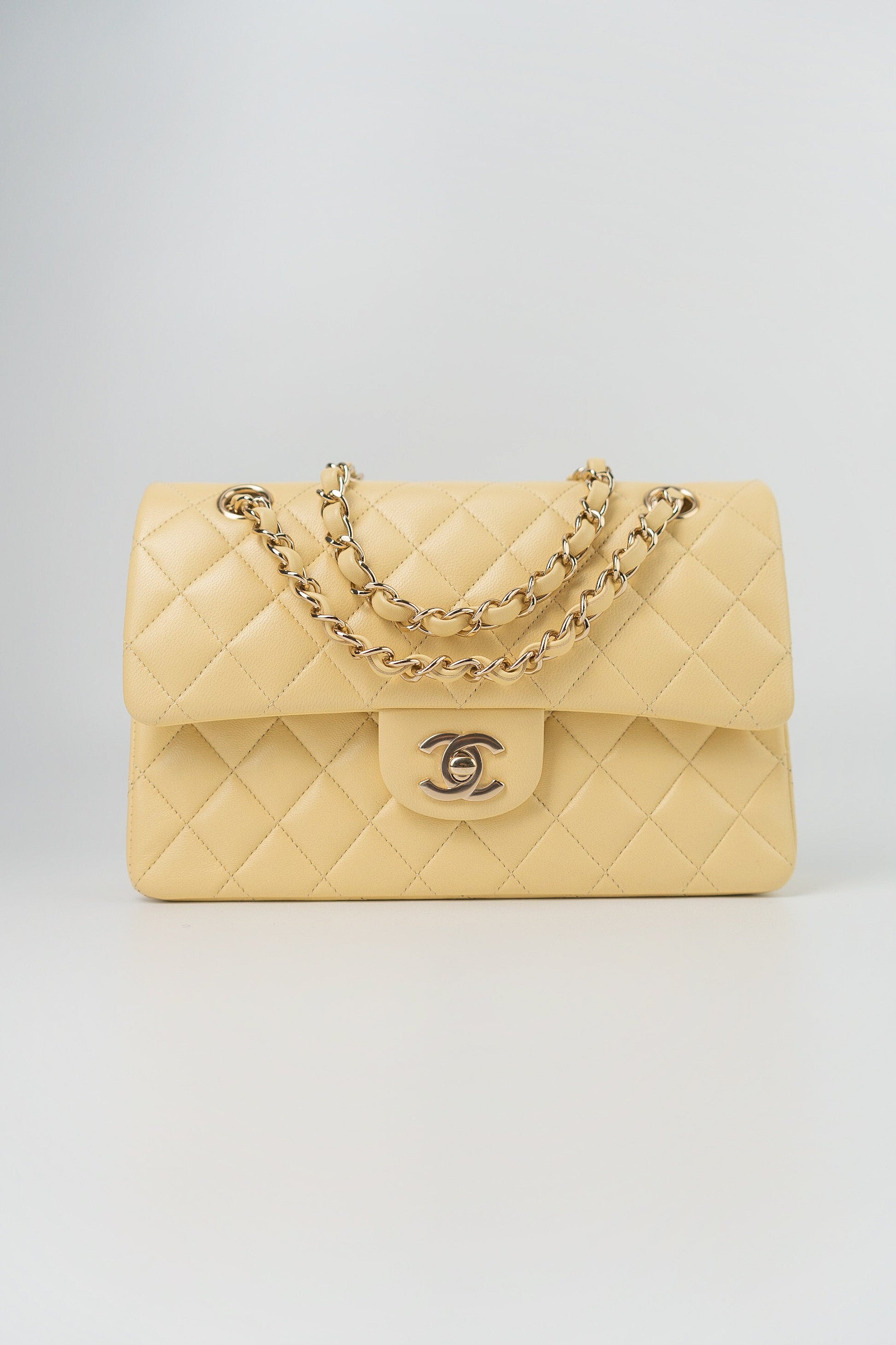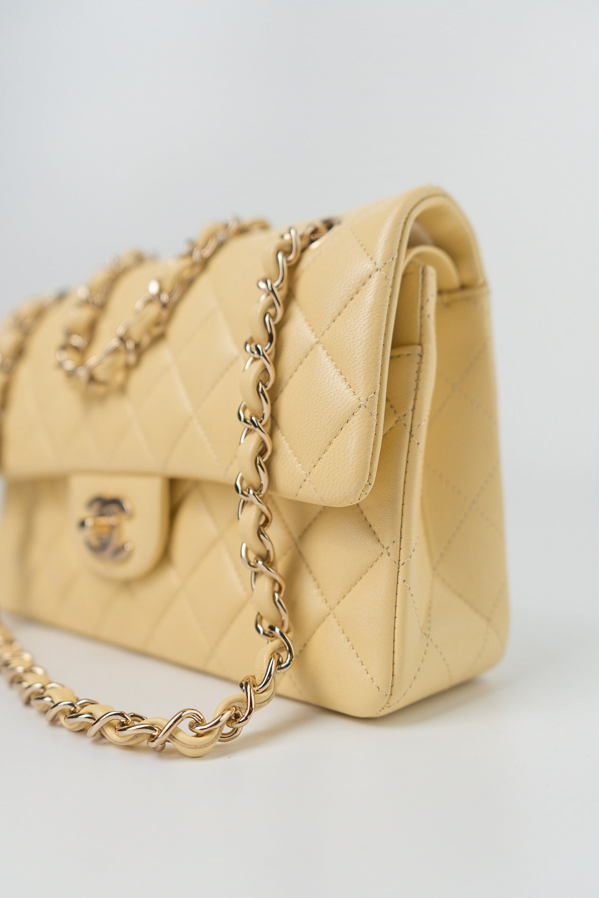 21C Yellow Lambskin Quilted Classic Flap Small Light Gold Hardware