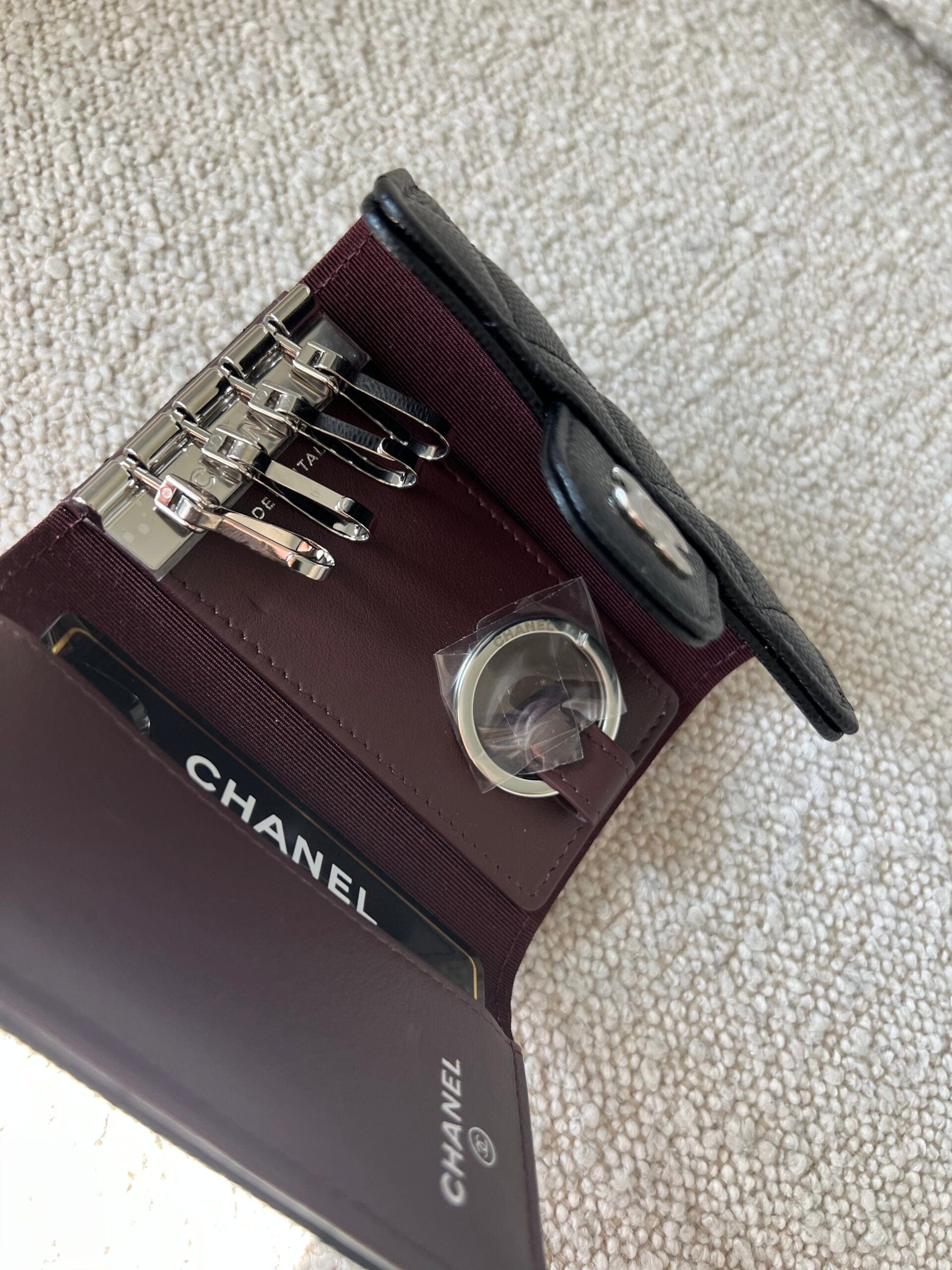 21K Black Caviar Quilted Key Holder Wallet Silver Hardware