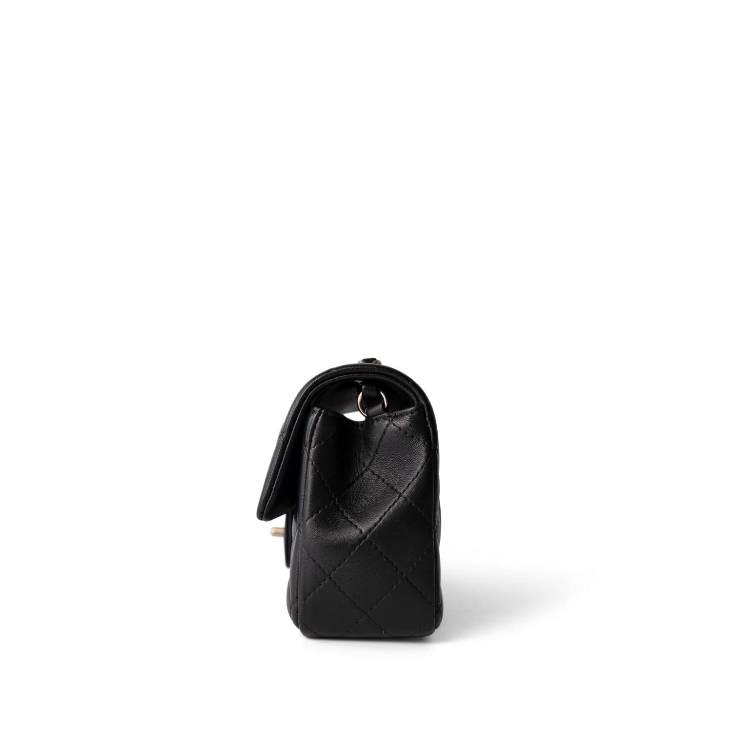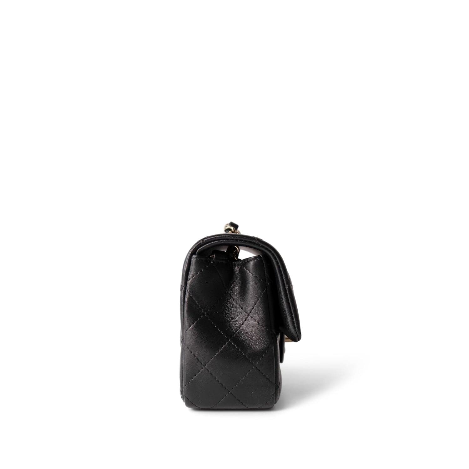 21K Black Lambskin Quilted Mini Rectangular Flap LGHW