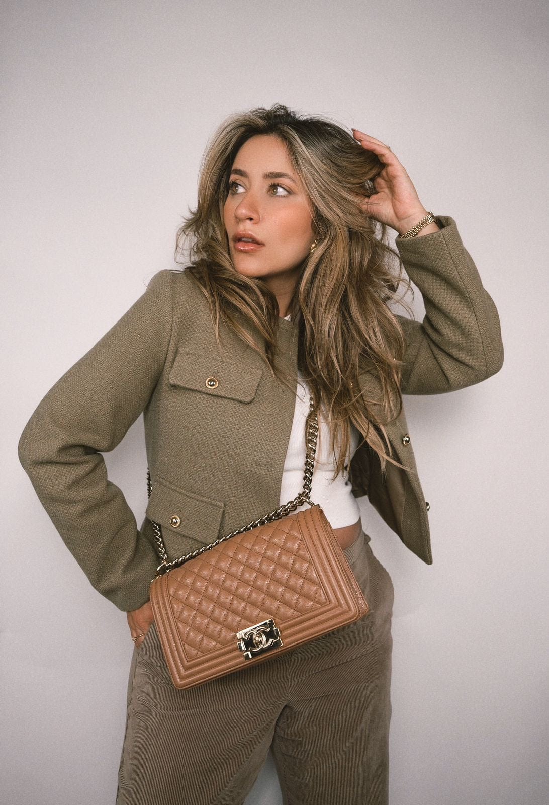21K Caramel Caviar Quilted Boy Bag Old Medium Light Gold Hardware