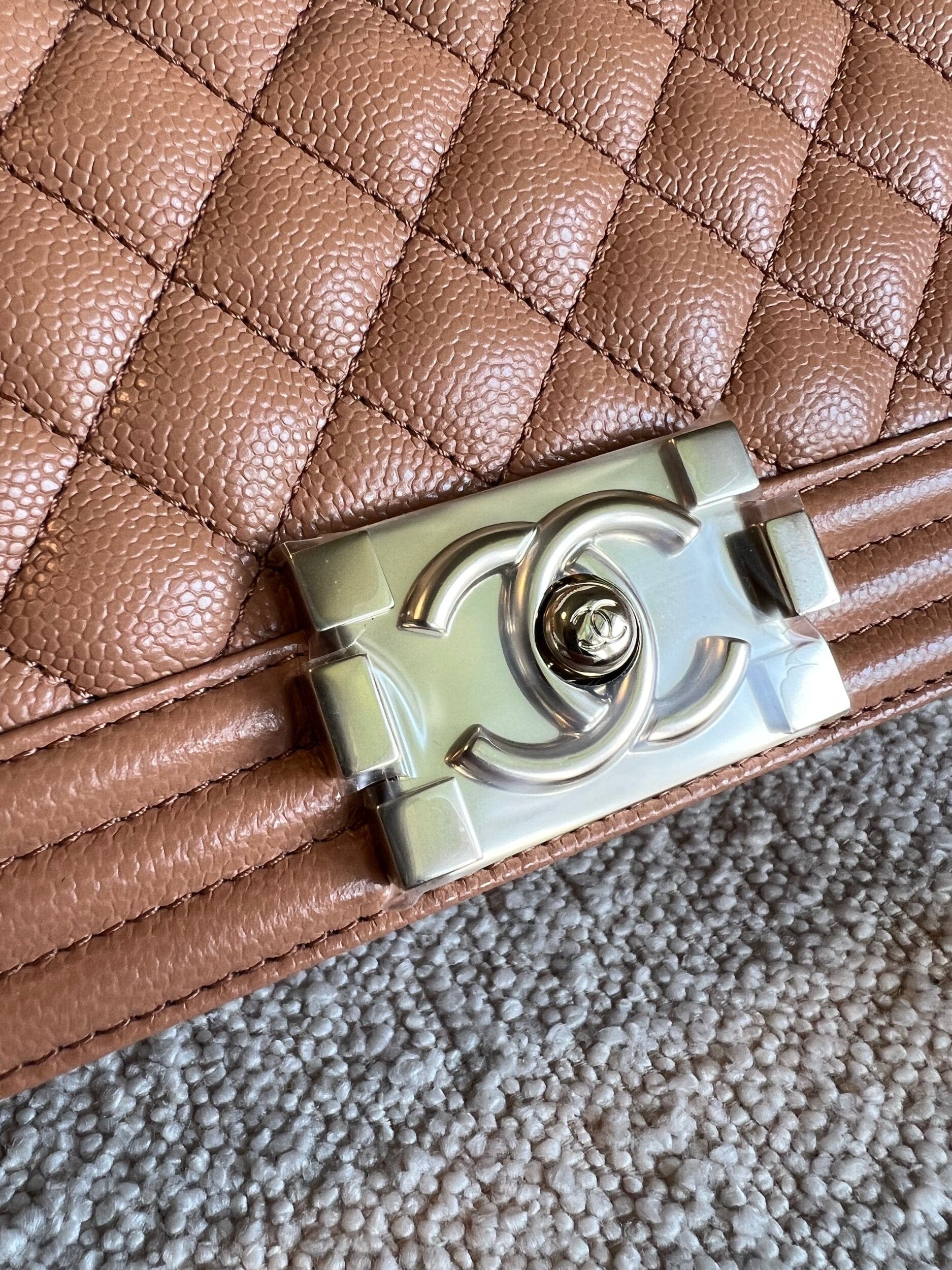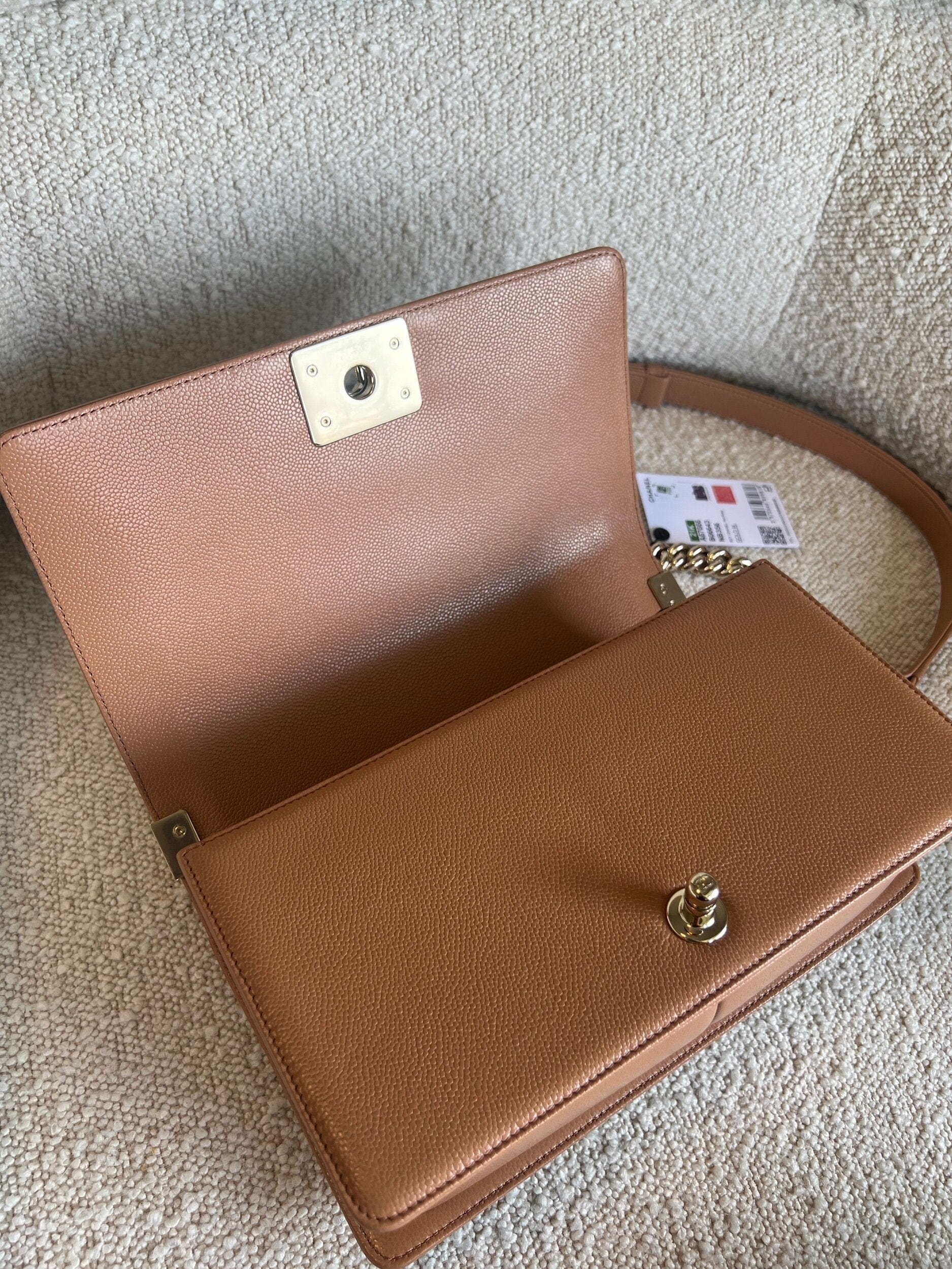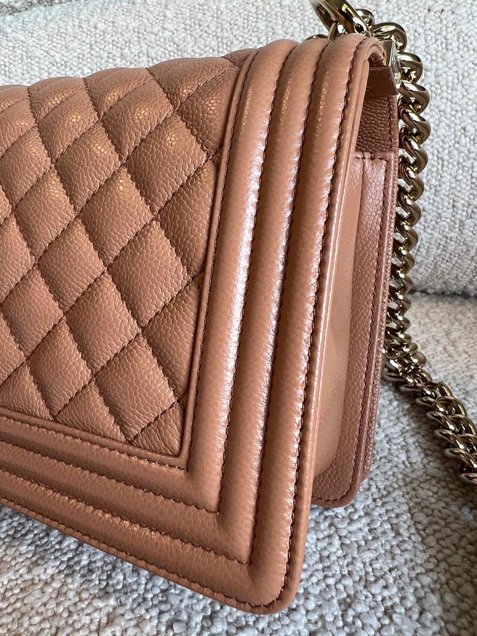 21K Caramel Caviar Quilted Old Medium Boy Bag LGHW