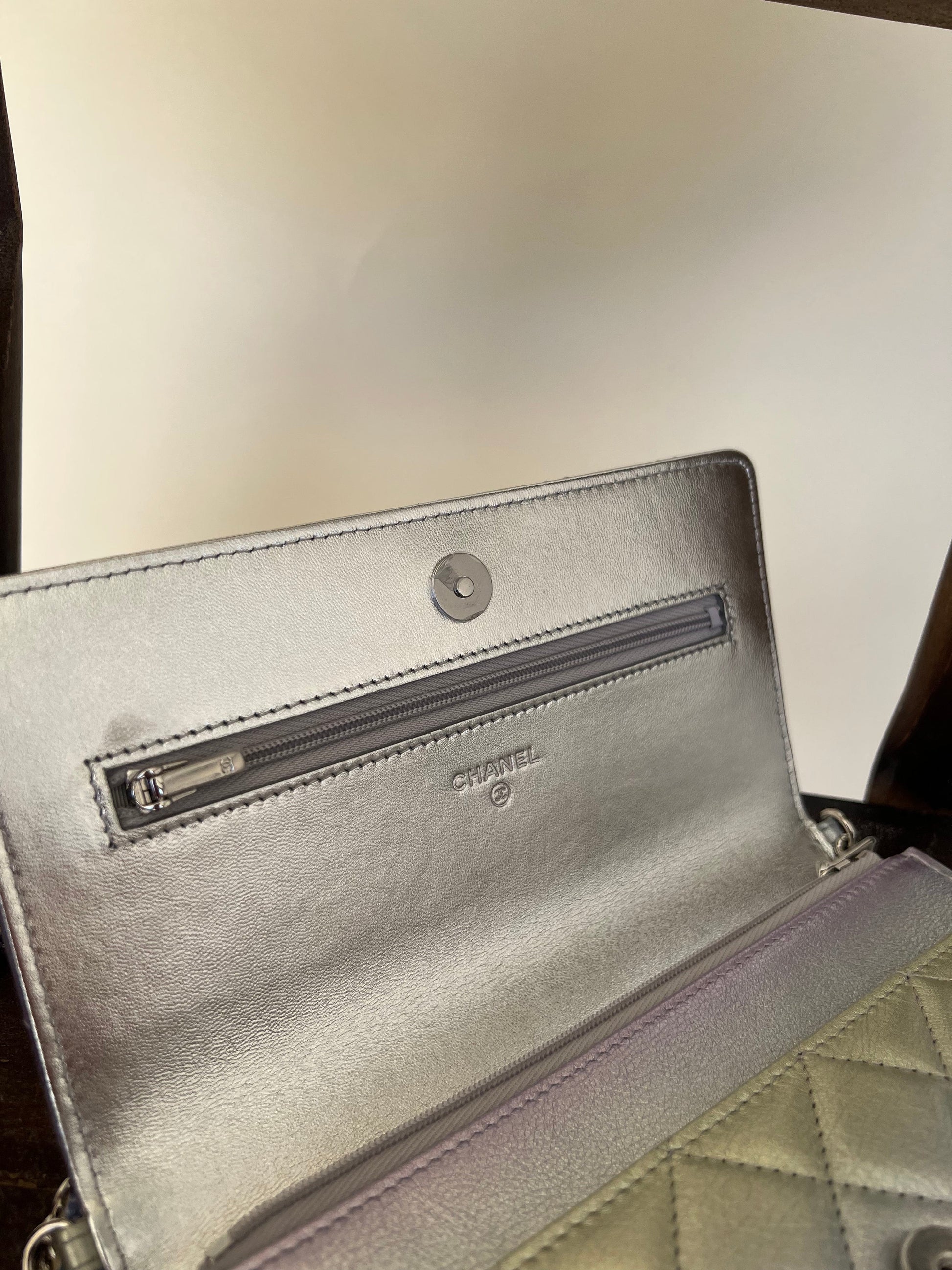 21K Gradient Metallic Rainbow Calfskin Quilted Wallet on Chain (WOC)