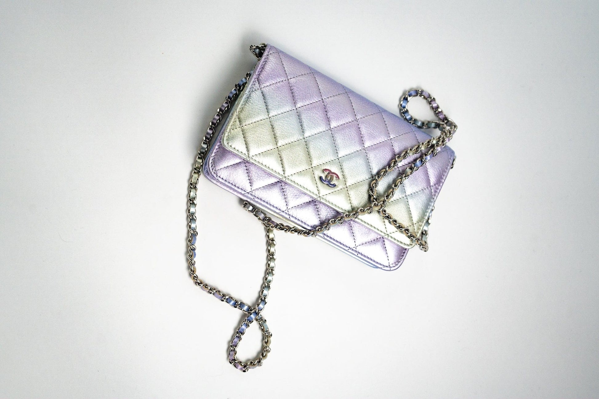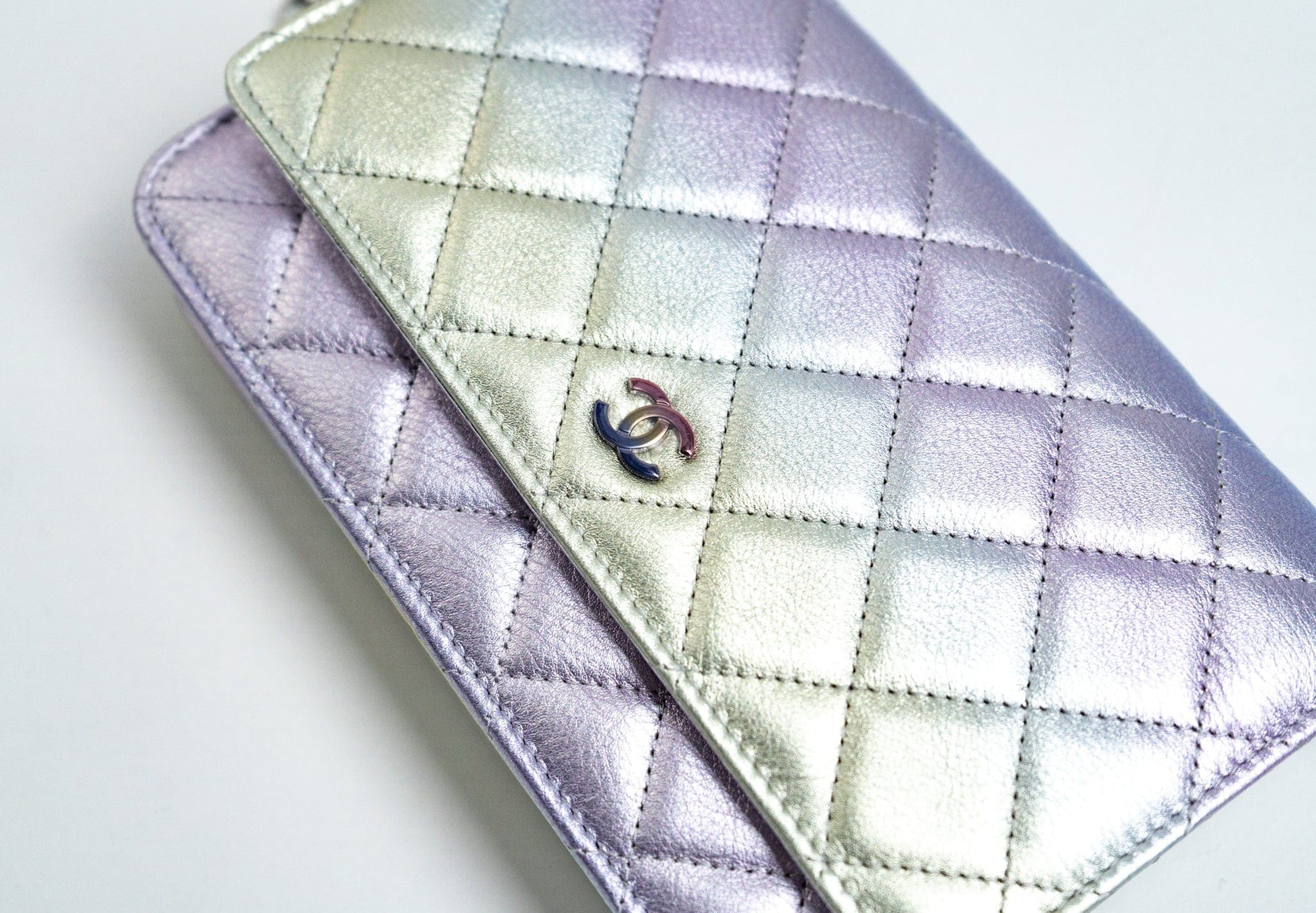 21K Gradient Metallic Rainbow Calfskin Quilted Wallet on Chain (WOC)