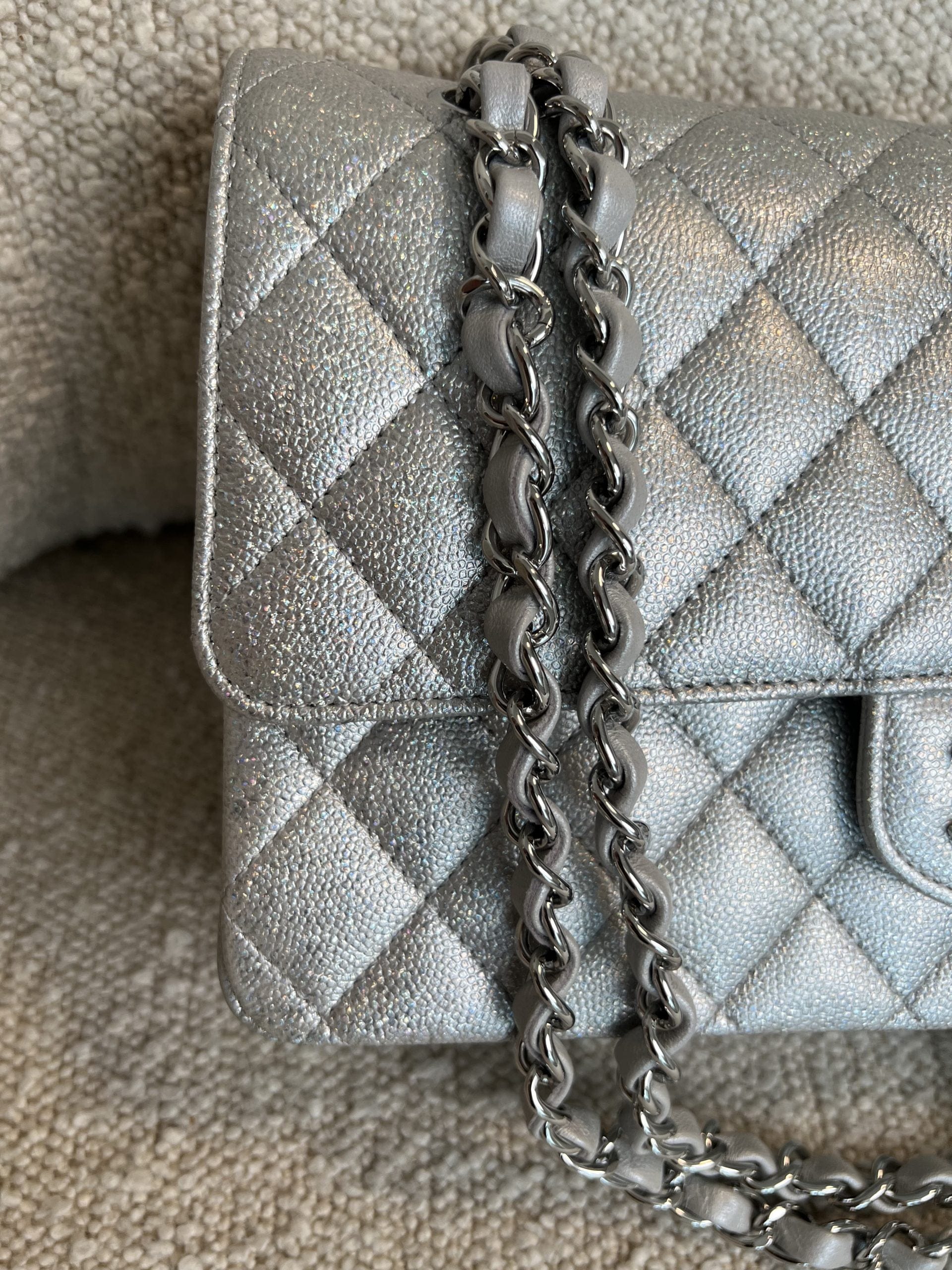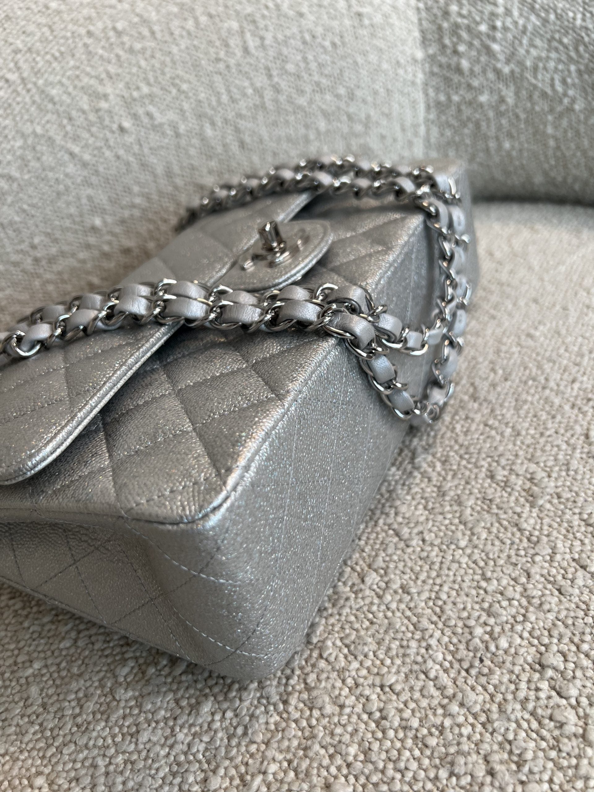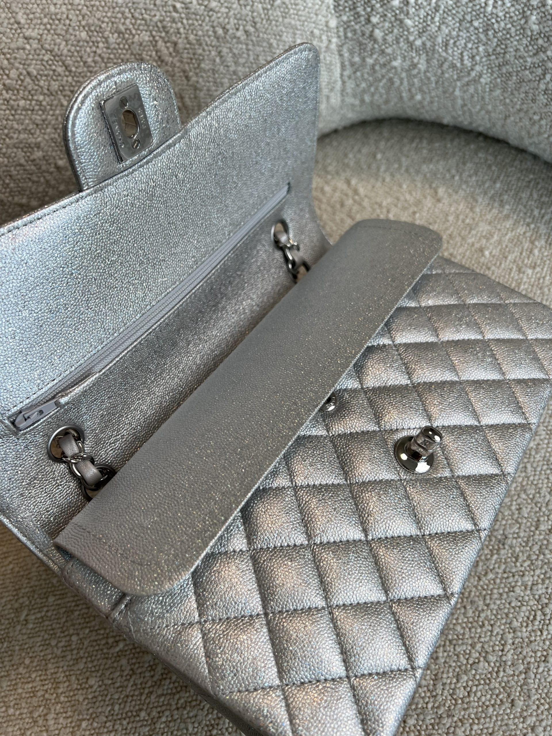 21K Silver Metallic Caviar Quilted Medium Classic Flap SHW