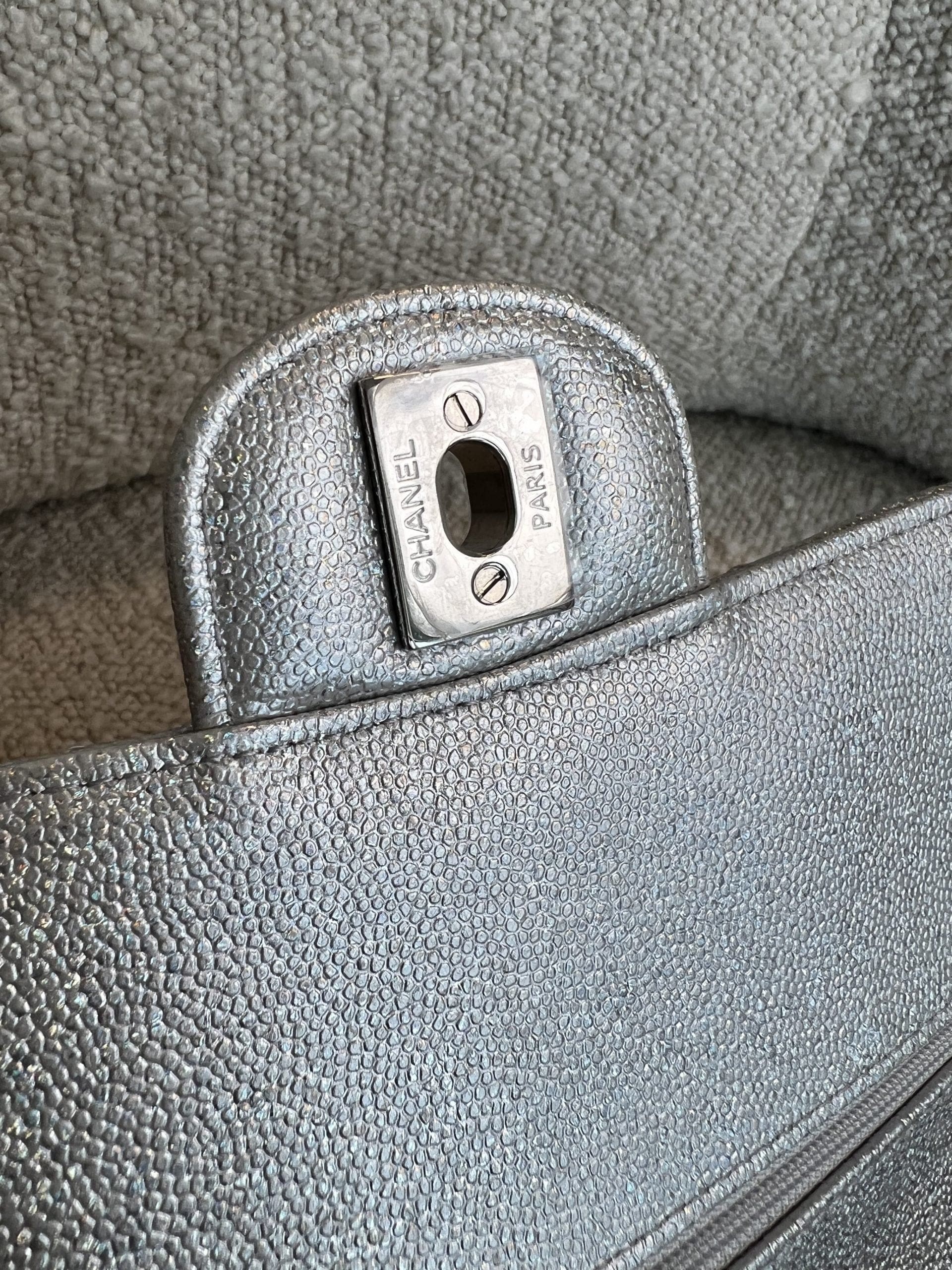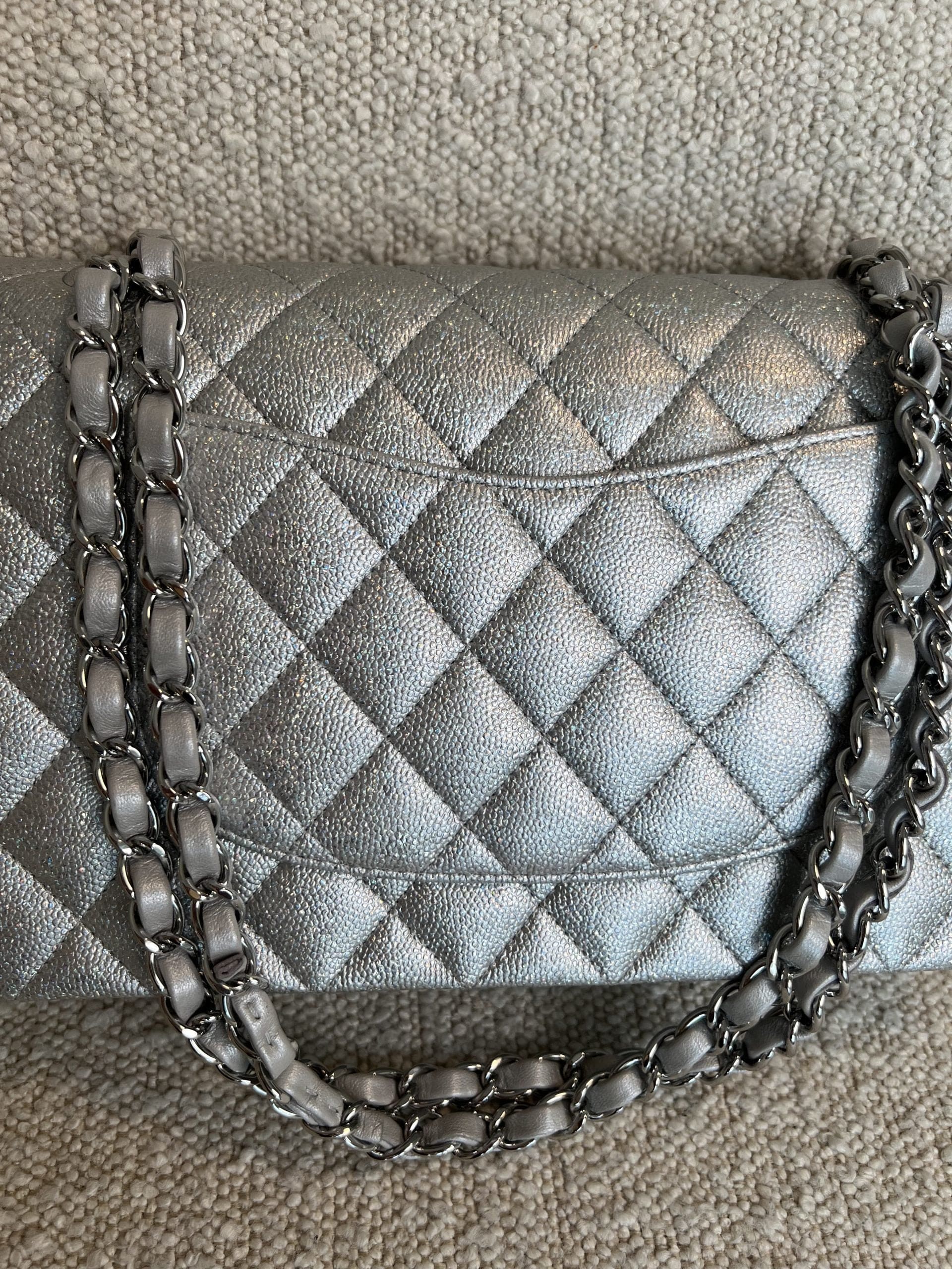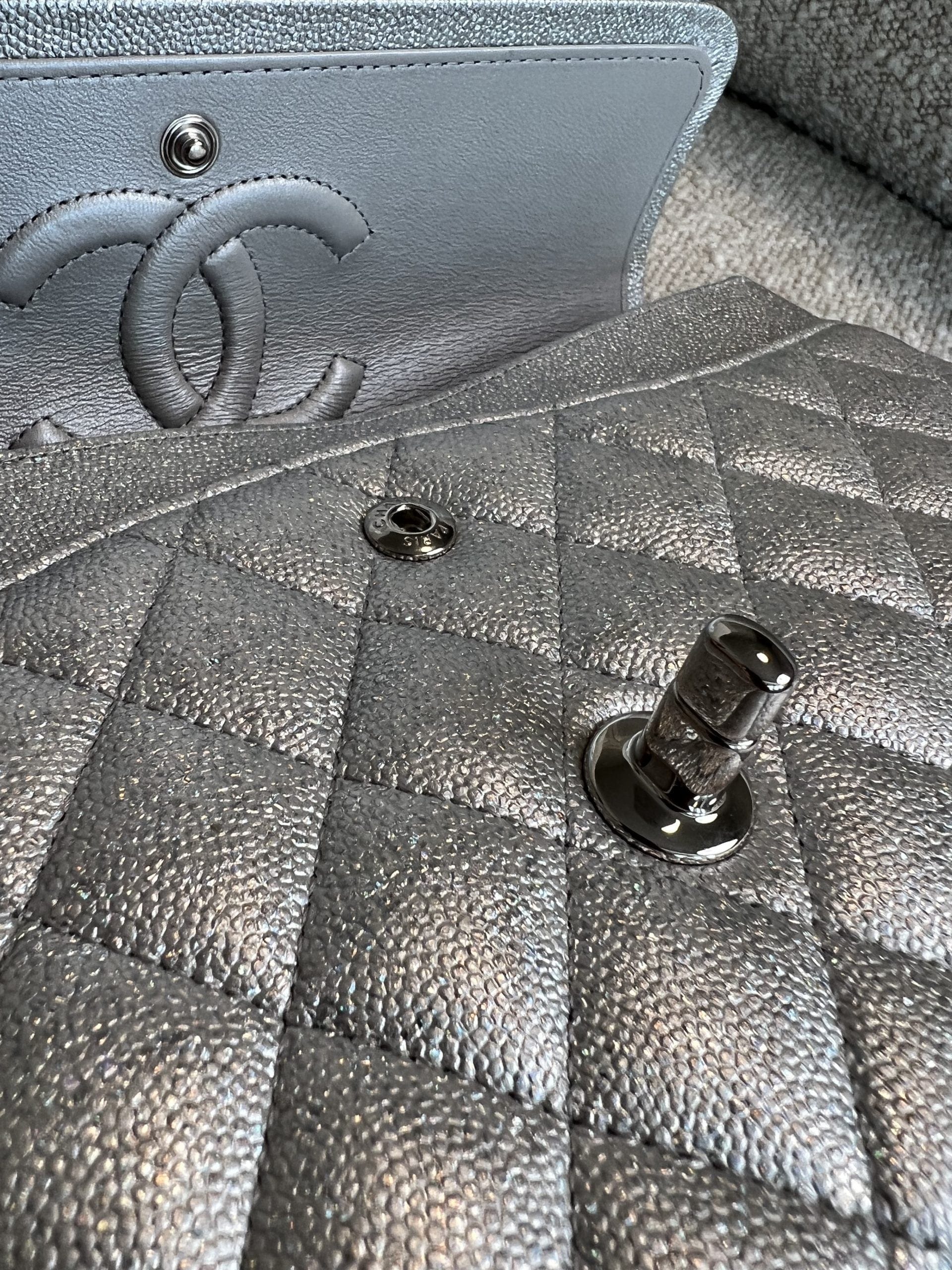 21K Silver Metallic Caviar Quilted Medium Classic Flap SHW