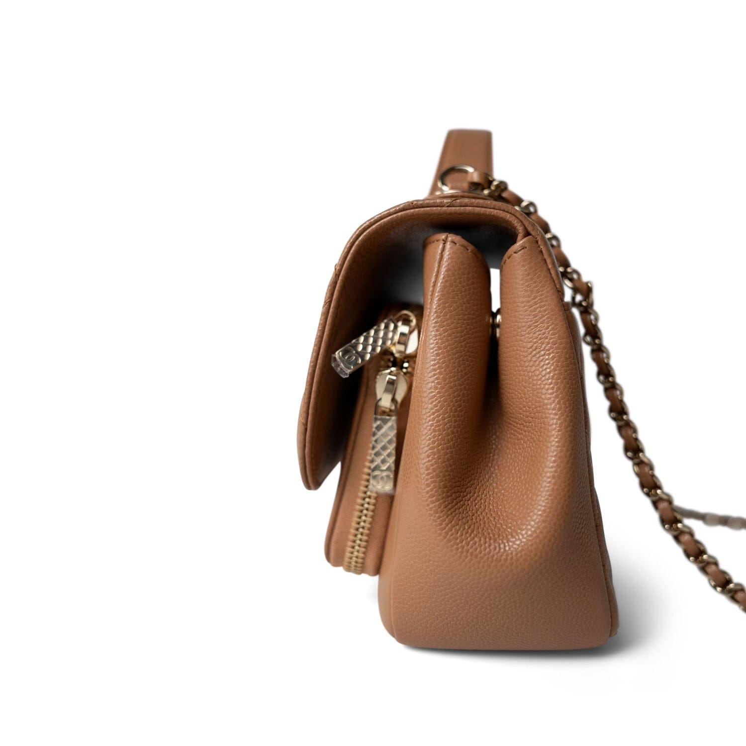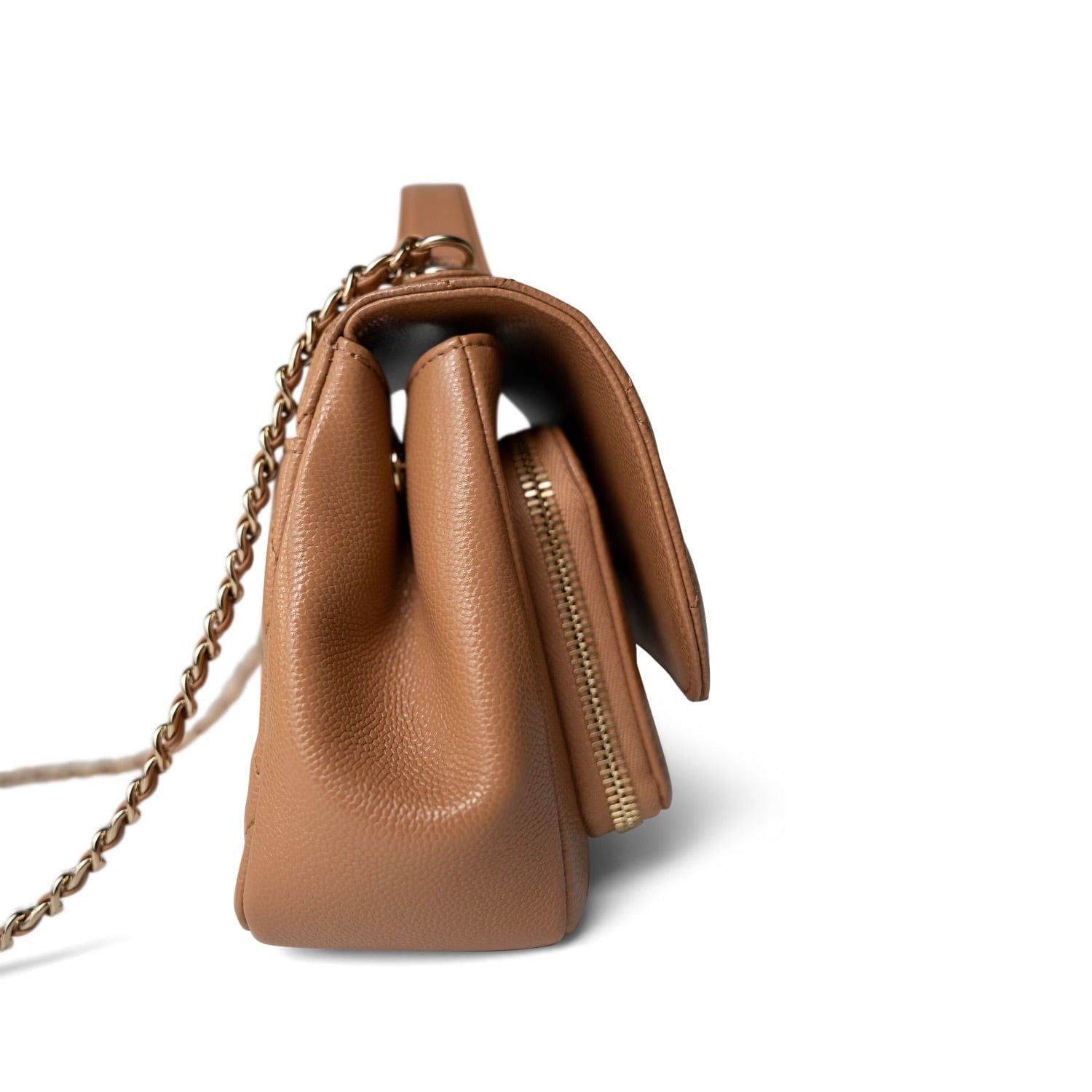 21P Caramel Beige Caviar Quilted Business Affinity Small Flap Light Gold Hardware