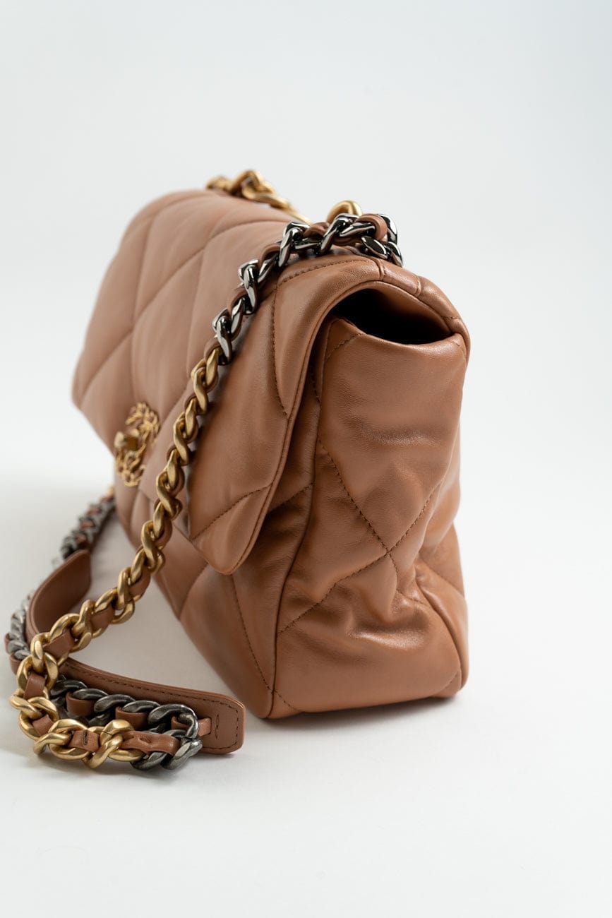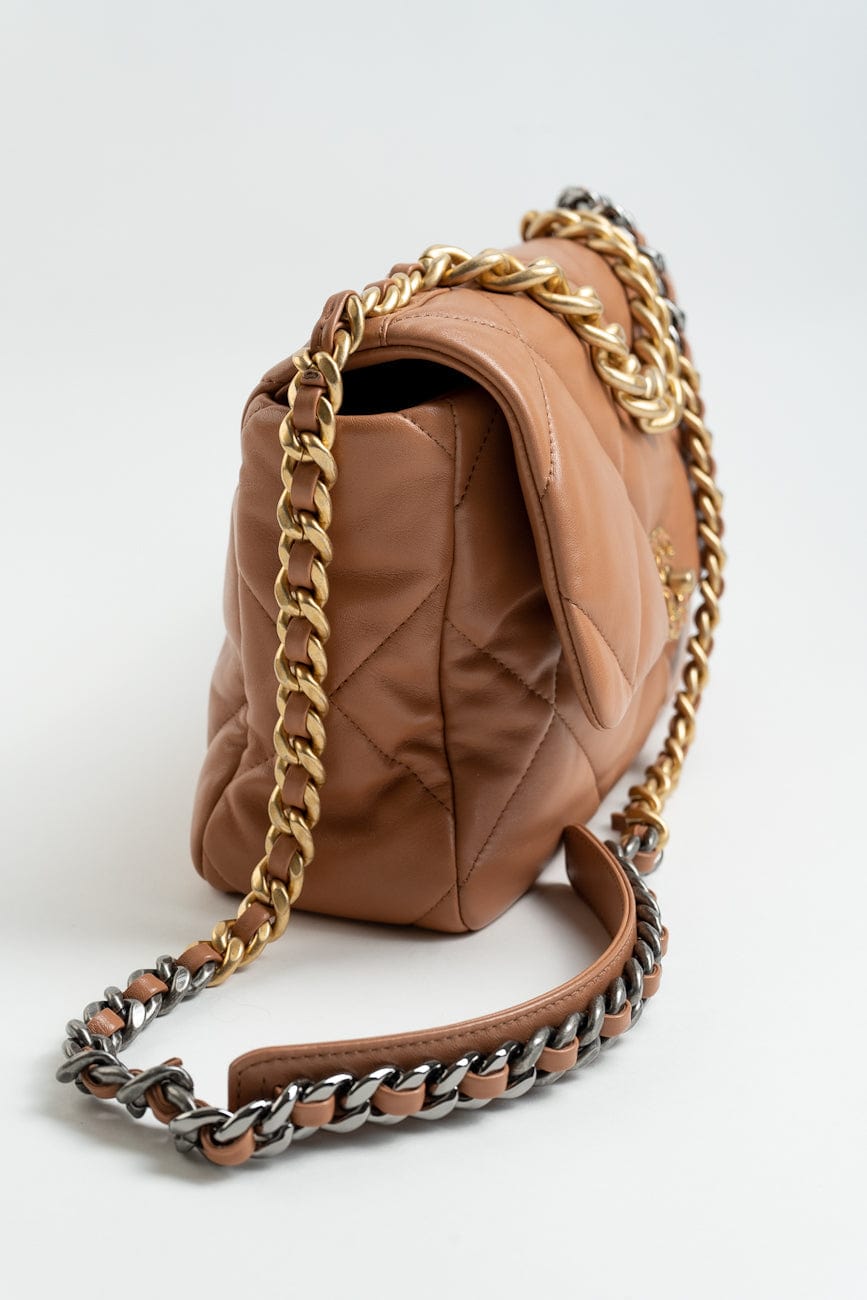 21P Caramel Lambskin Quilted 19 Flap Large Mixed Hardware