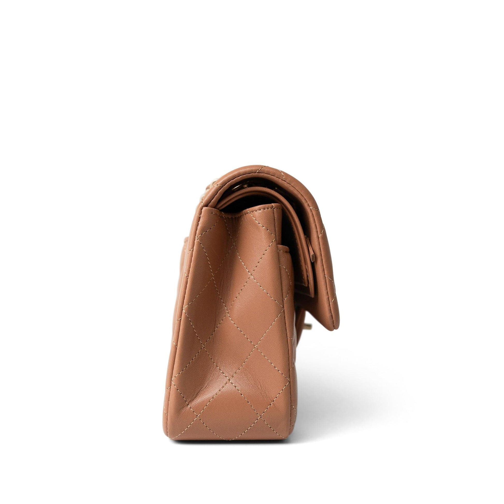 21P Caramel Lambskin Quilted Classic Flap Small Light Gold Hardware
