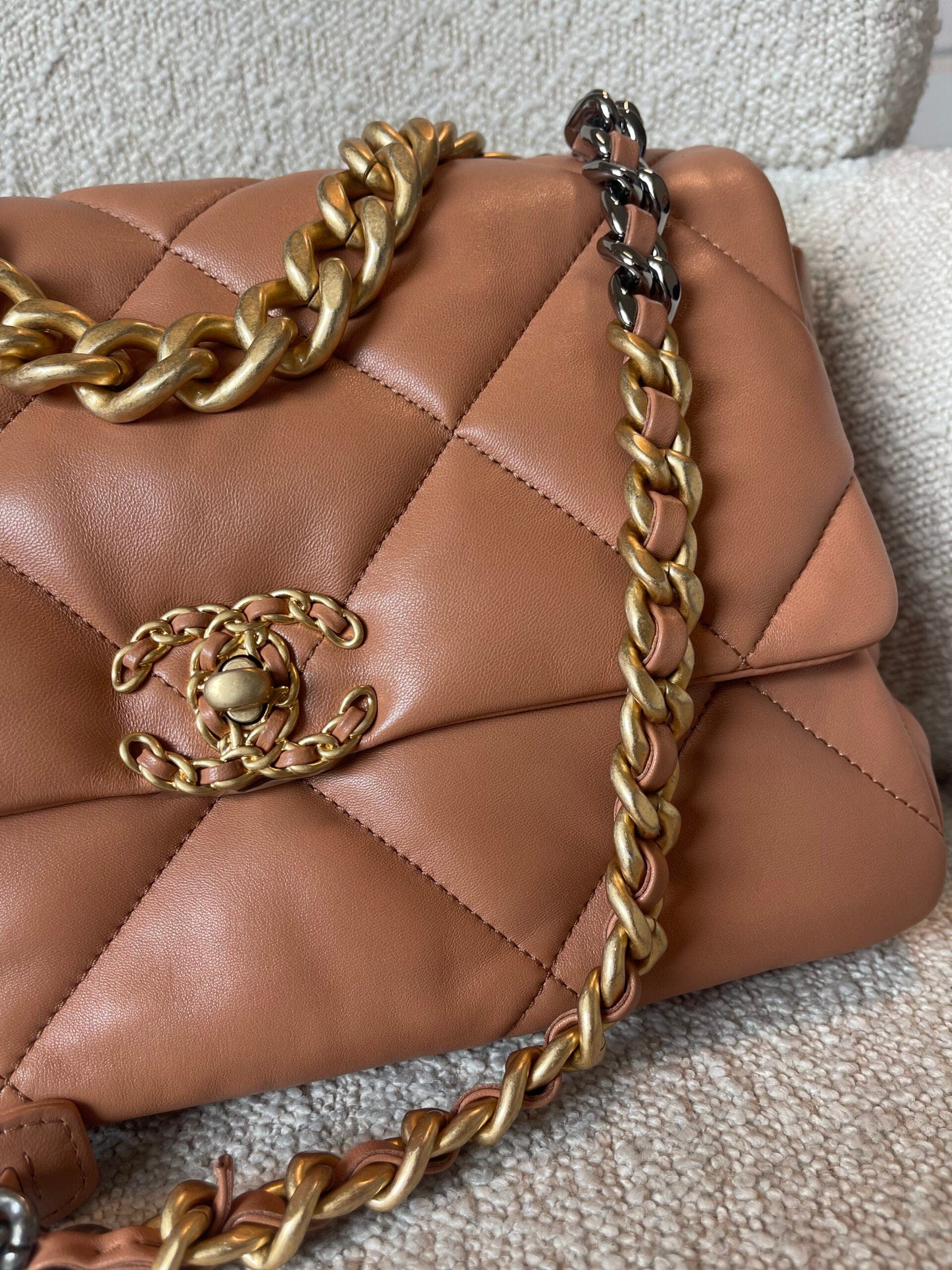21K Caramel Lambskin Quilted 19 Flap Large Mixed Hardware